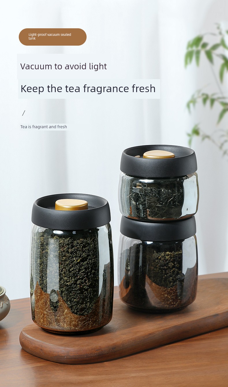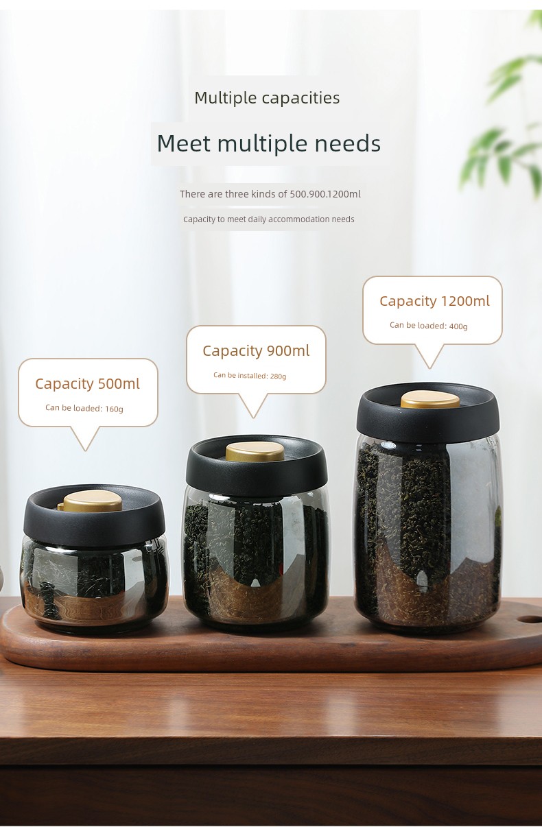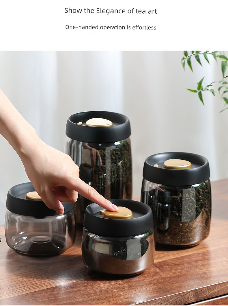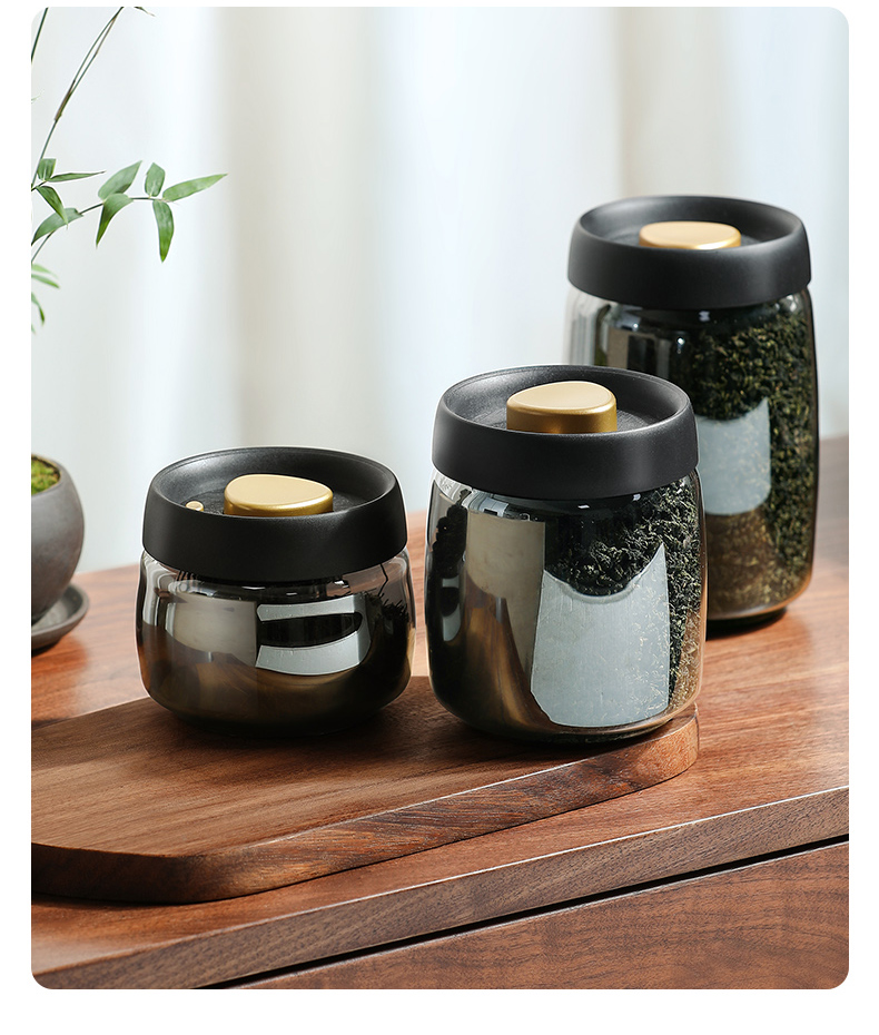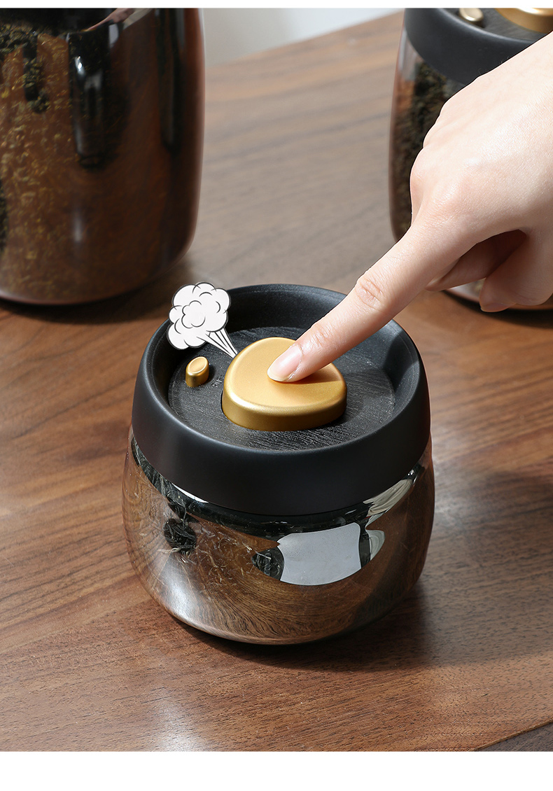 Lissa Coffee Beans Storage Jar Press Vacuum Sealed Jar Light-Proof Glass Coffee Tangerine Peel Storage Tank Tea