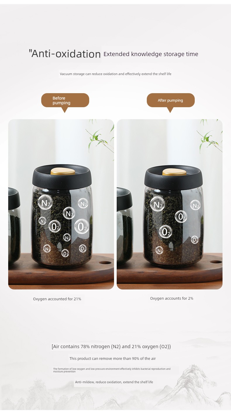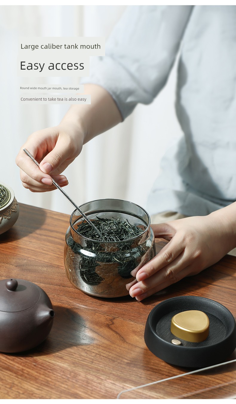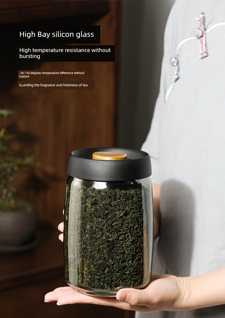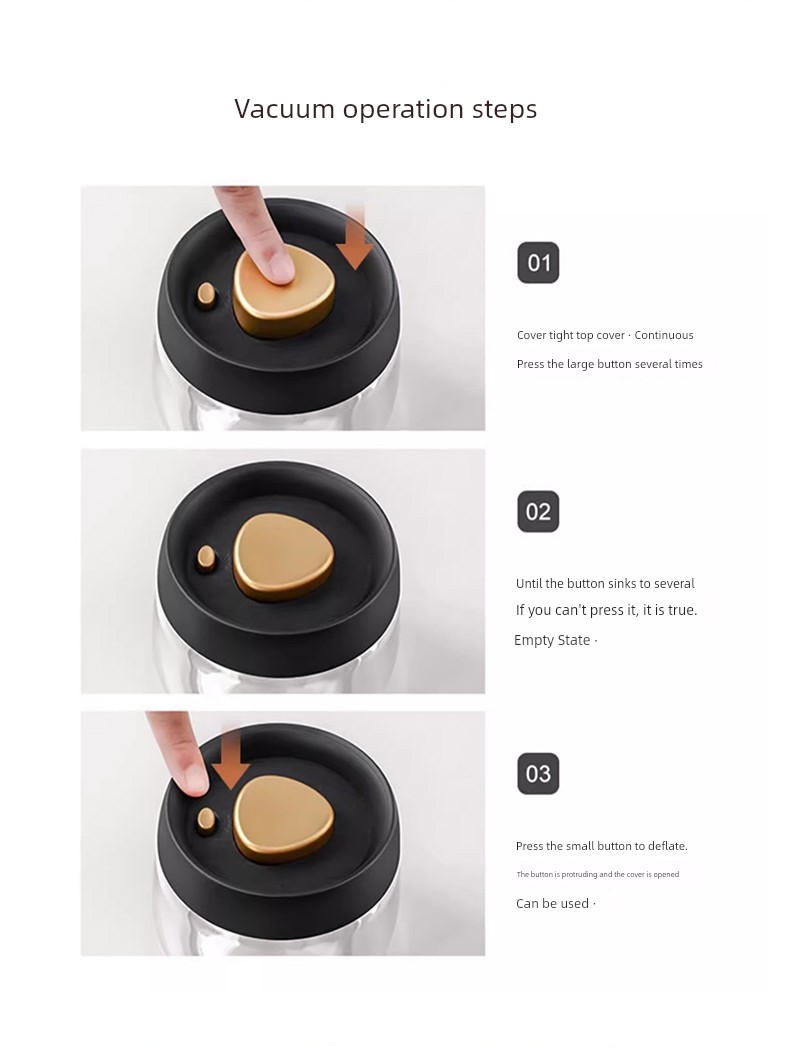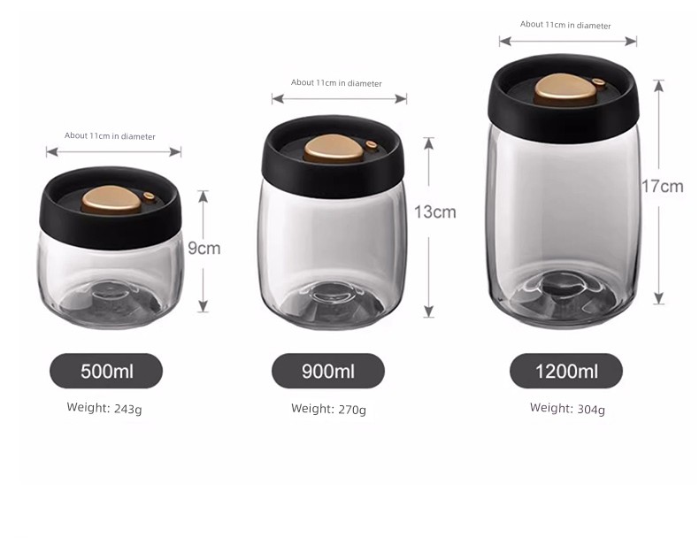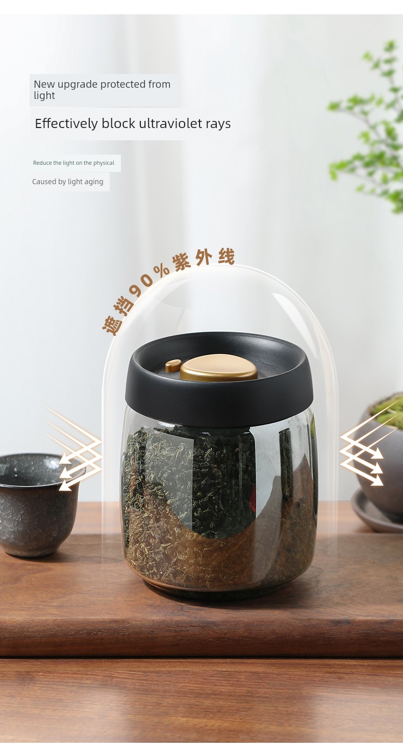 Lissa Coffee Beans Storage Jar Press Vacuum Sealed Jar Light-Proof Glass Coffee Tangerine Peel Storage Tank Tea
