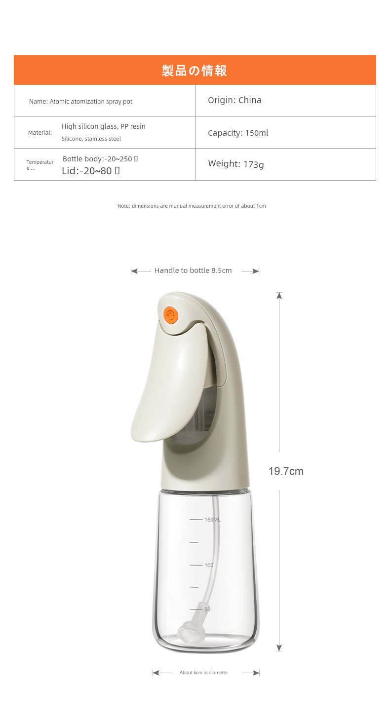 Lissa Glass Fuel Injector Atomization Kitchen For Home Food Grade Air Fryer Edible Oil Spray Oil Spray Bottle
