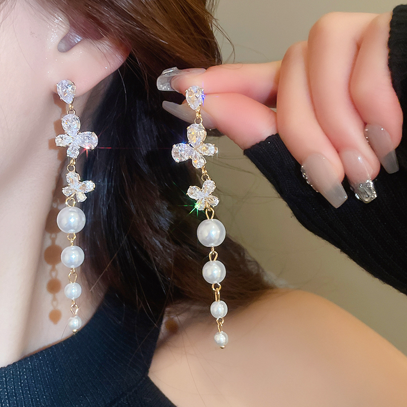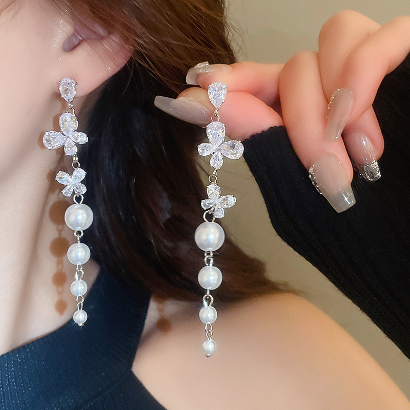 Long Pearl Tassel Earrings Square and round Face Slimming Accessible Luxury Fancy Ear Studs Elegant Unique Earrings for Women New Arrival