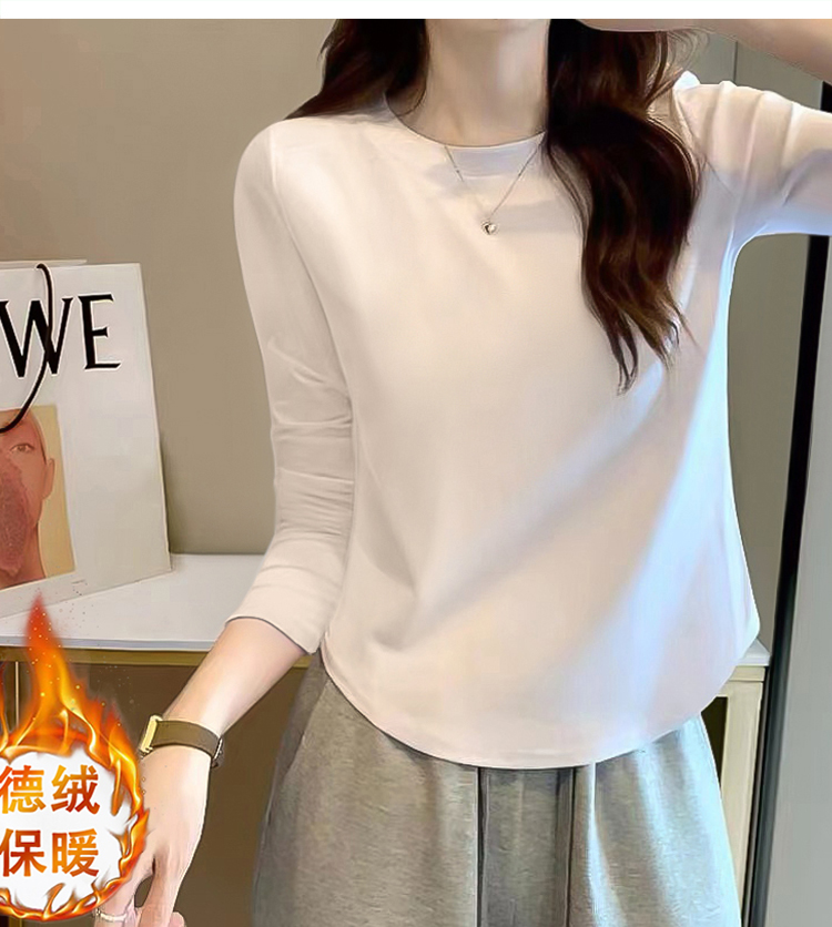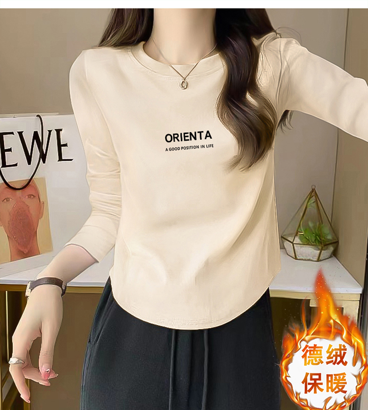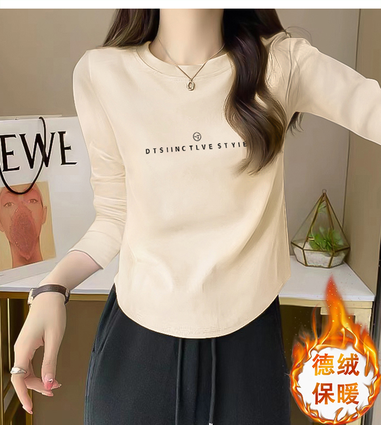 Long Sleeves Bottoming Shirt Women's Fall and Winter Cream Color Short Inner Wear Slim Looking Tops Irregular Slim-Fit plus Houde Velvet T-shirt