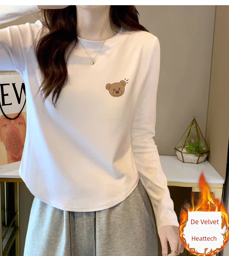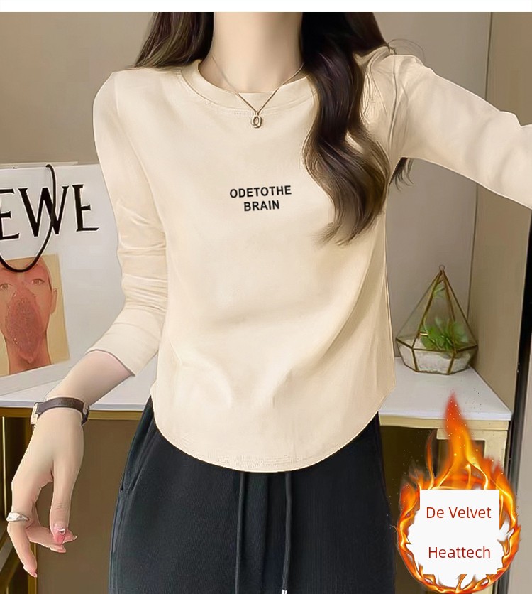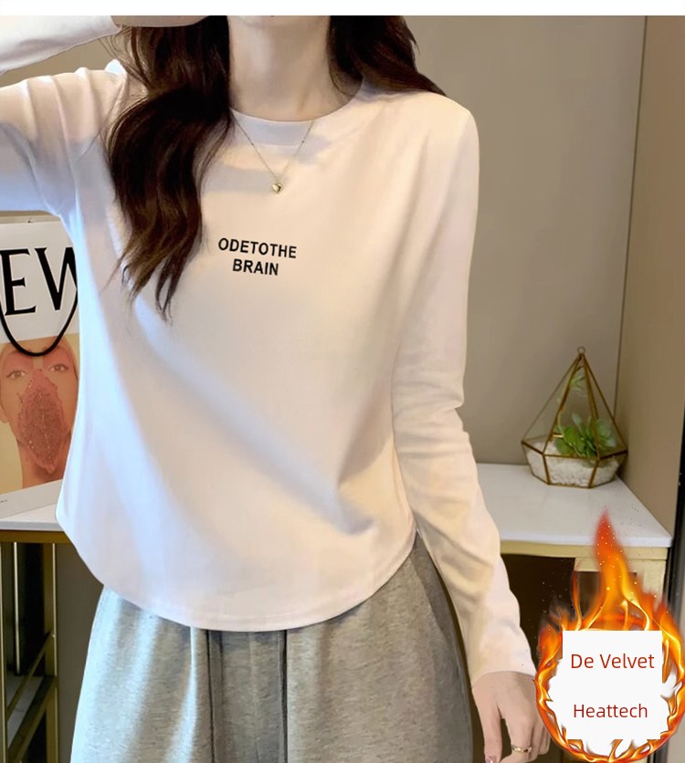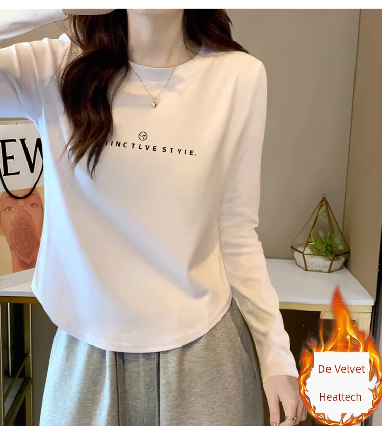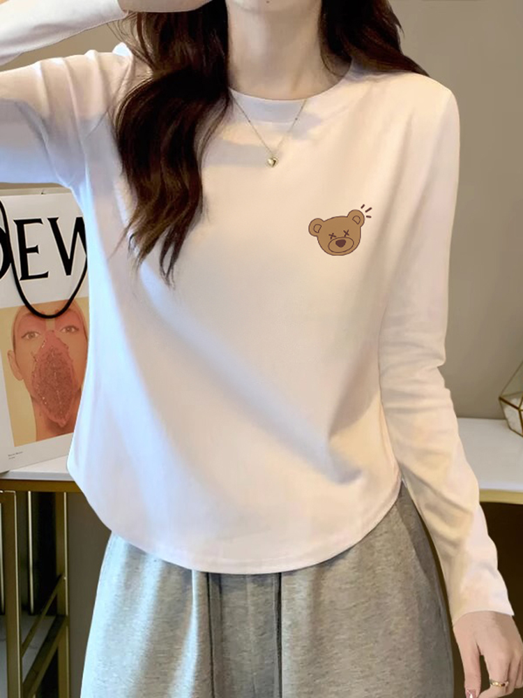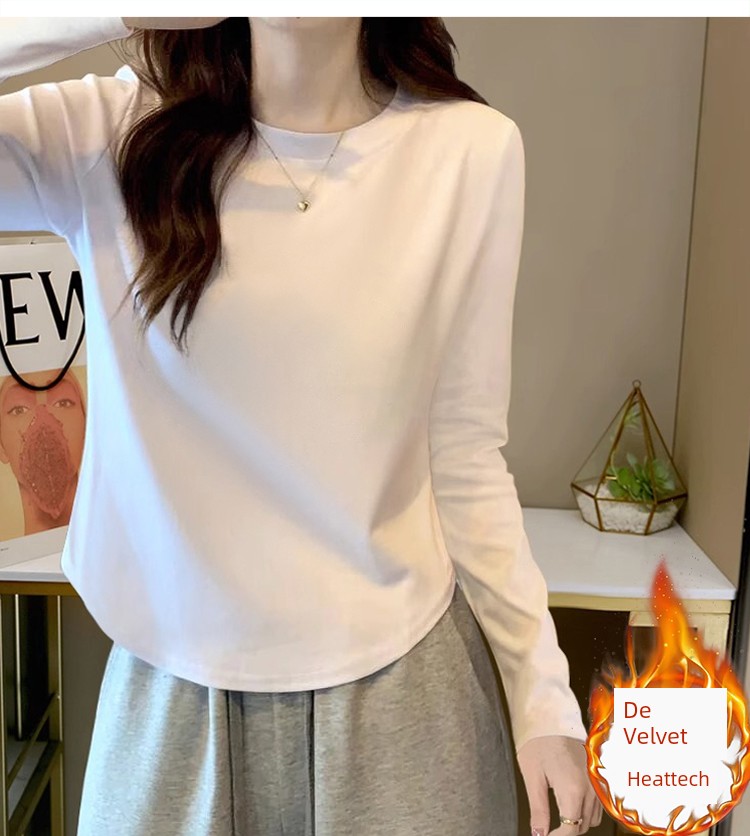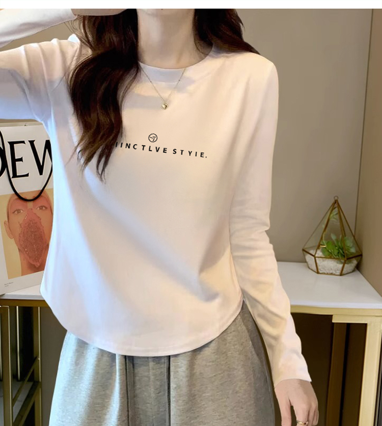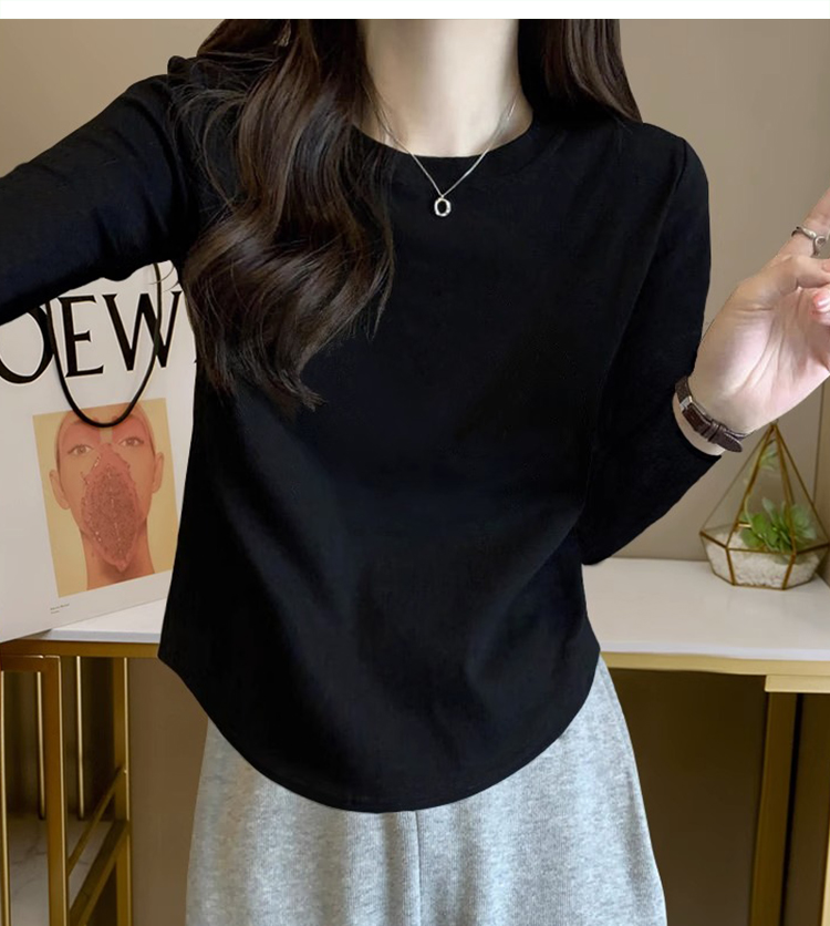 Long Sleeves T-shirt Female Autumn Cotton Slim Looking Irregular Design Short Pure White Small Bottoming Shirt Tops