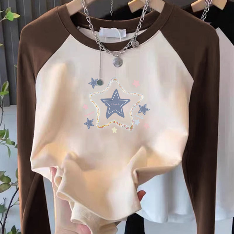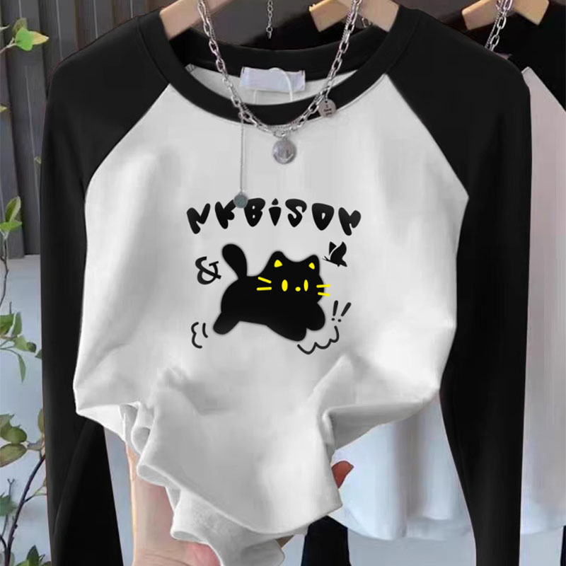 Long Sleeves T-Shirt Women Raglan Sleeves Contrast Color Inner Wear Spring and Autumn Bottoming Shirt Pure Cotton Silm Fashion Slimming Short Top