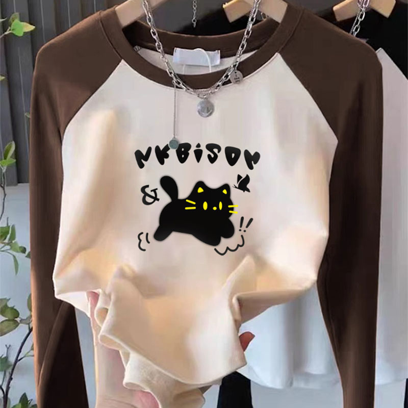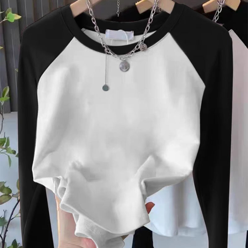 Long Sleeves T-Shirt Women's Raglan Sleeve Inner Wear Spring and Autumn Bottoming Shirt 2025 Pure Cotton Silm Fashion Slimming Short Top