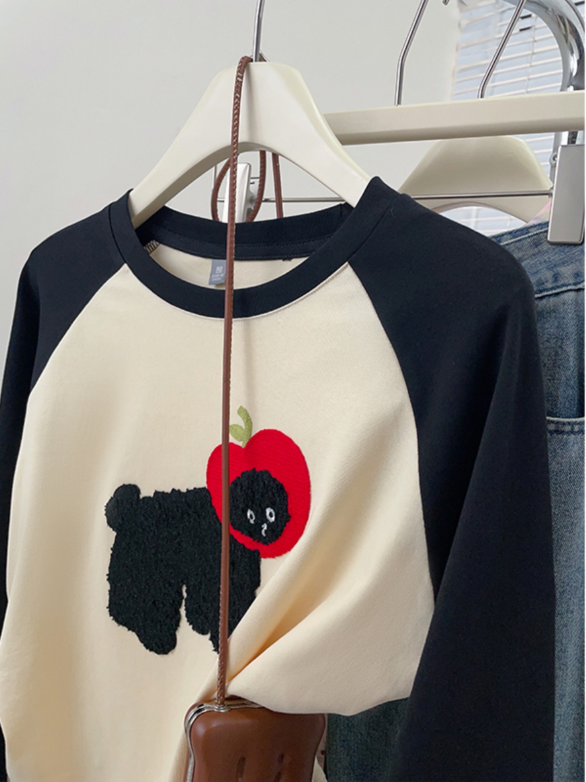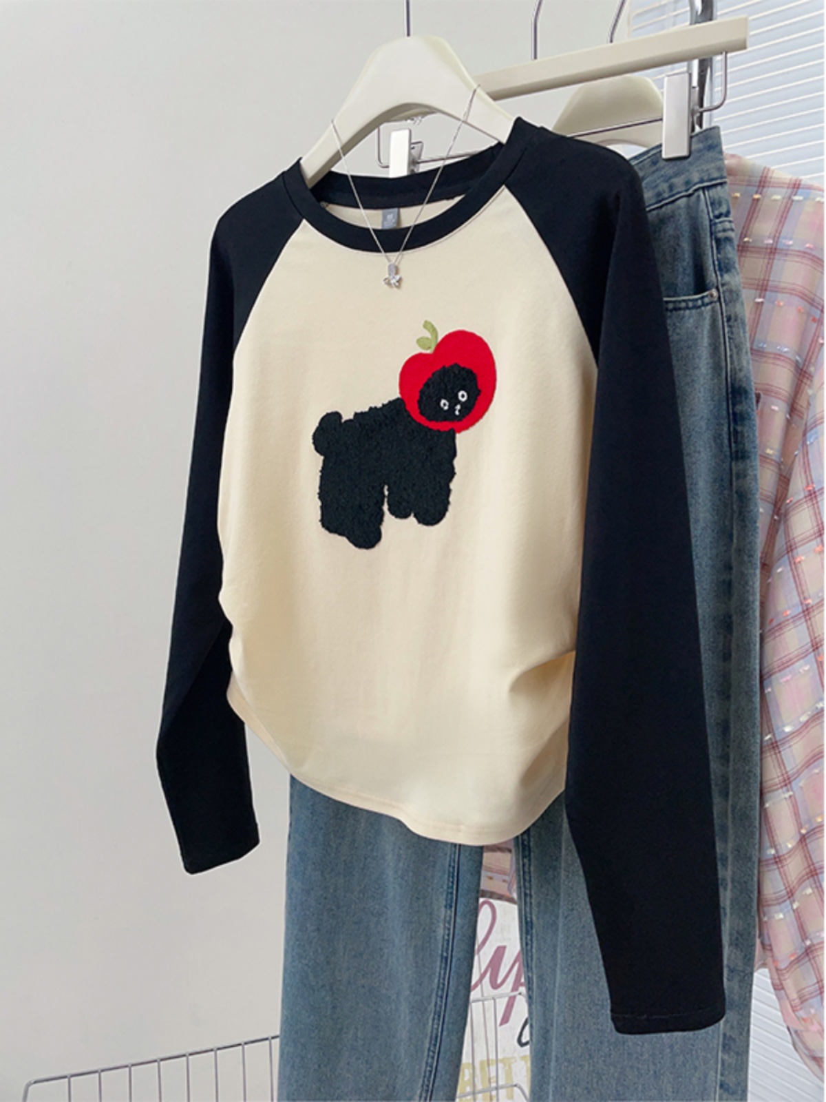Long Sleeves Tops 2025 Spring & Fall New Arrival Plus Size Plus Size Ladies Stylish Niche Style Embroider Short Raglan Sleeve T-shirt Female Fashion