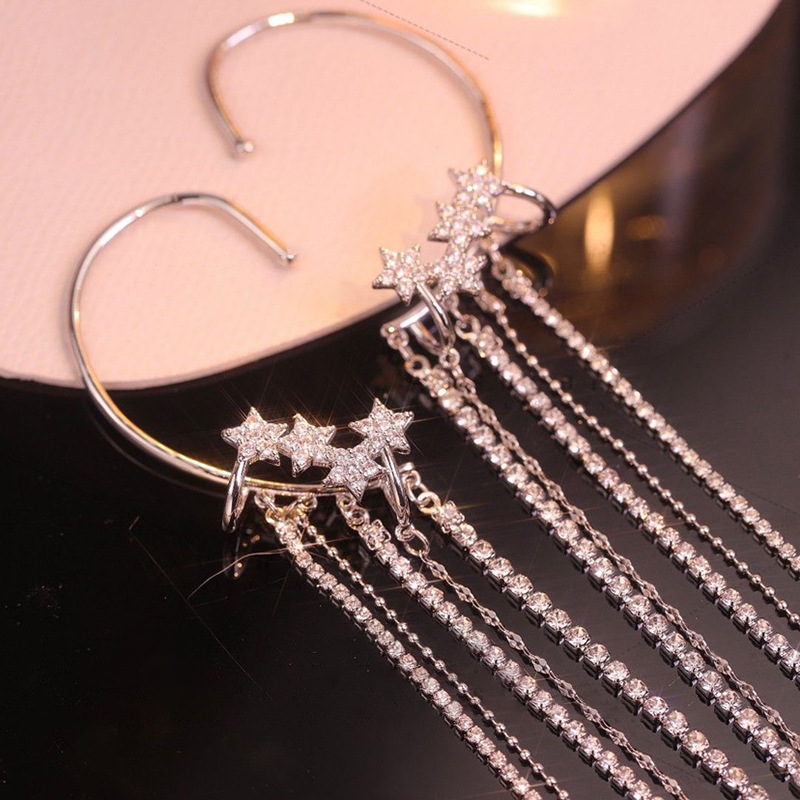 Long Tassel Ear Hanging Niche Design Ear Clip Female without Pierced Ears Classy Eardrops Earrings 2025 New Arrival Tide