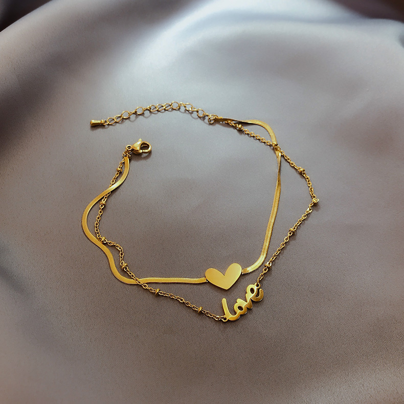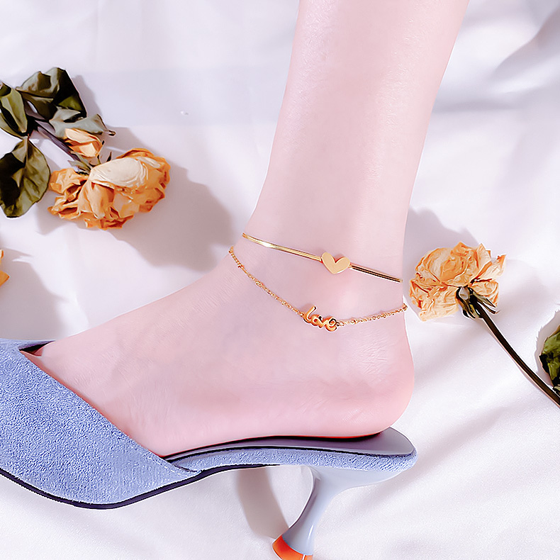 Love Korean Simple Cute Girls Double-Circle Anklet