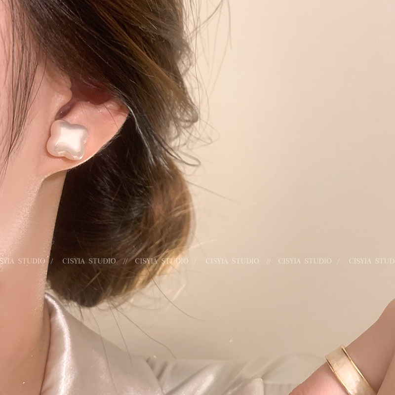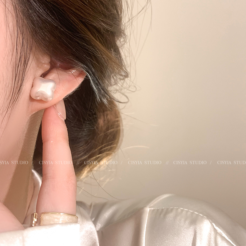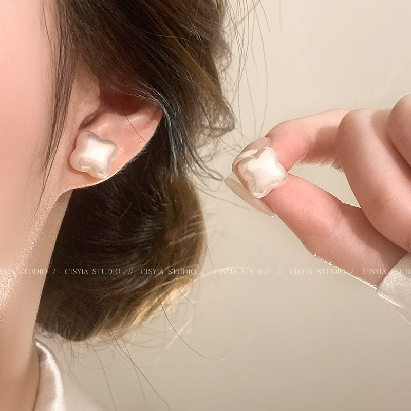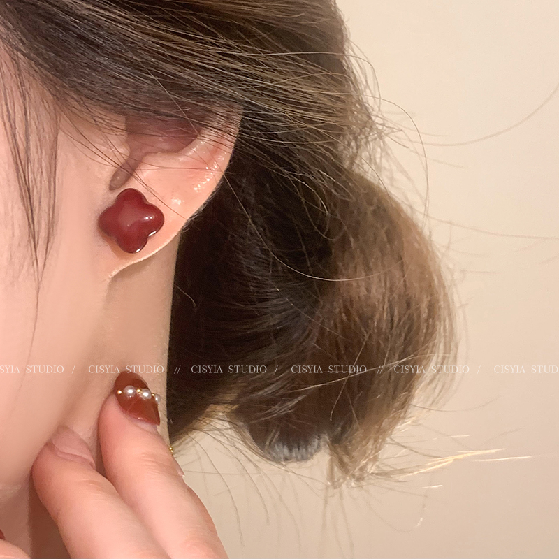 Lucky Four-Leaf Clover Red Pearl Stud Earrings for Women Spring Accessible Luxury Fancy Elegant 2025 New Arrival Eardrops Earrings