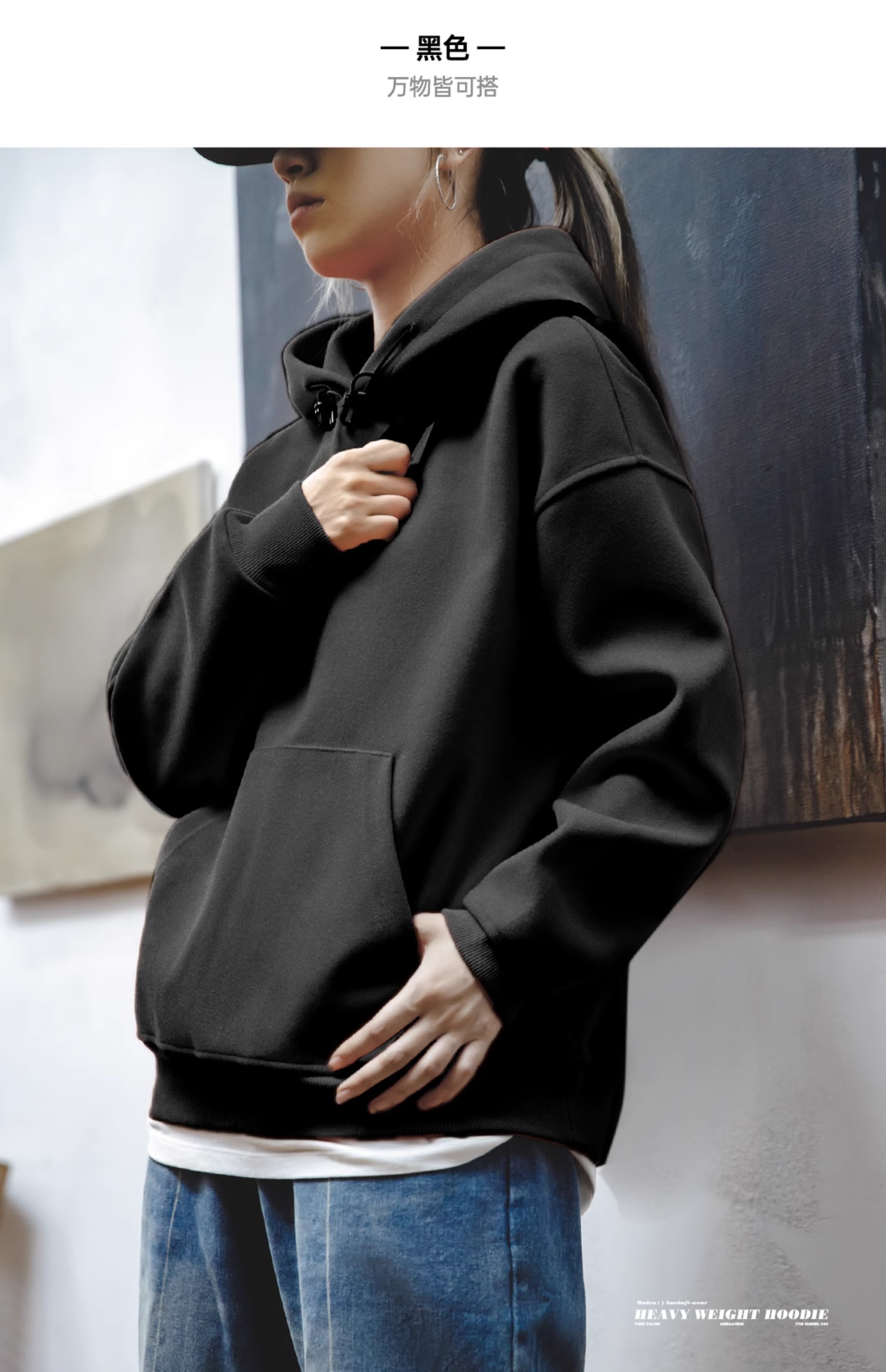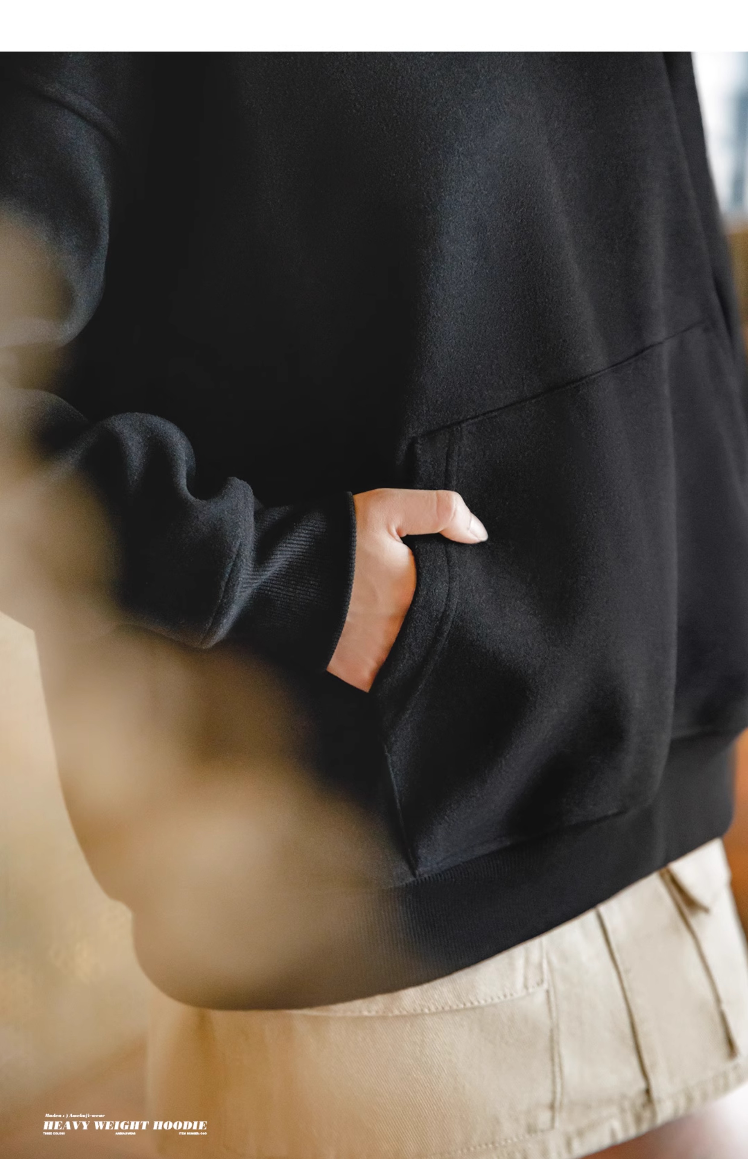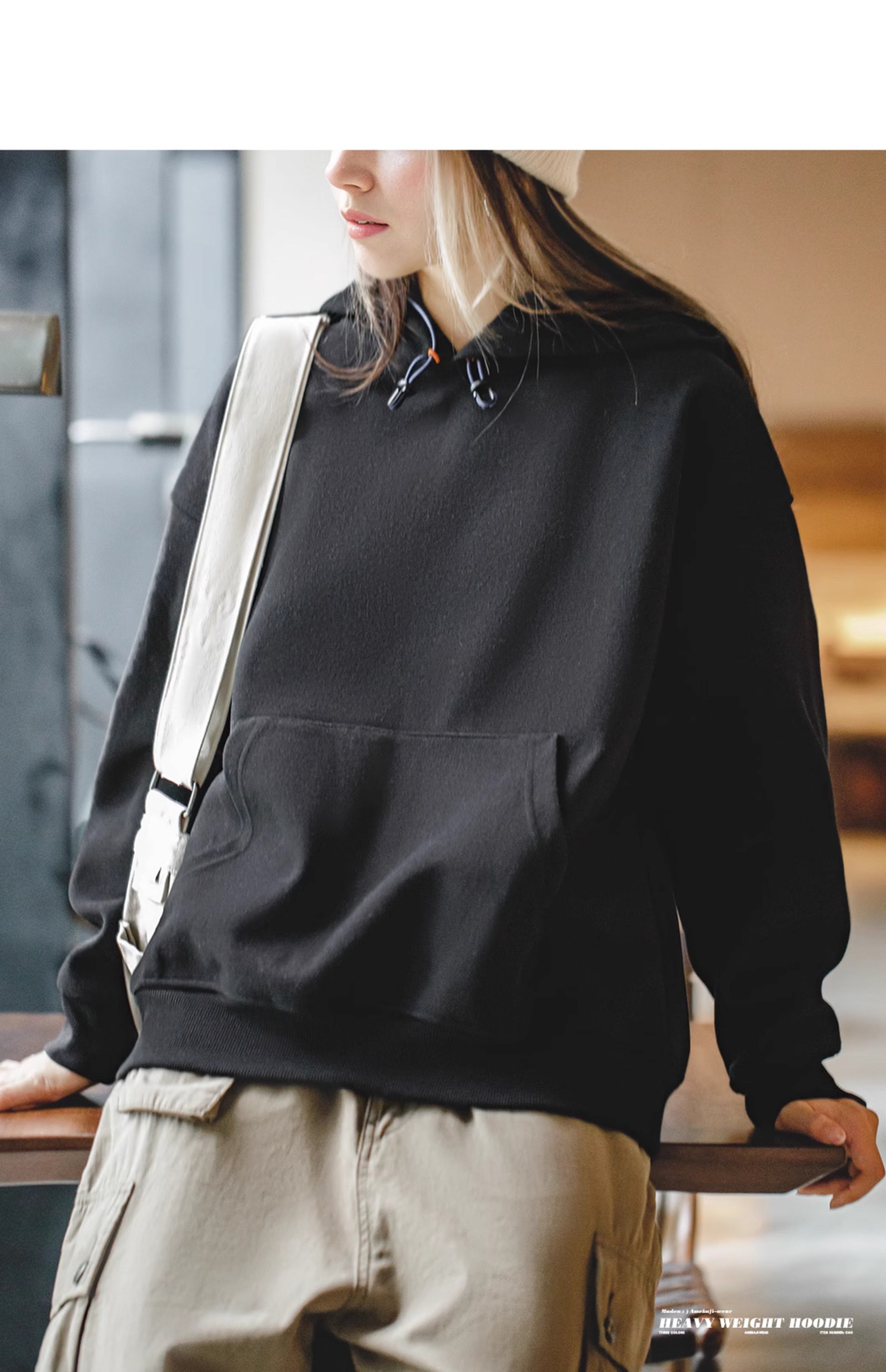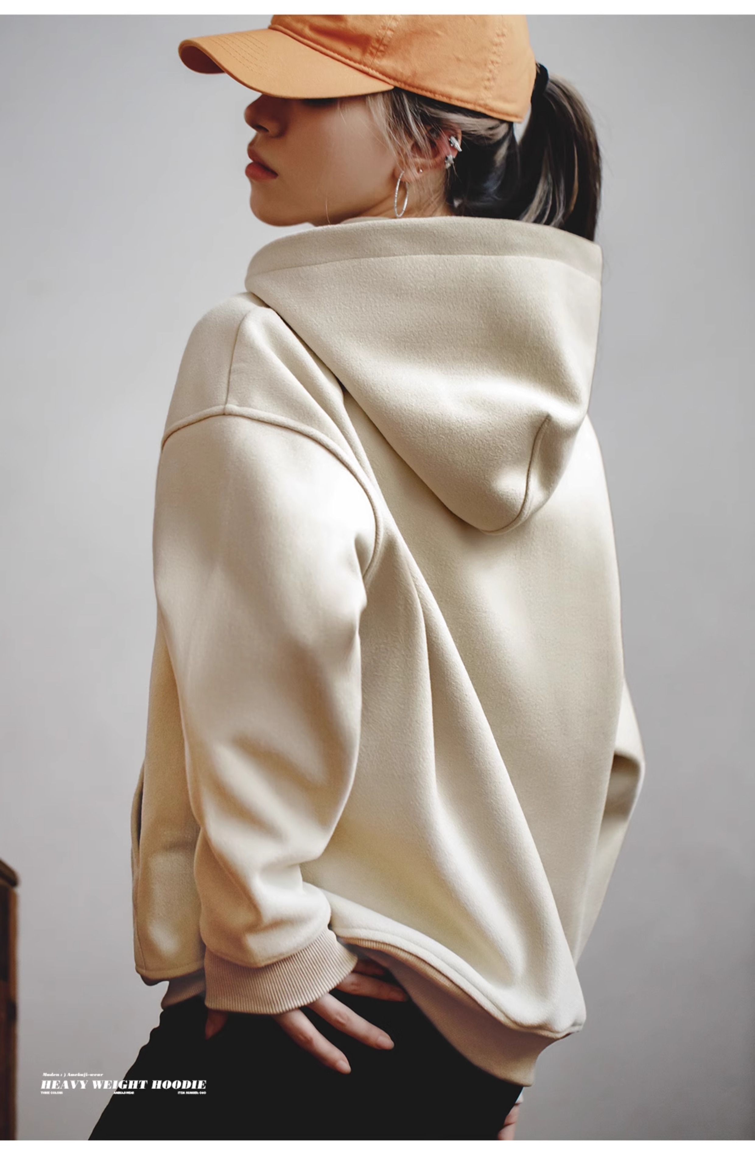Madden Heavy Weight Woolen Fleece-lined Thickened Hooded Sweatshirt American Style Loose Pullover Long Sleeves Tops Fall and Winter Women