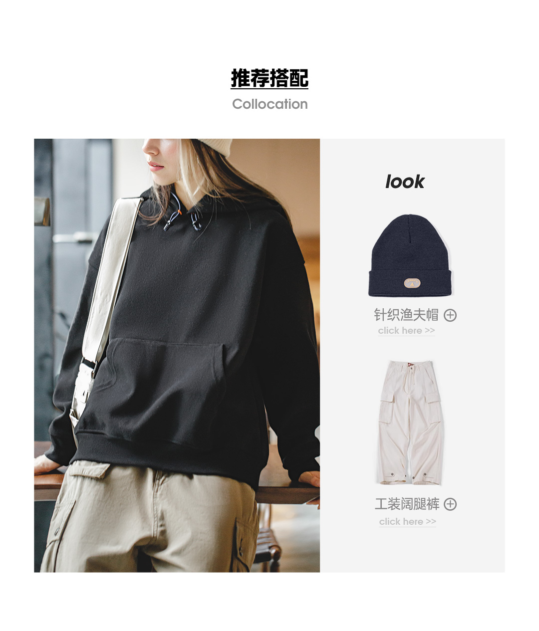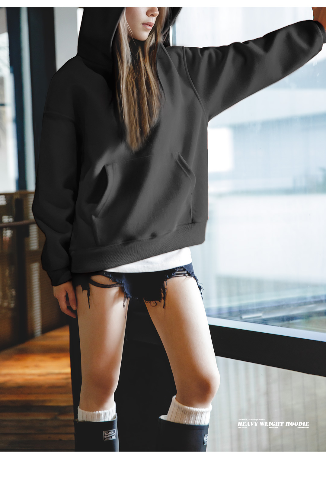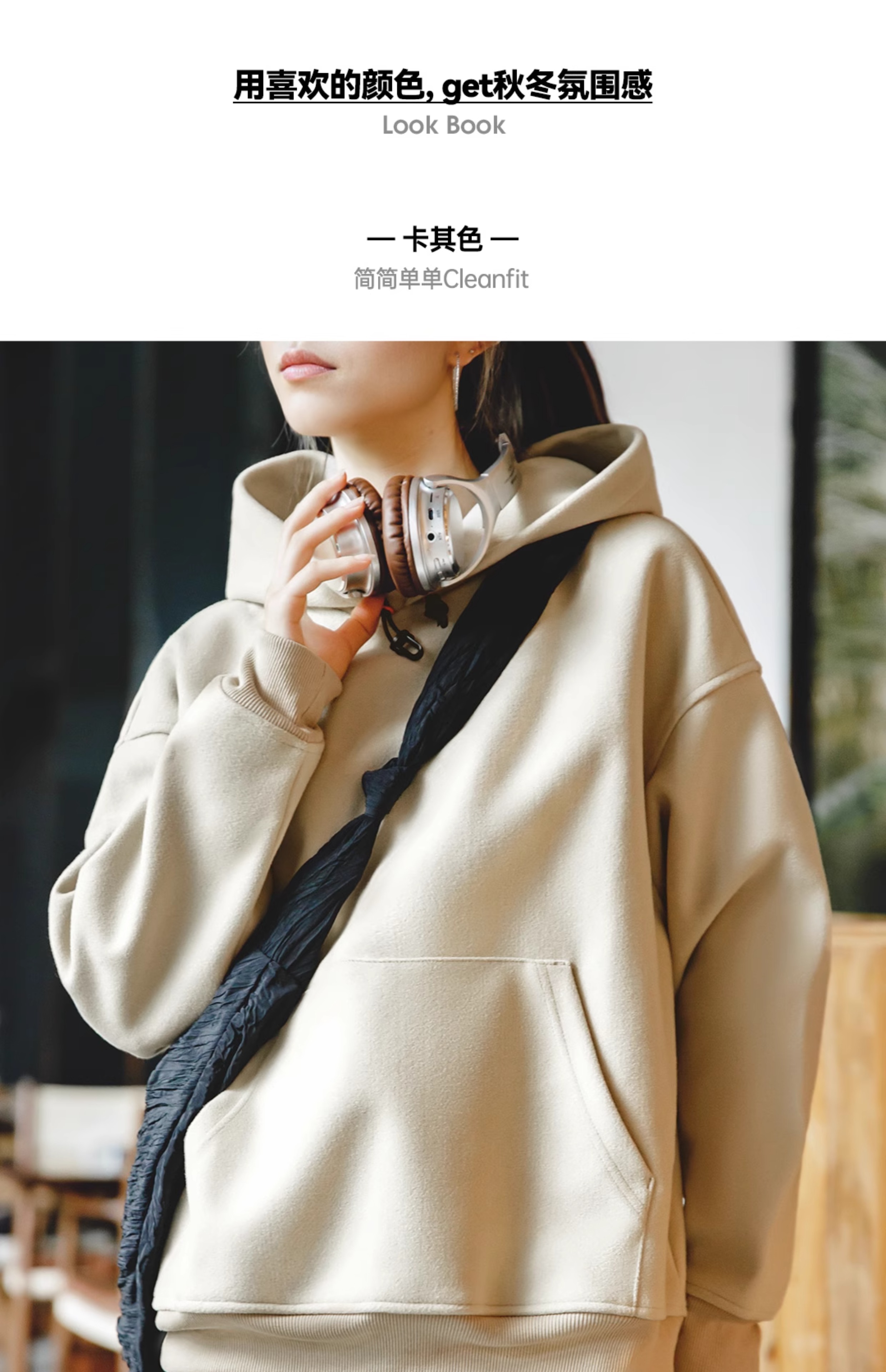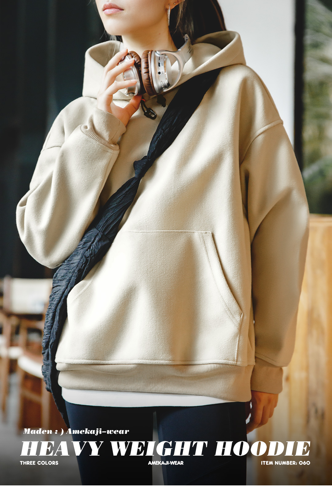 Madden Heavy Weight Woolen Fleece-lined Thickened Hooded Sweatshirt American Style Loose Pullover Long Sleeves Tops Fall and Winter Women