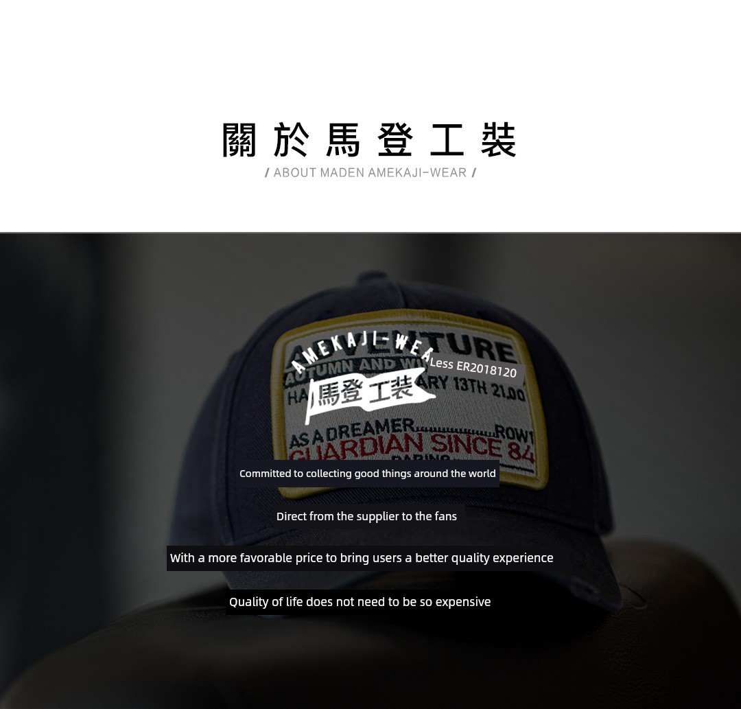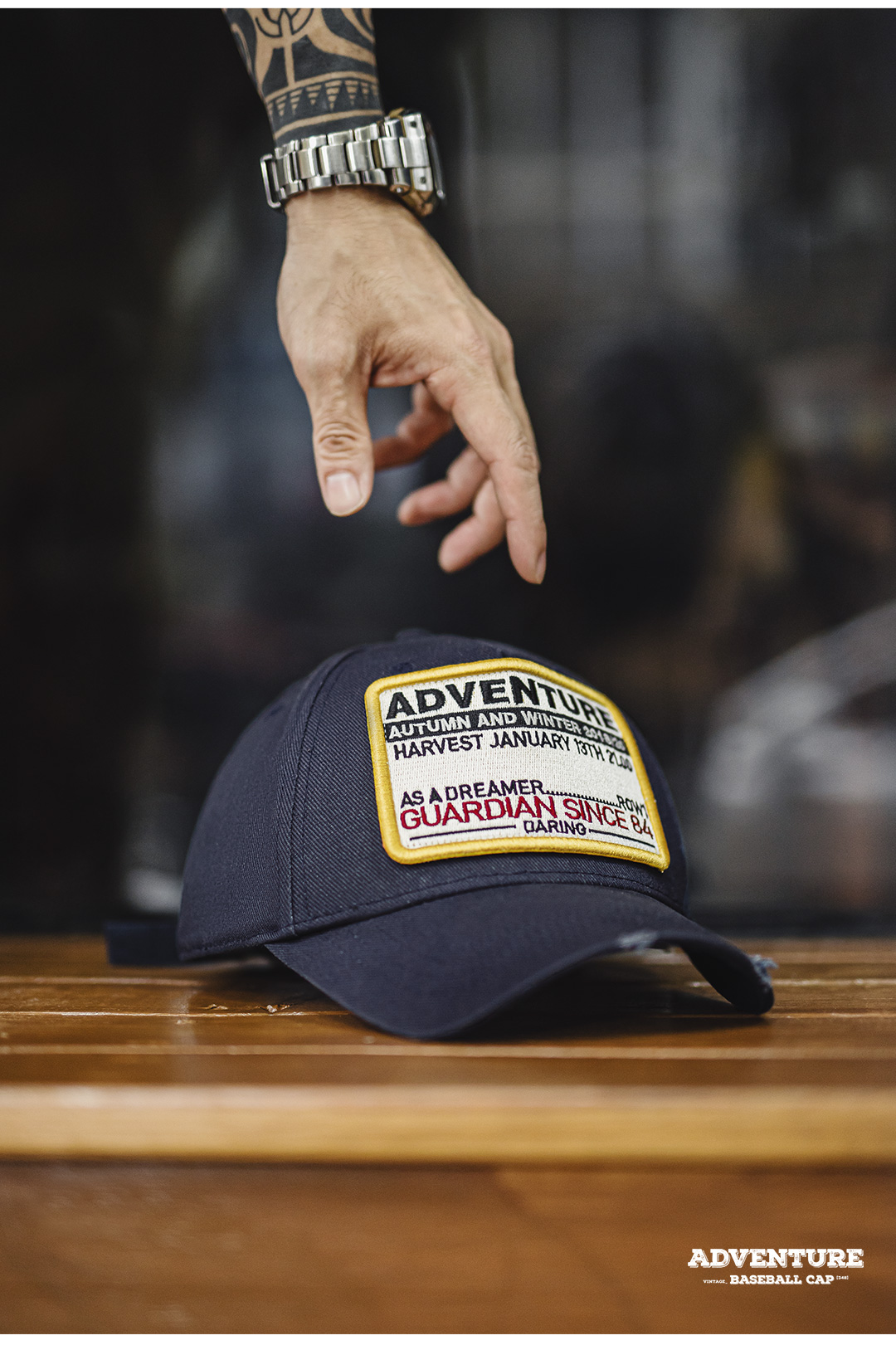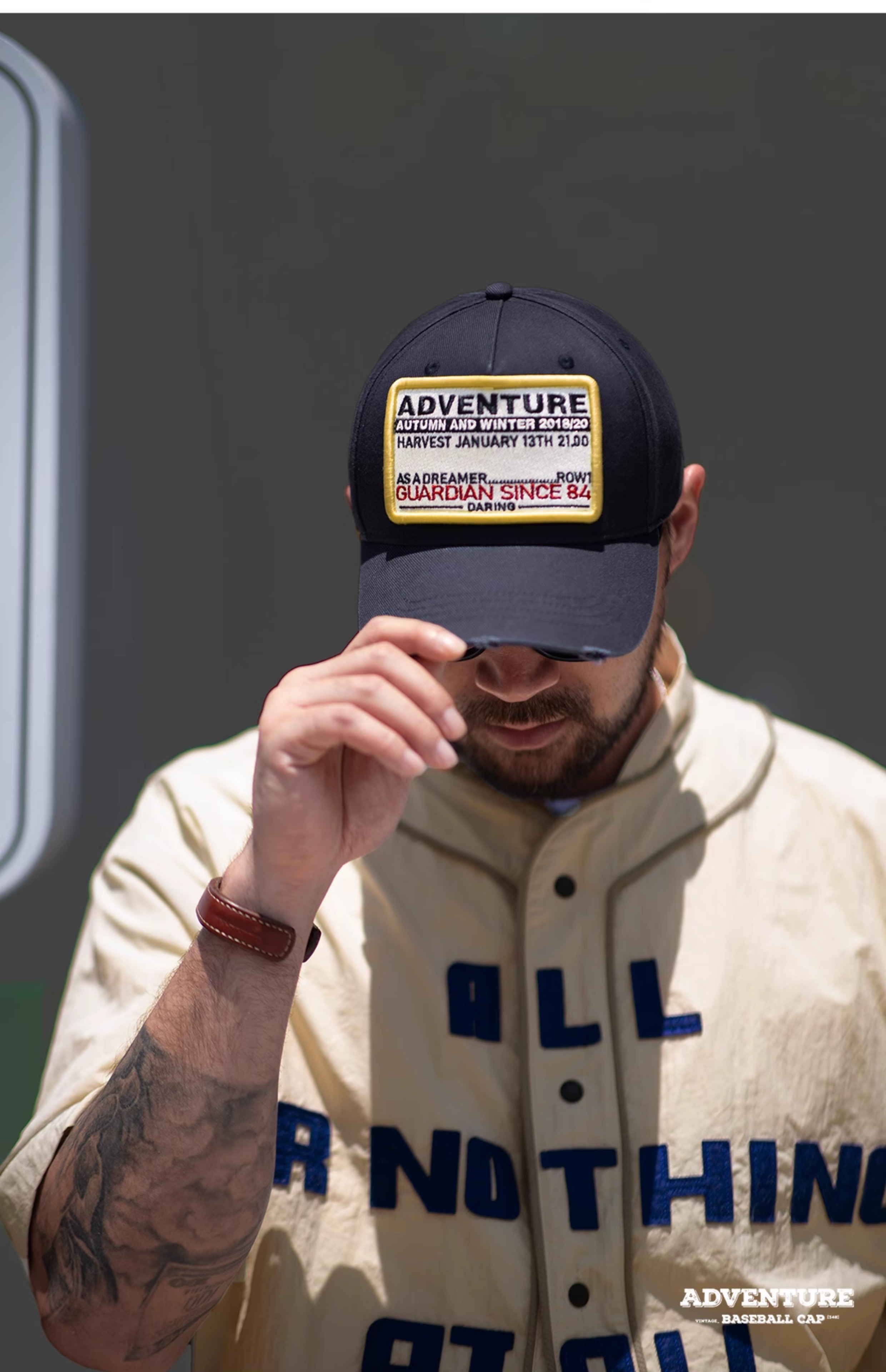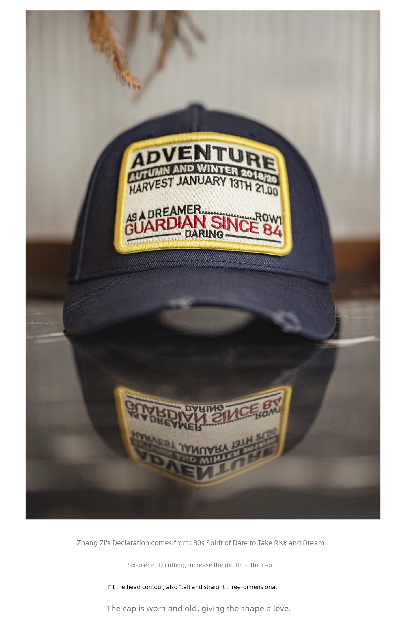 Madden Parka American Retro Letter Zhang Zi Baseball Cap New Arrival Distressed Curved Brim Peaked Cap Wide Brim Hat for Men and Women