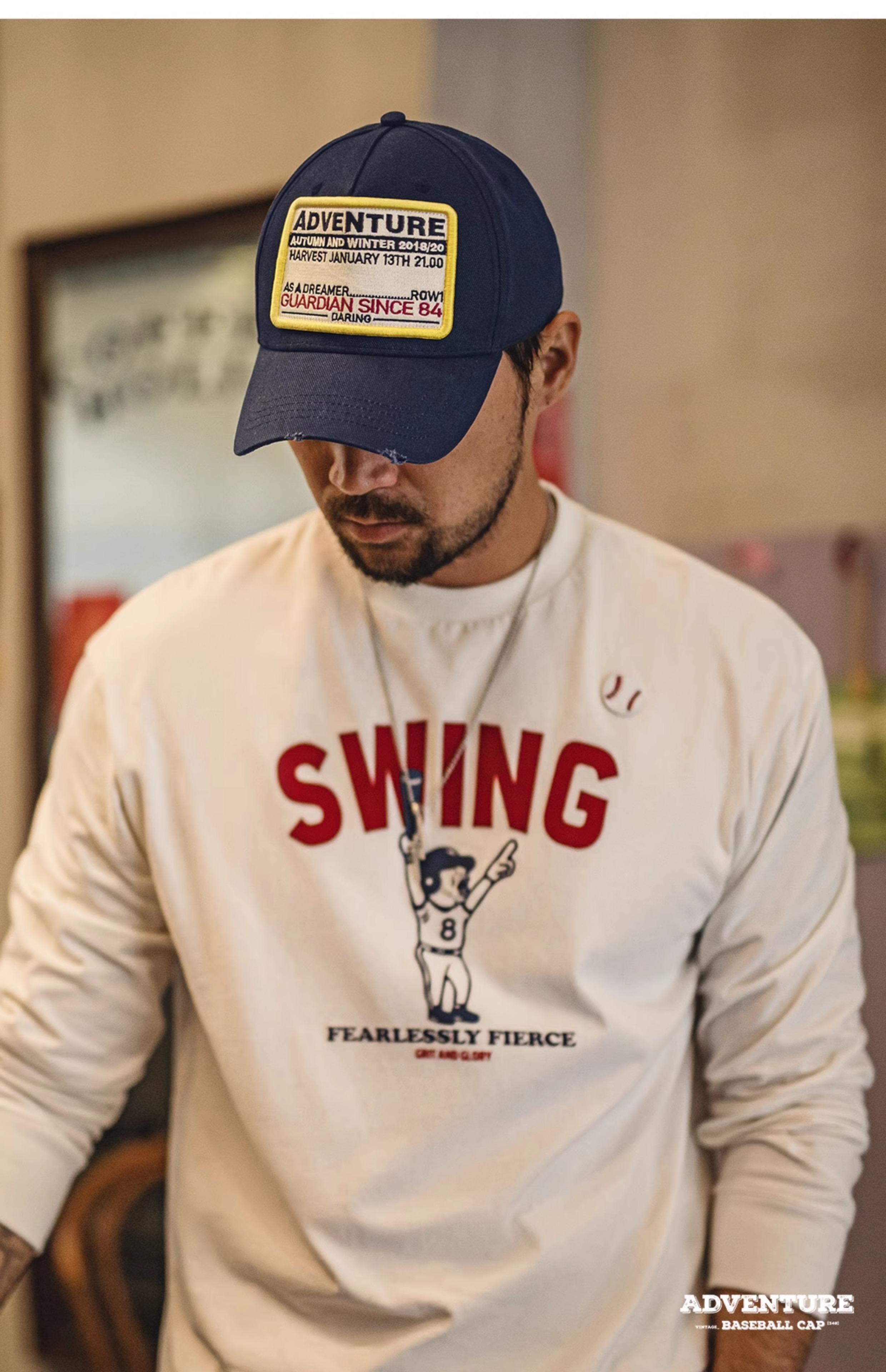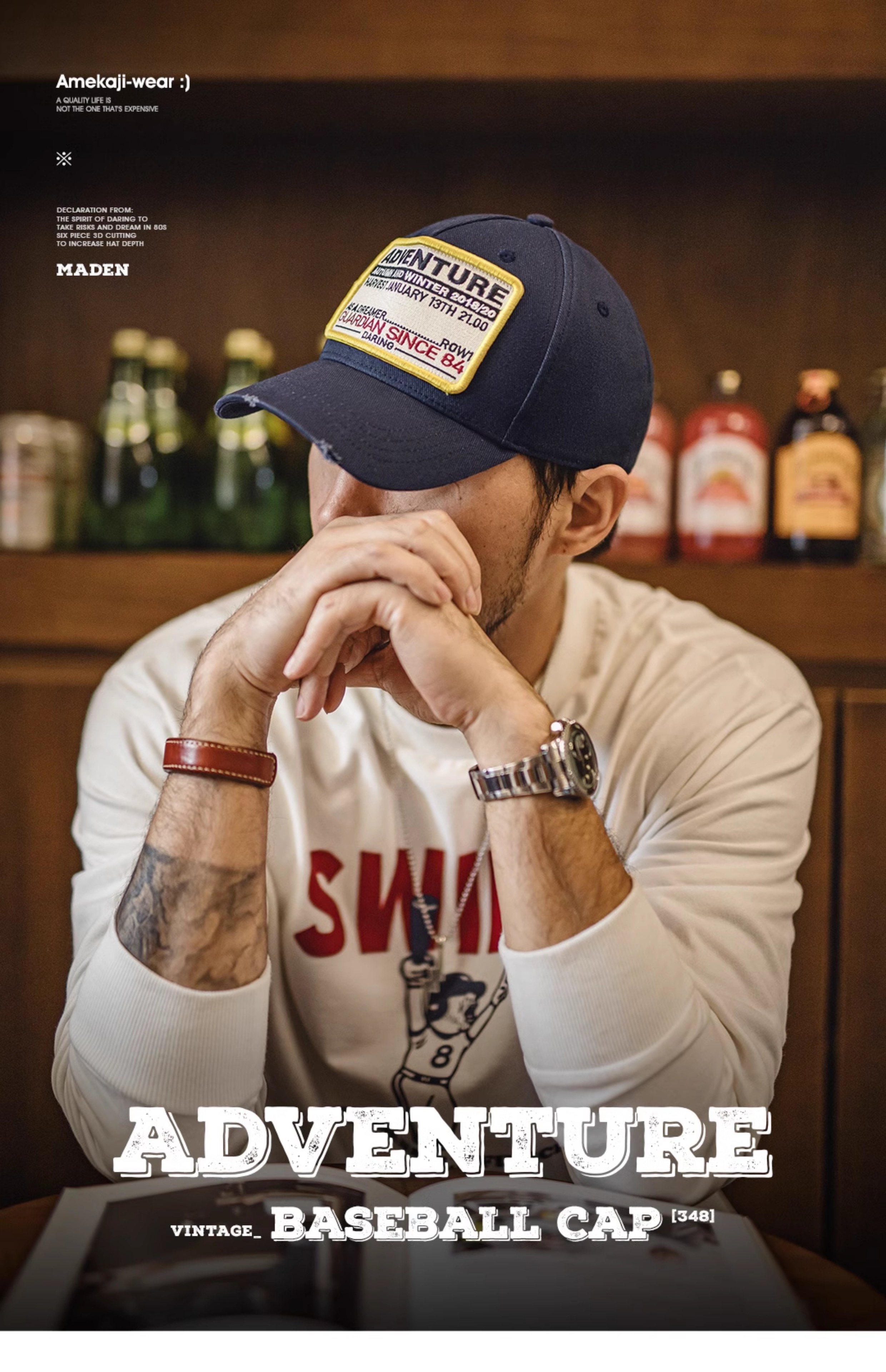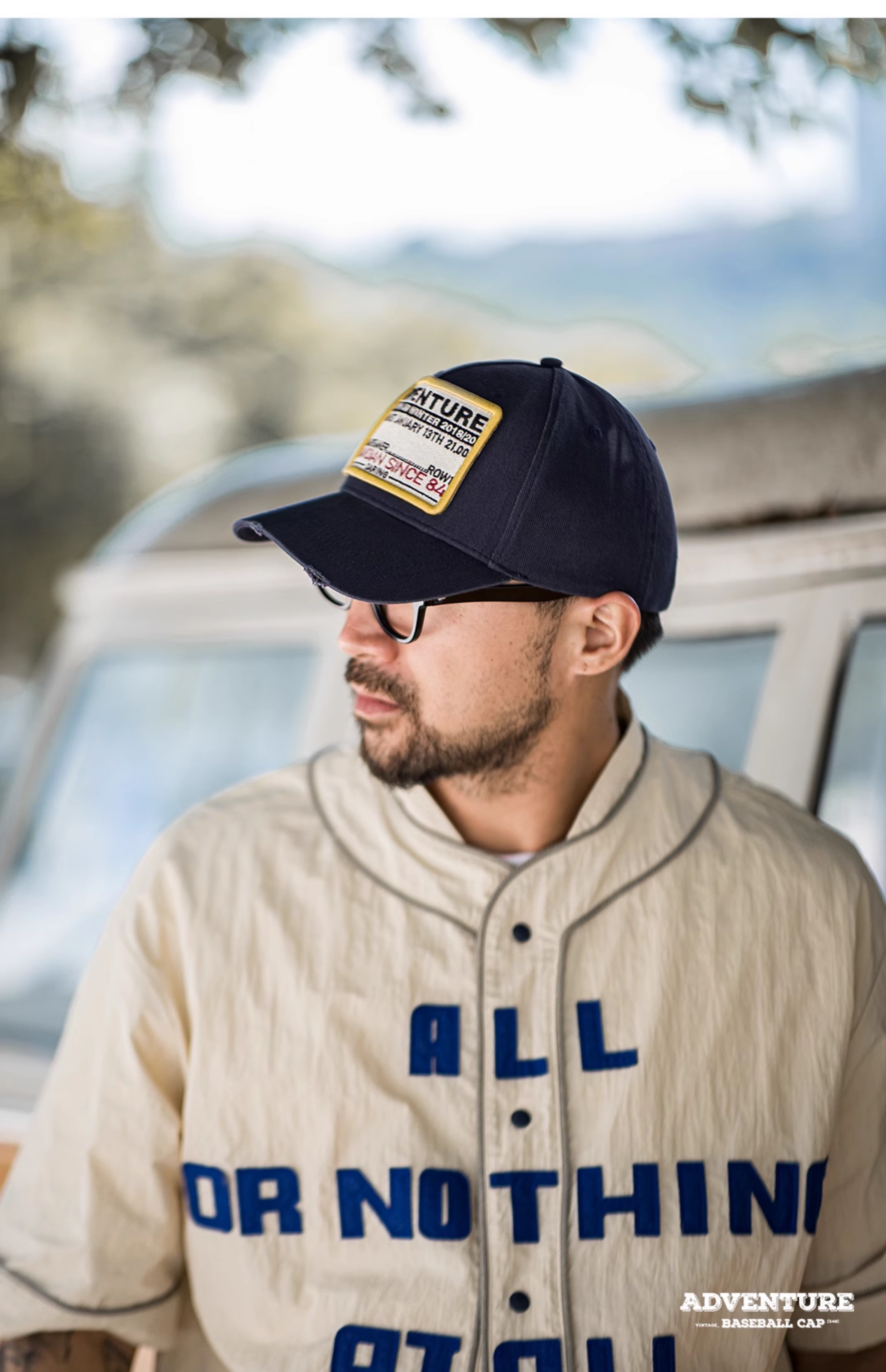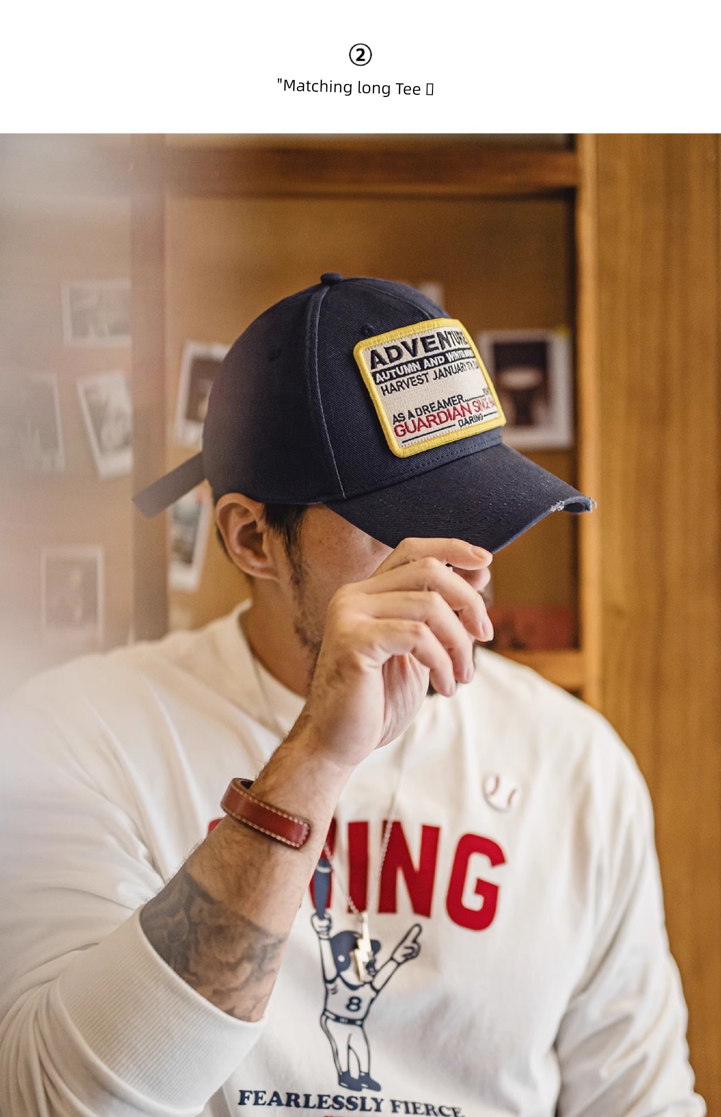 Madden Parka American Retro Letter Zhang Zi Baseball Cap New Arrival Distressed Curved Brim Peaked Cap Wide Brim Hat for Men and Women
