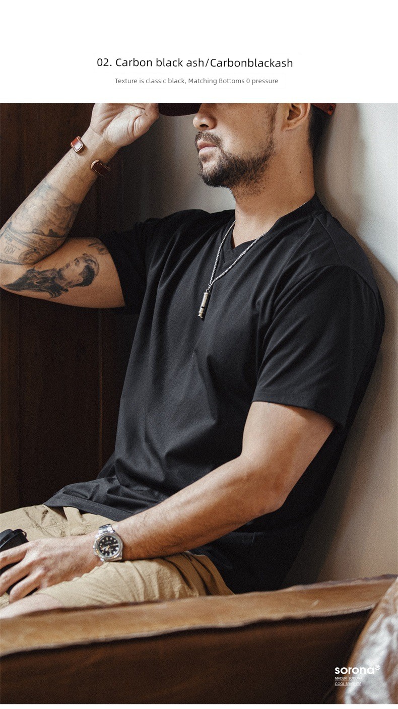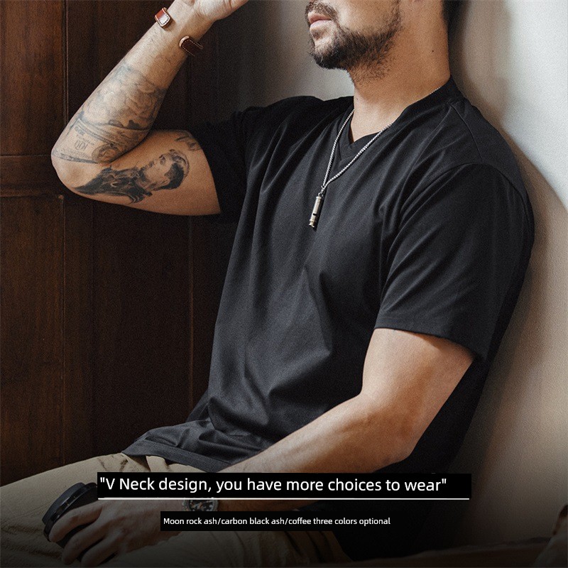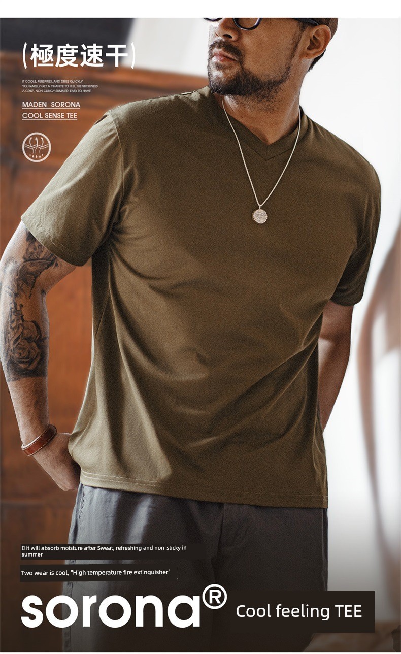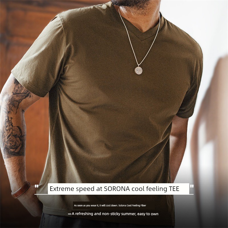 Madden Parka American Sorona Quick-Drying Cool Short-Sleeved T-shirt Black Technology Sorona V-neck Pure Color Tops Men's Summer