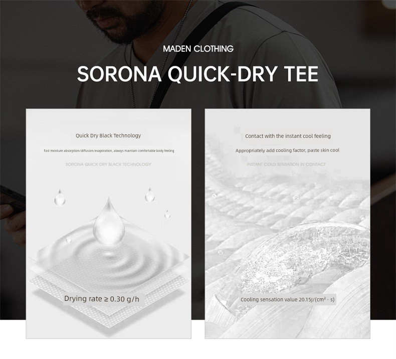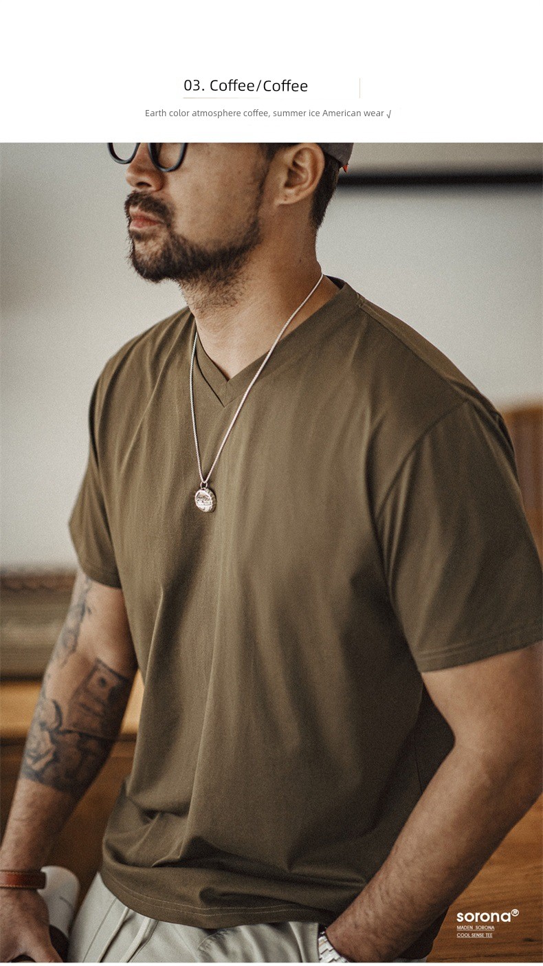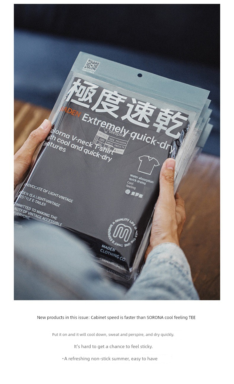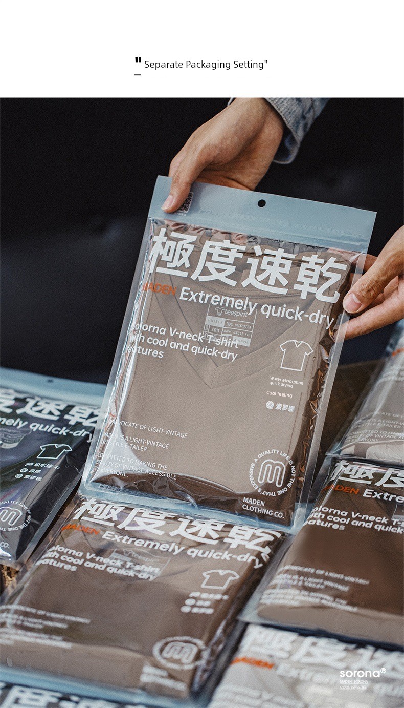 Madden Parka American Sorona Quick-Drying Cool Short-Sleeved T-shirt Black Technology Sorona V-neck Pure Color Tops Men's Summer
