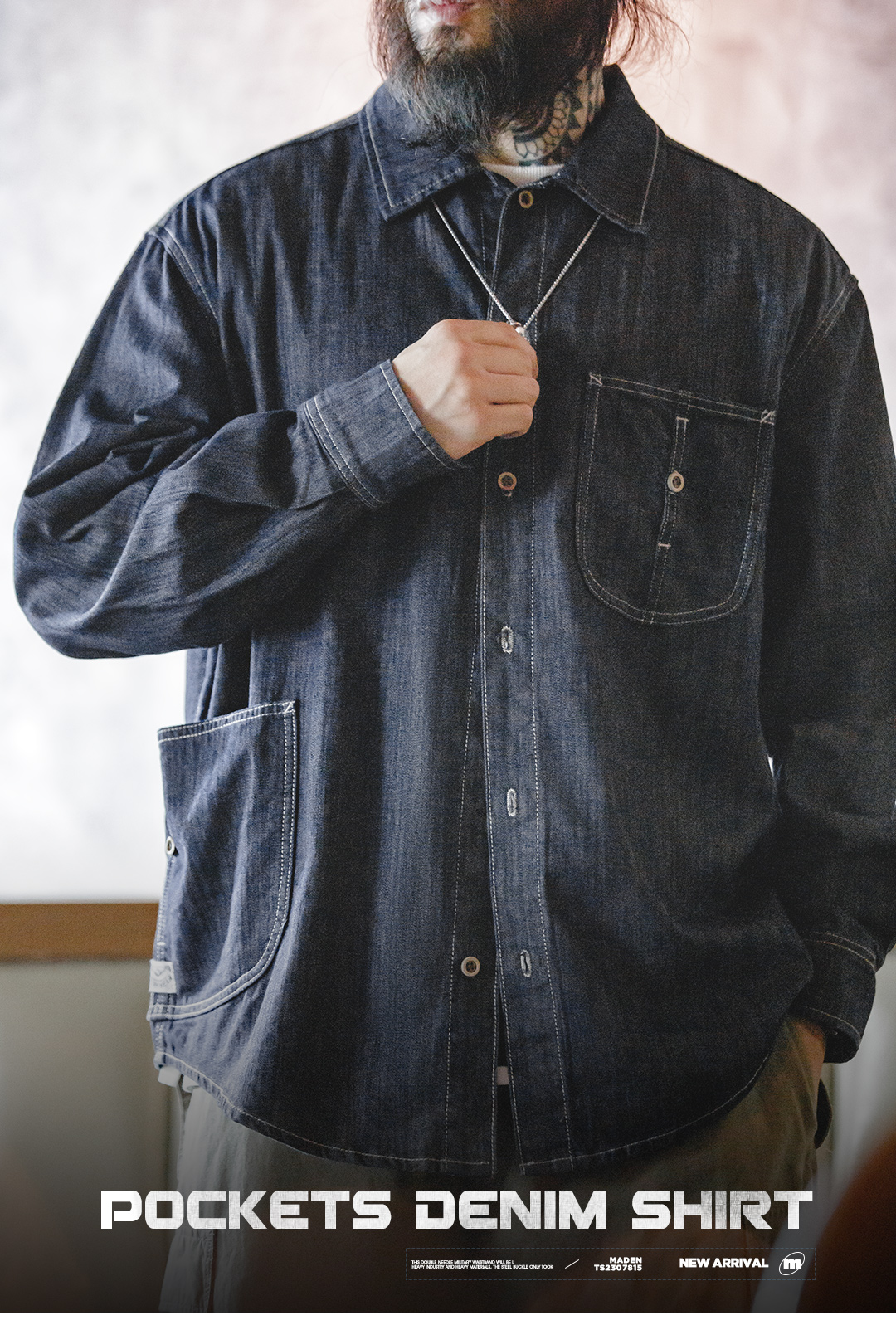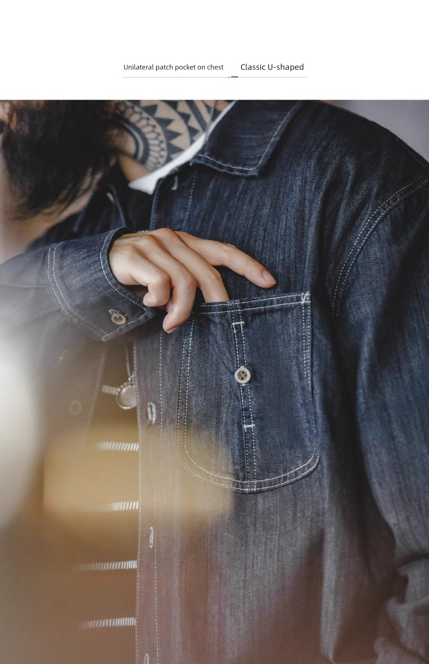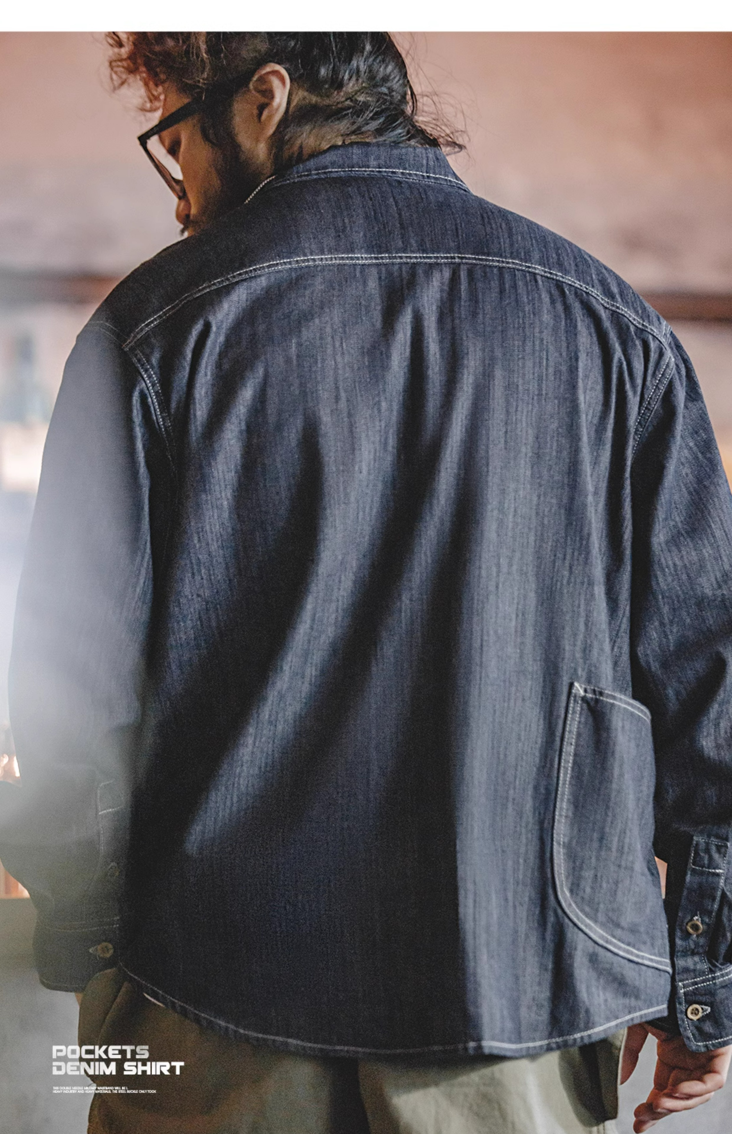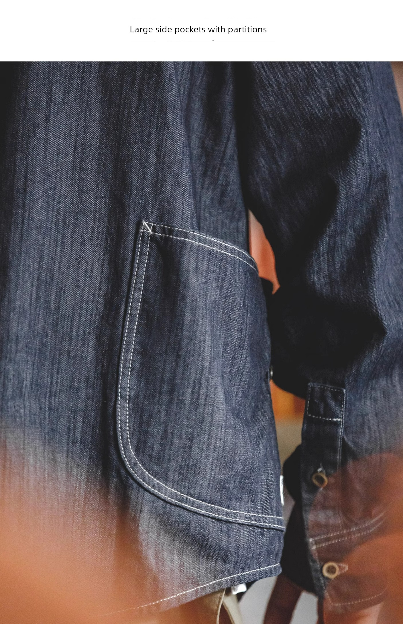 Madden Retro Denim Long Sleeves Topstitching Shirt Parka