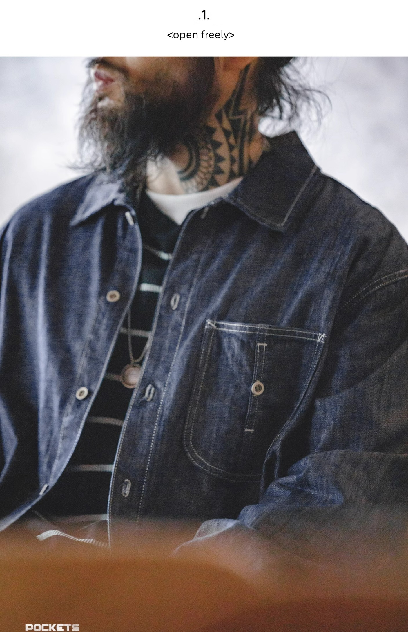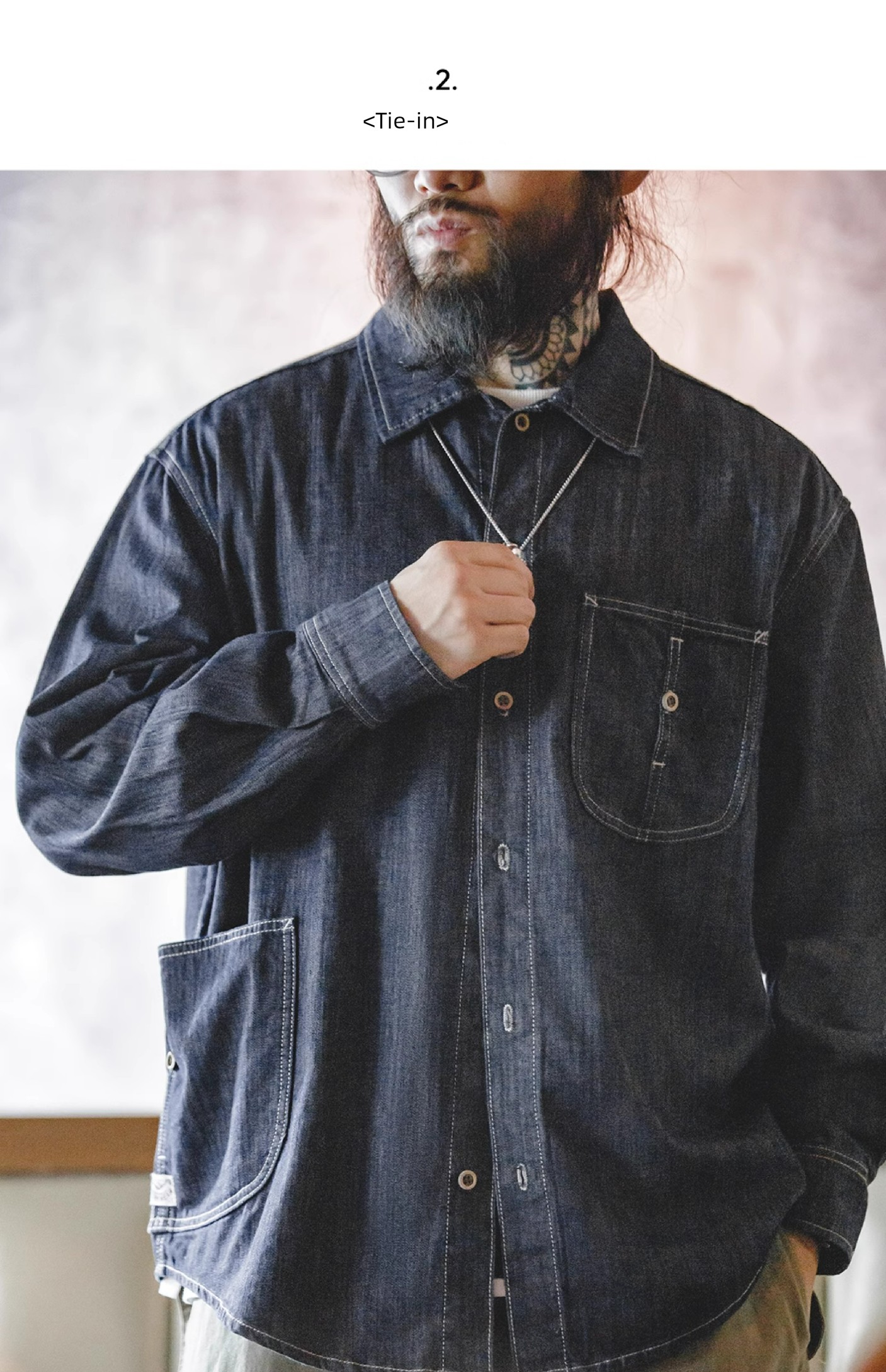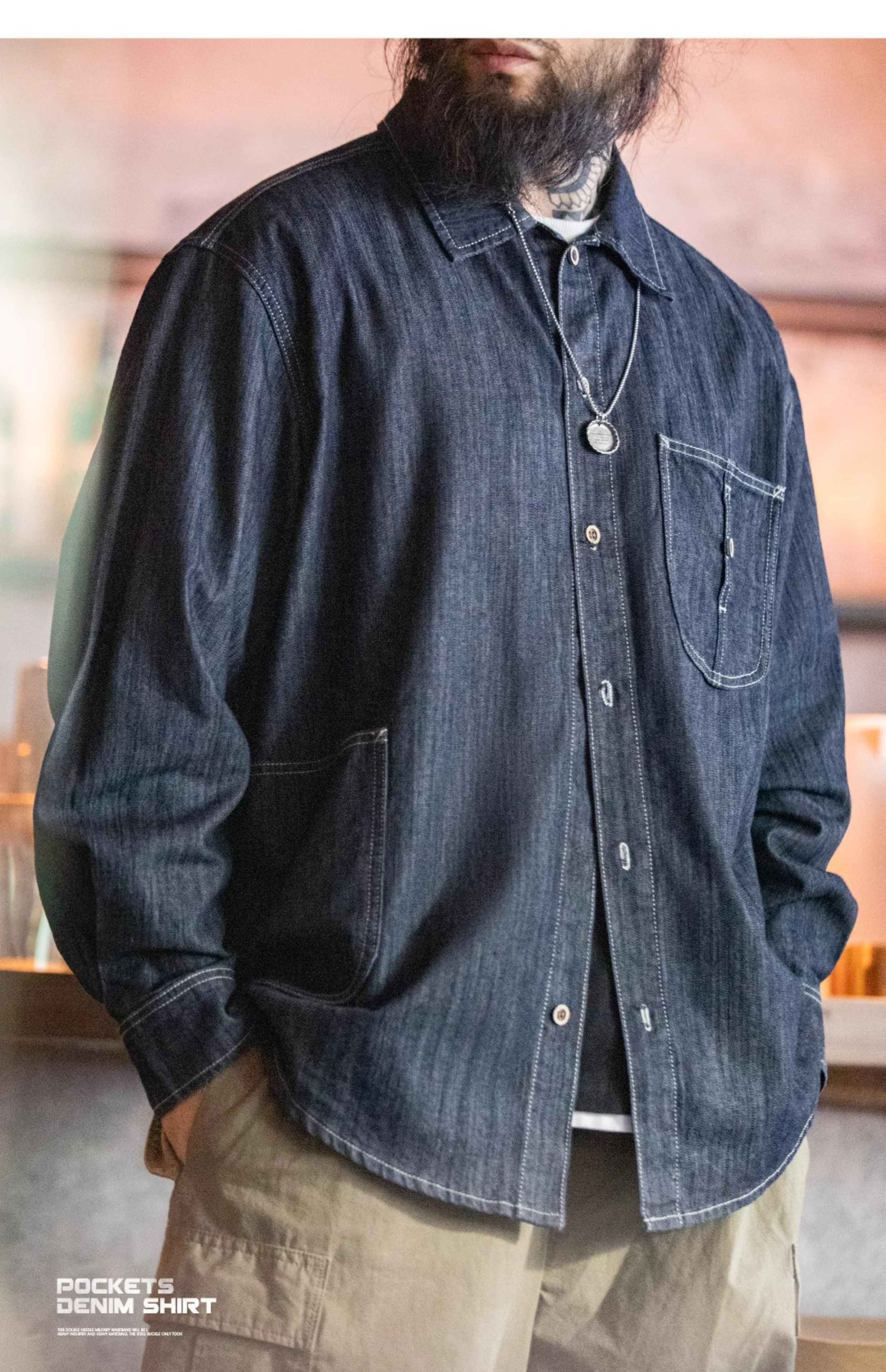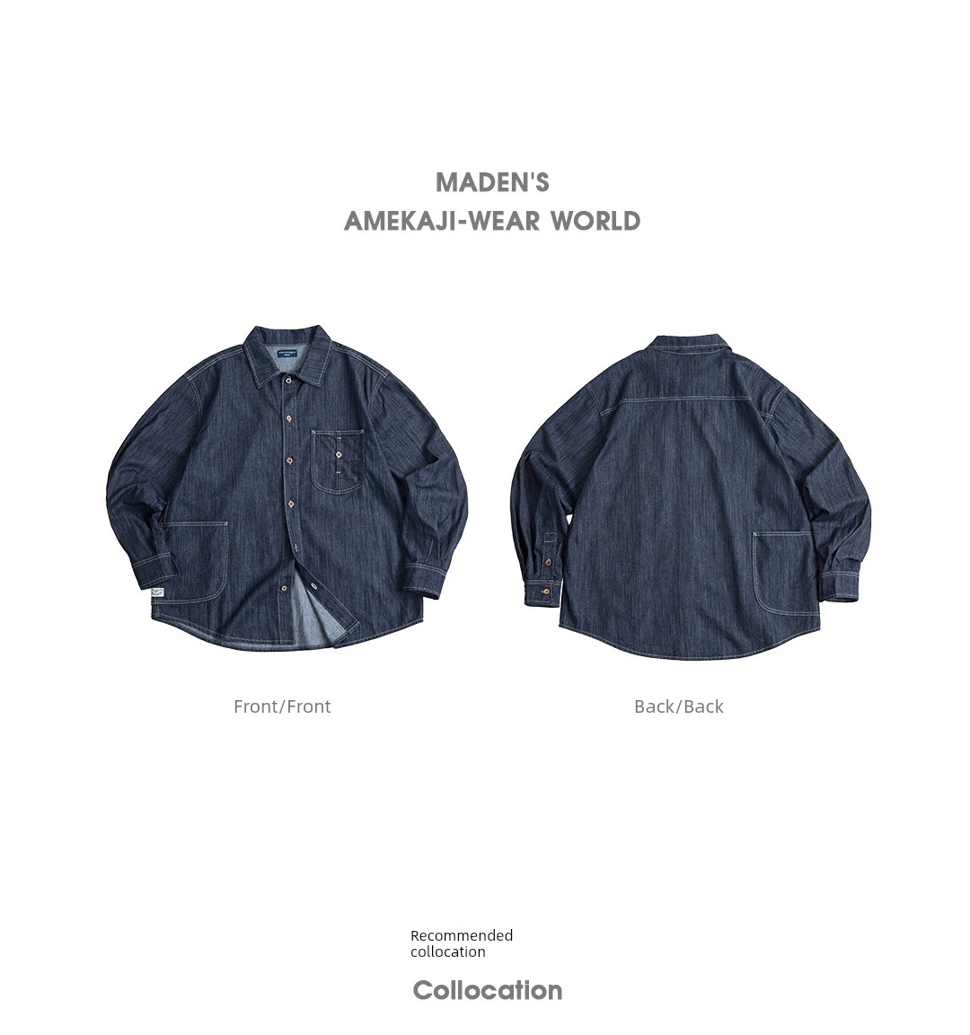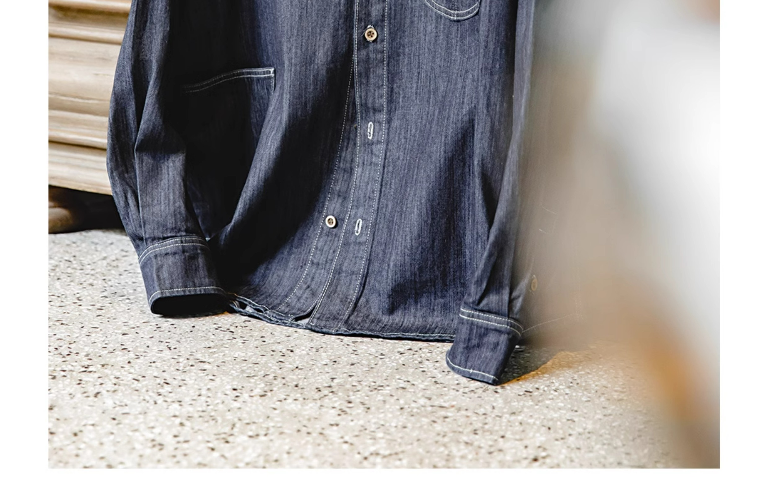 Madden Retro Denim Long Sleeves Topstitching Shirt Parka