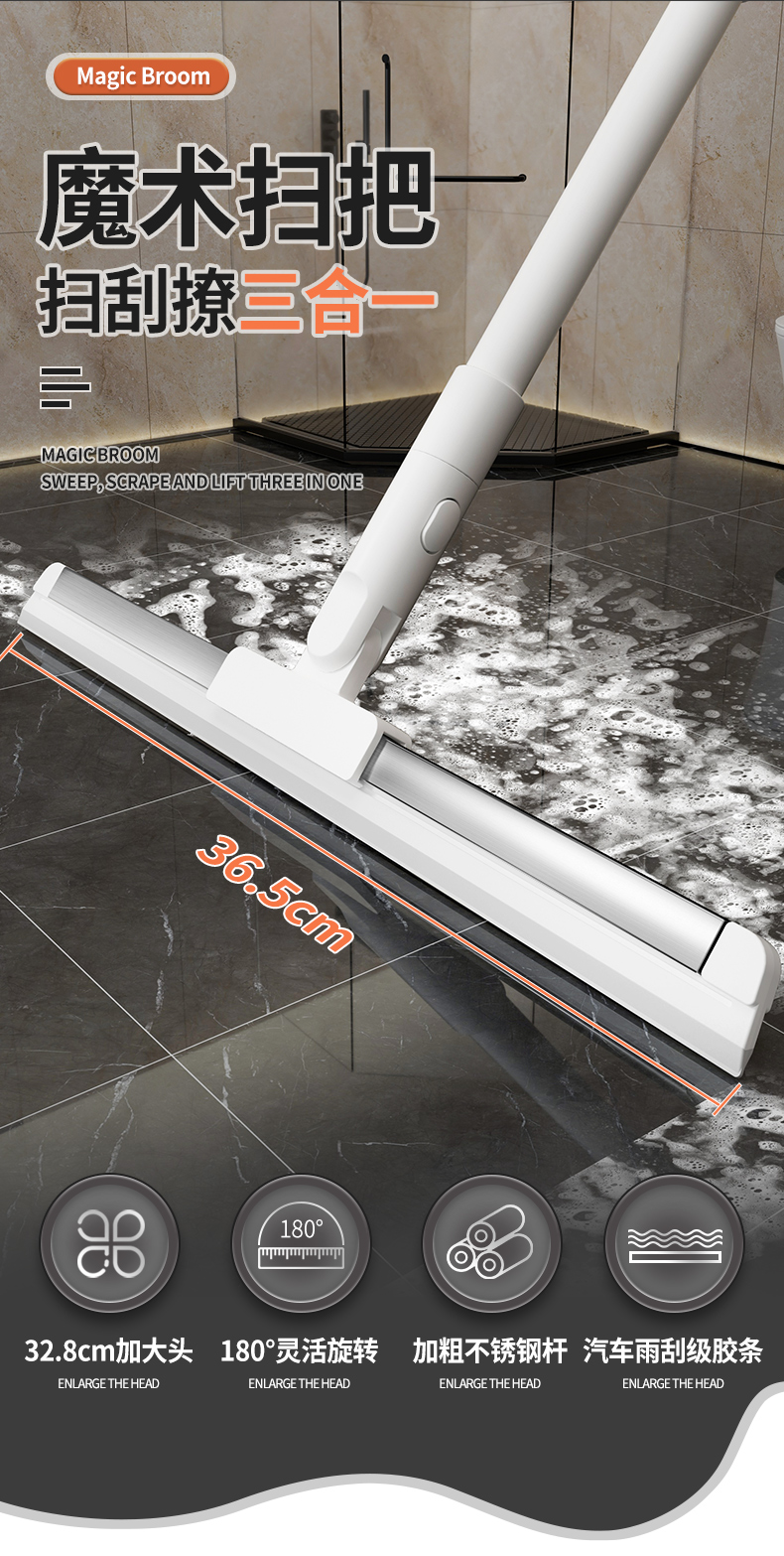 Magic Broom For Home Sweeping Bathroom Wiper Soft Rubber Floor Scraper Quick-Drying Bathroom Floor Wiper Mop Dual-Use