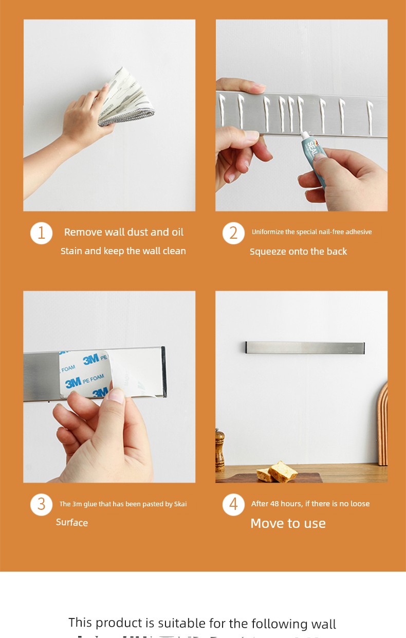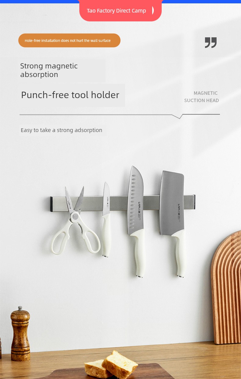 Magnet Knife Holder Kitchen Wall-Mounted Punch-Free Magnetic Knife Storage Rack Magnet Magnetic Suction Kitchen Knife Magnetic