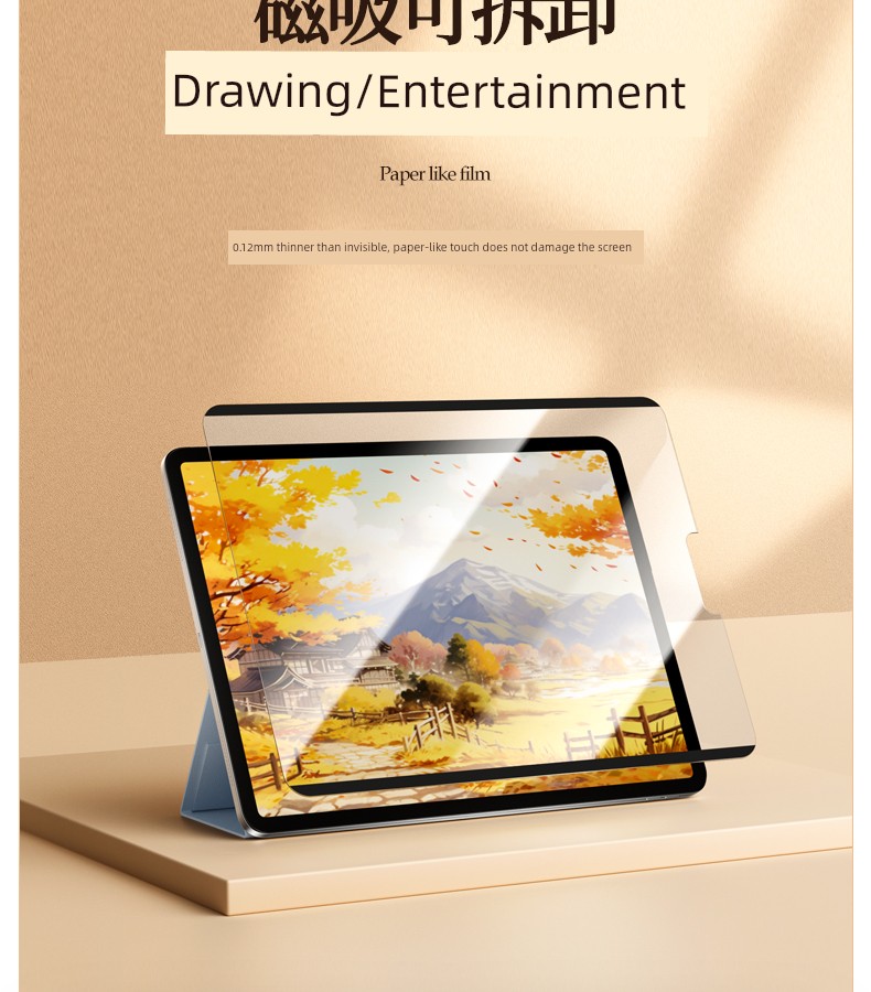 Magnetic Suction 3A Paper-like Film Applicable Ipadair4/HD Eye Protection/6 Ar Tempered Film Ipadpro7/8/9/10 Frosted Removable 2023 Protective Film Mini Apple Tablet Full Screen