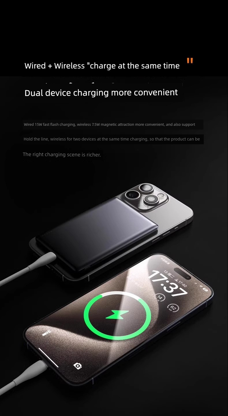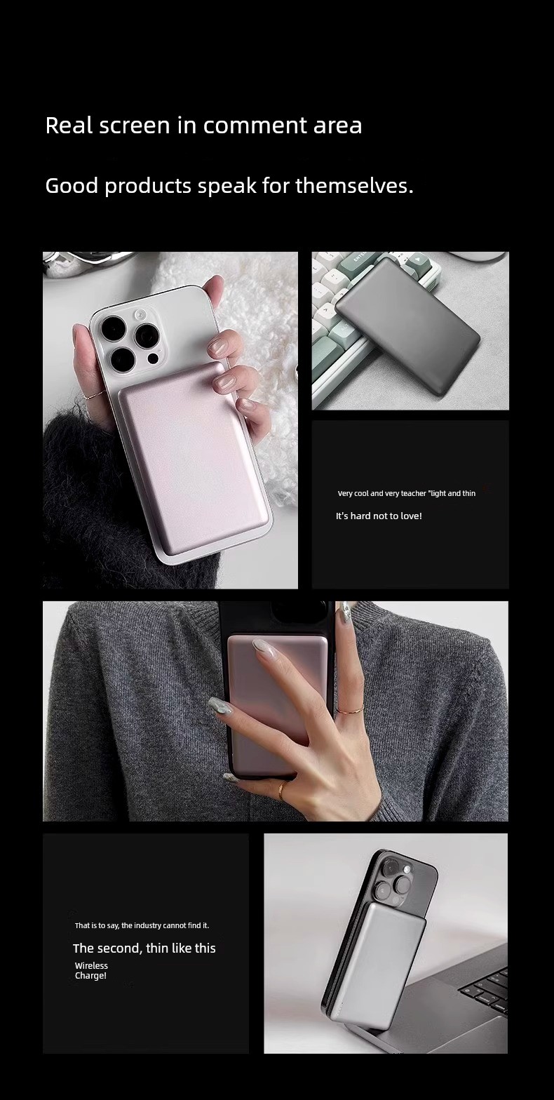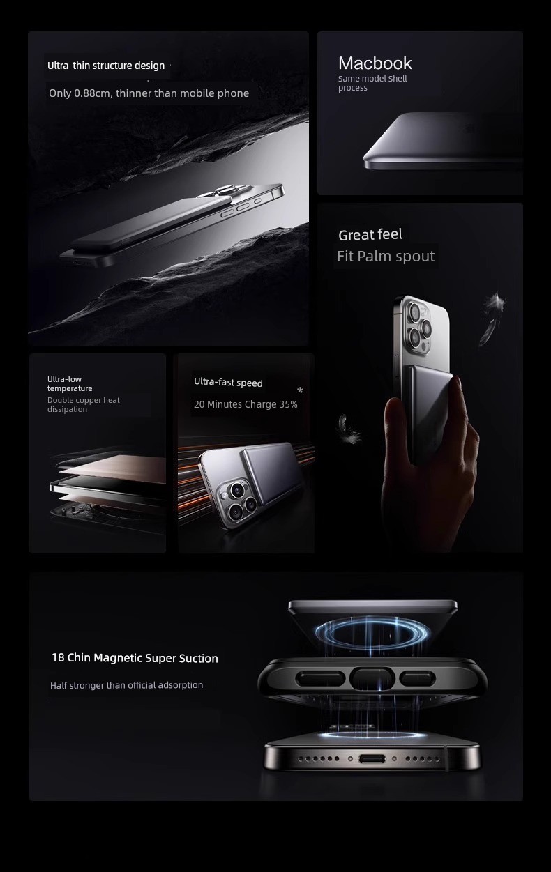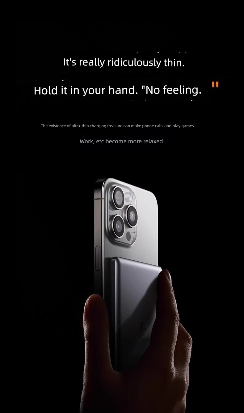Magnetic Suction Power Bank for Apple 16Promax Aircraft Movable Power Supply Mini Convenient Metal Iphone15 Fast Charging Large Capacity Ultra-Thin Wireless Type MagSafe High-Speed Train