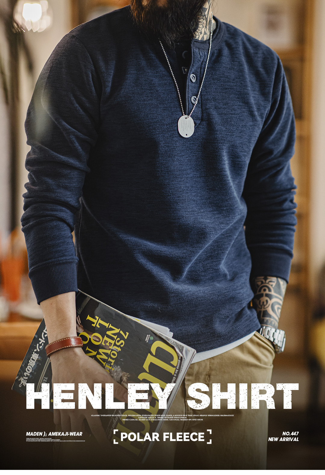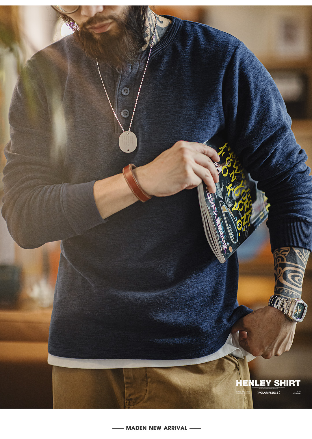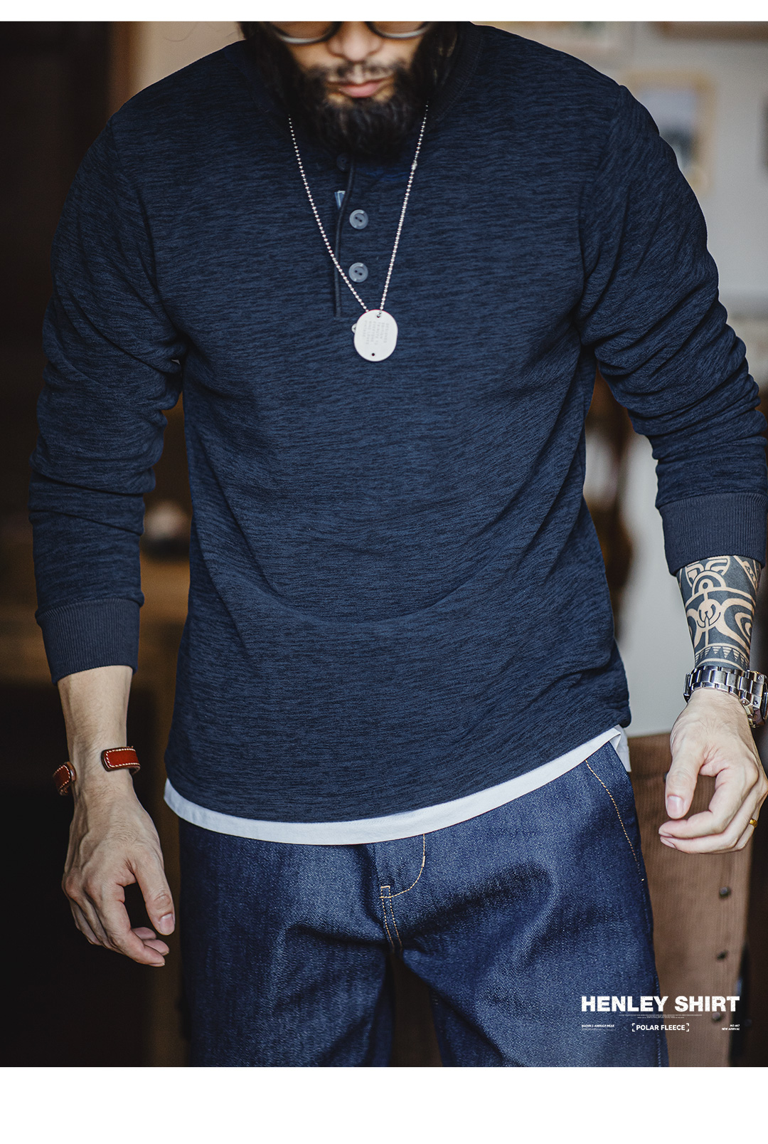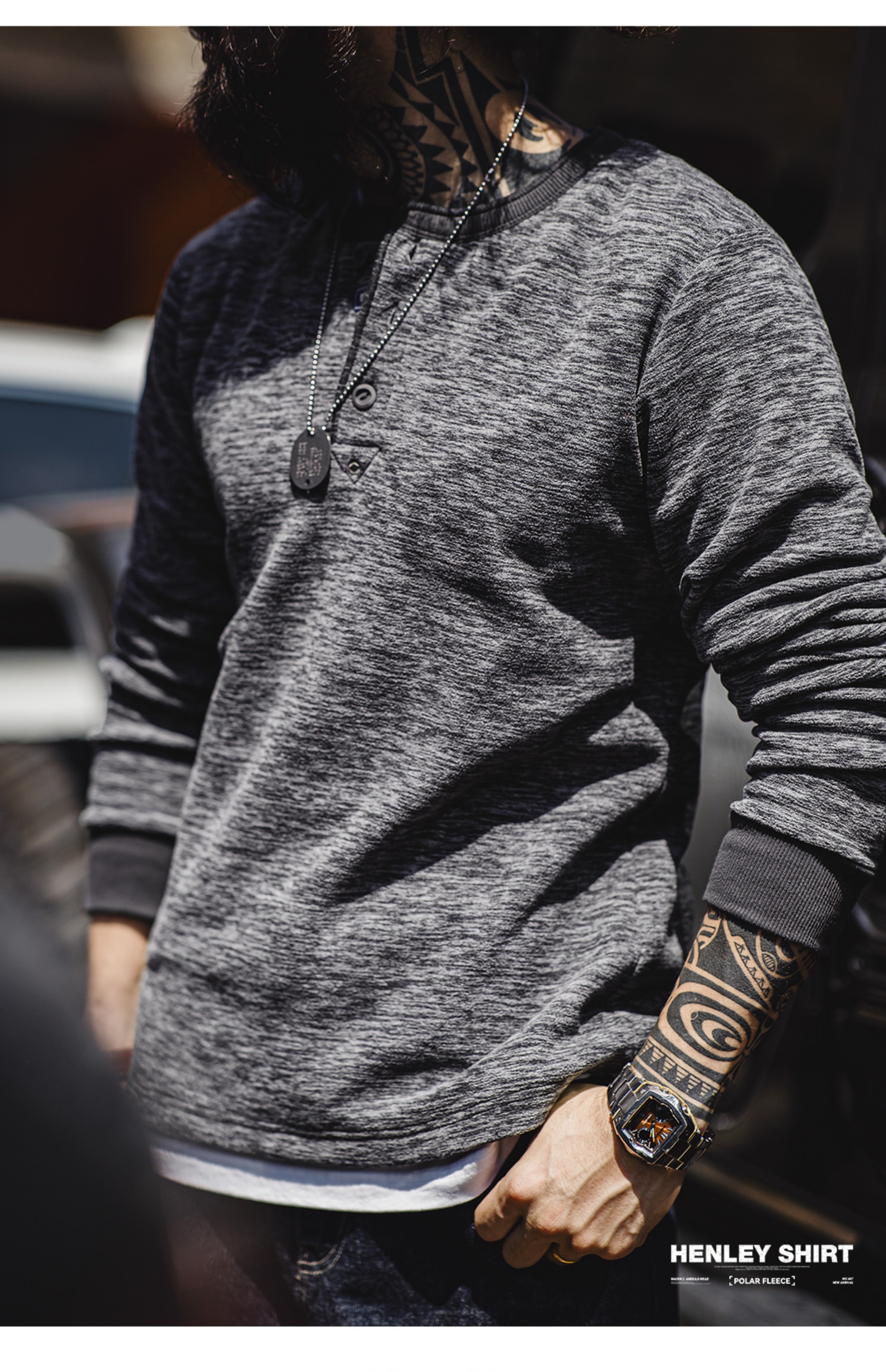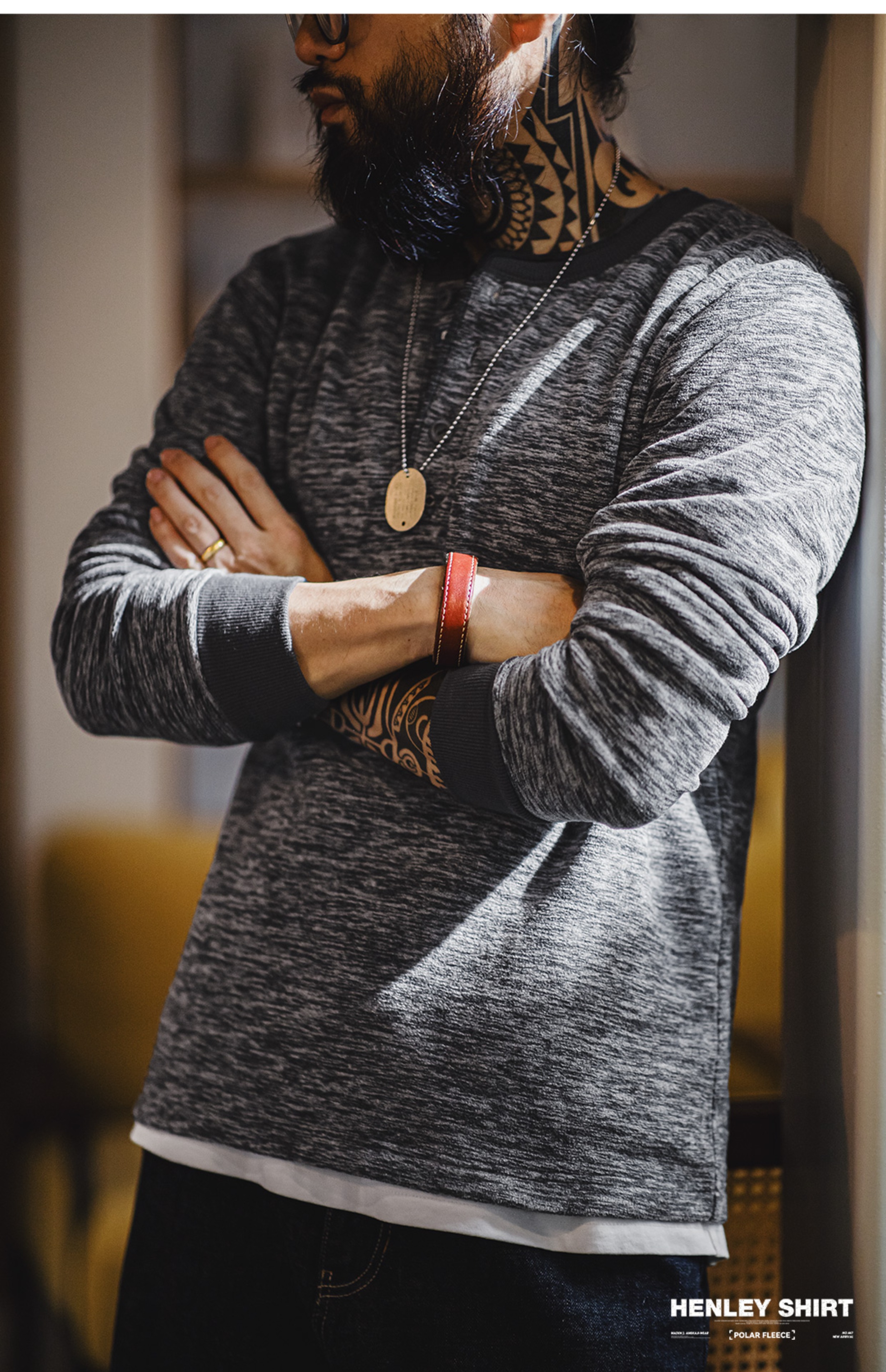 American Vintage Cargo Polar Fleece Henry Shirt - Men's Autumn/Winter Tough Guy Pullover