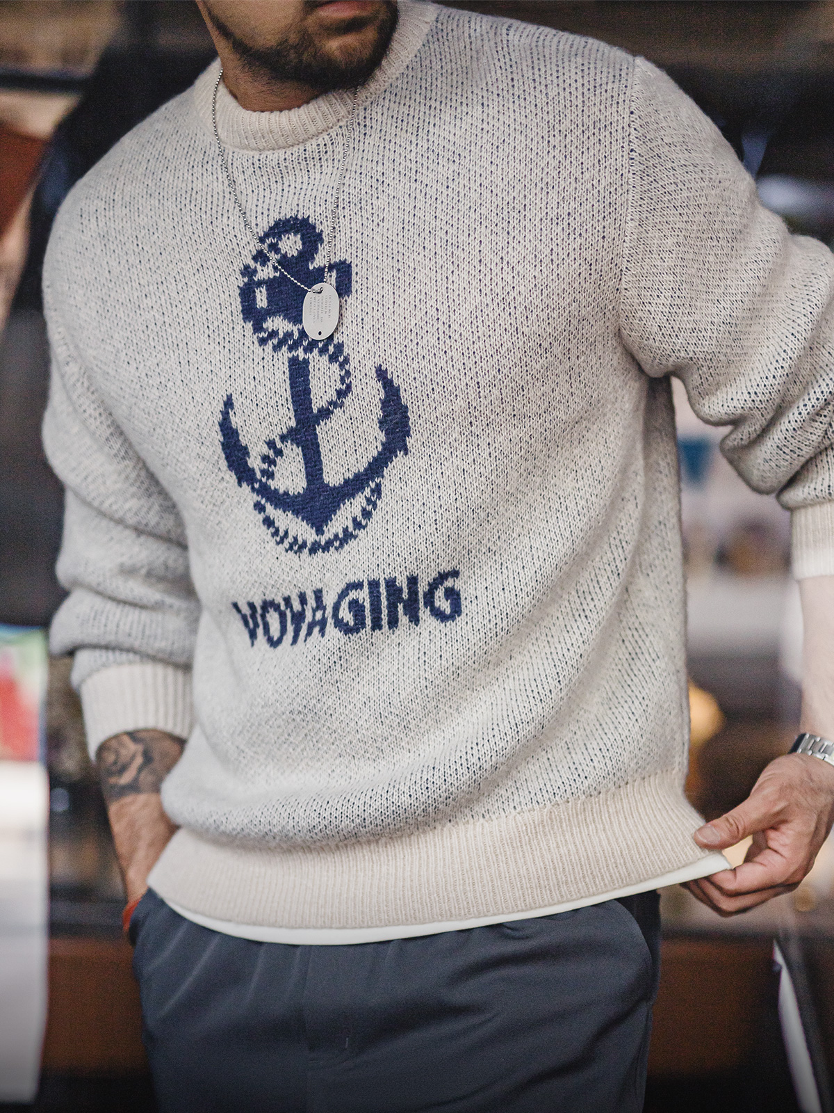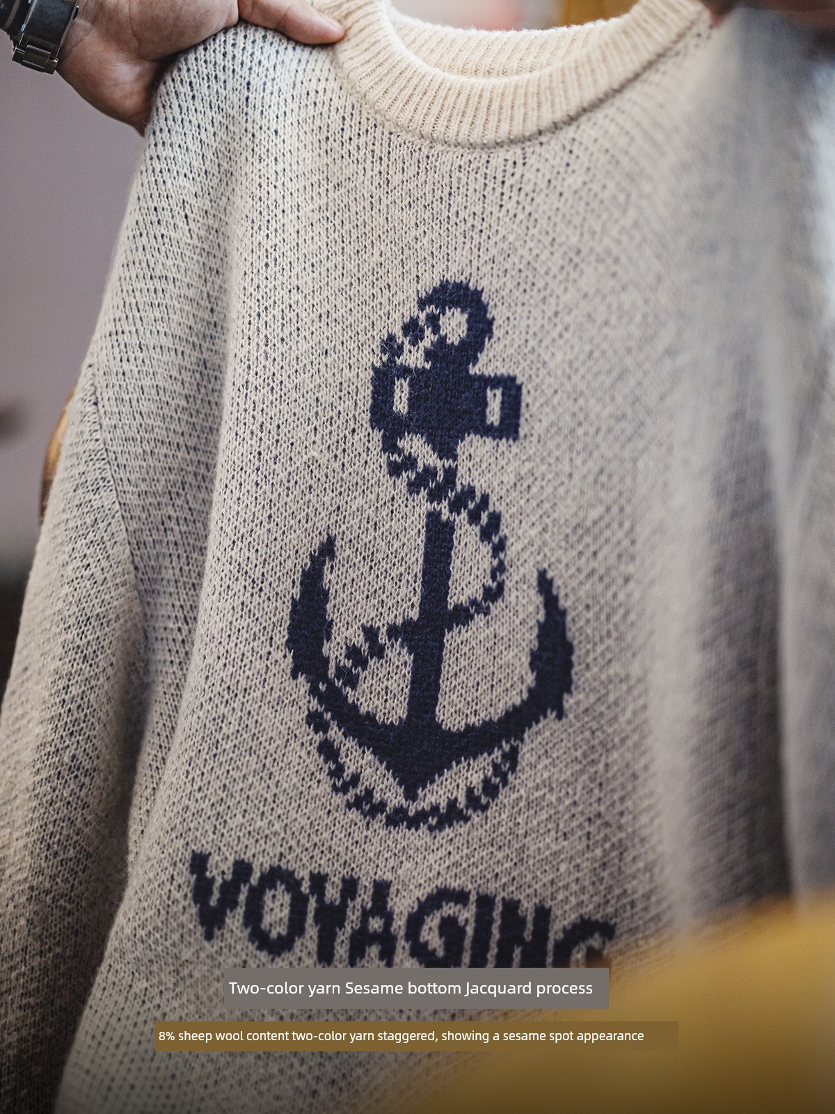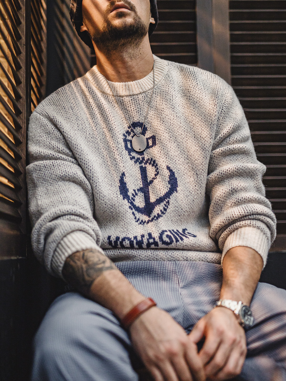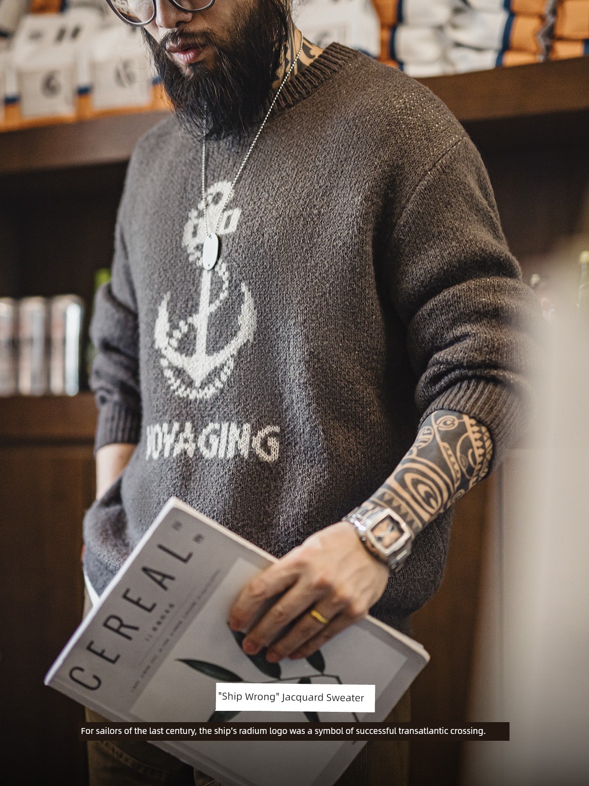 Marden Cargo Men's Vintage Boat Anchor Jacquard Crew Neck Sweater