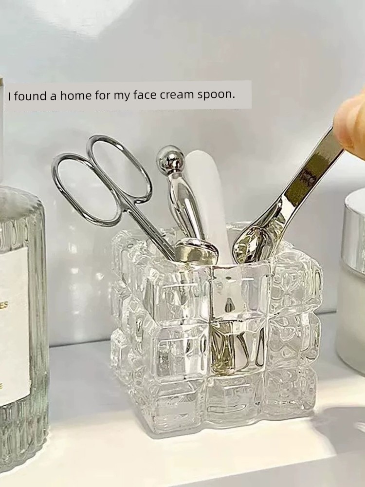 Mask Spoon Mirror Cabinet Storage Box Digging Cream Spoon Holder Glass Desktop Makeup Skin Care Eye Cream Pick Stick Brush
