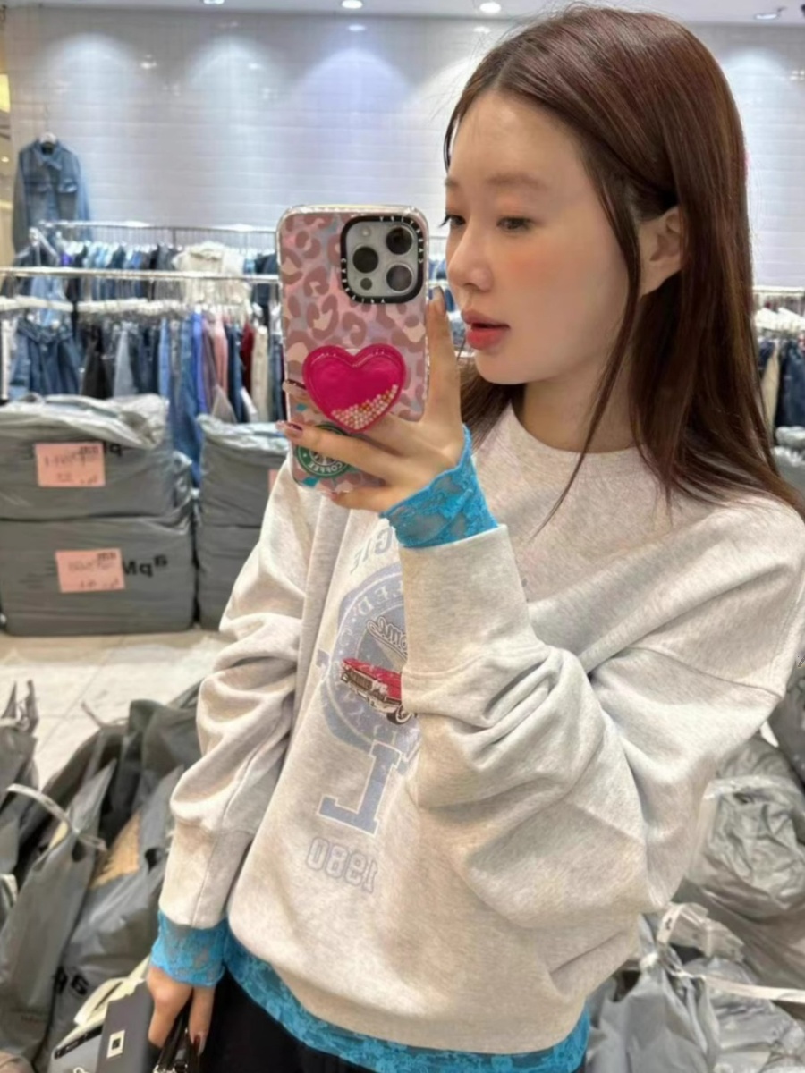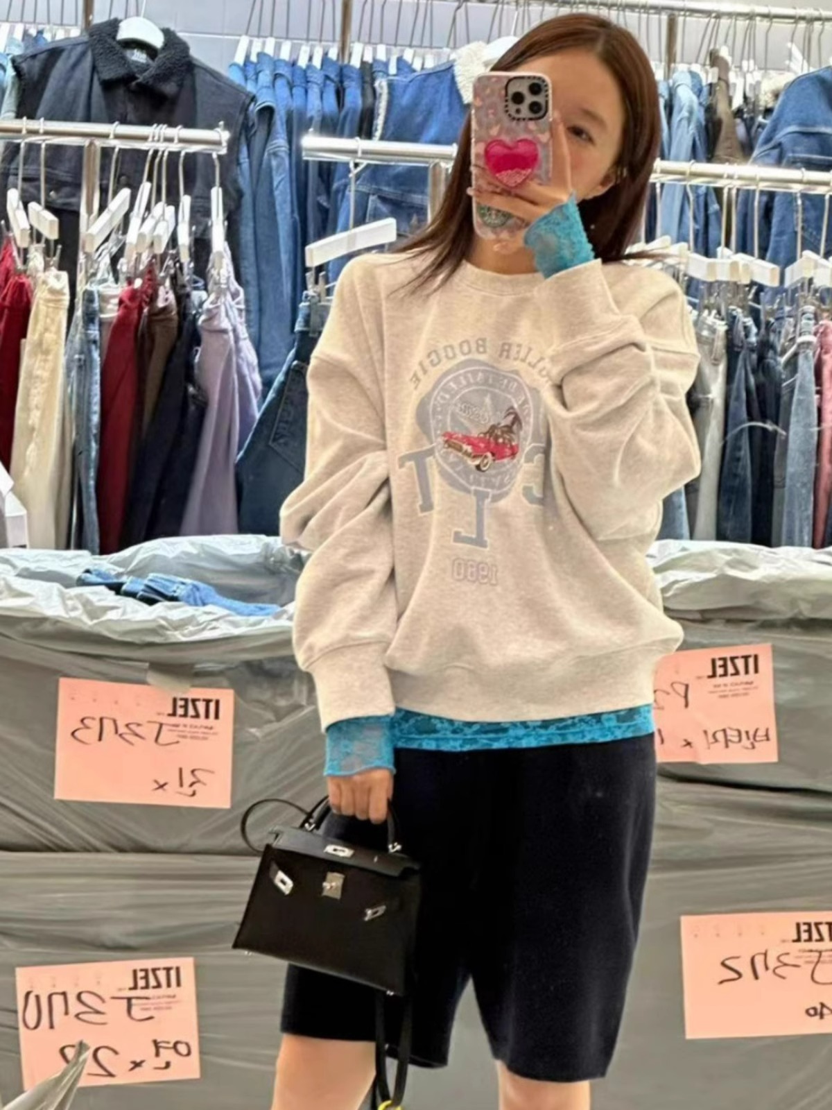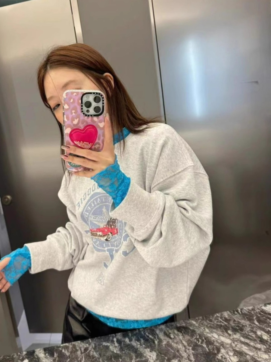 Casual Printed Round Neck Hoodie - Spring Thin Loose Long Sleeve Pullover