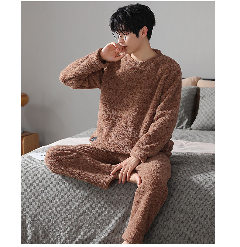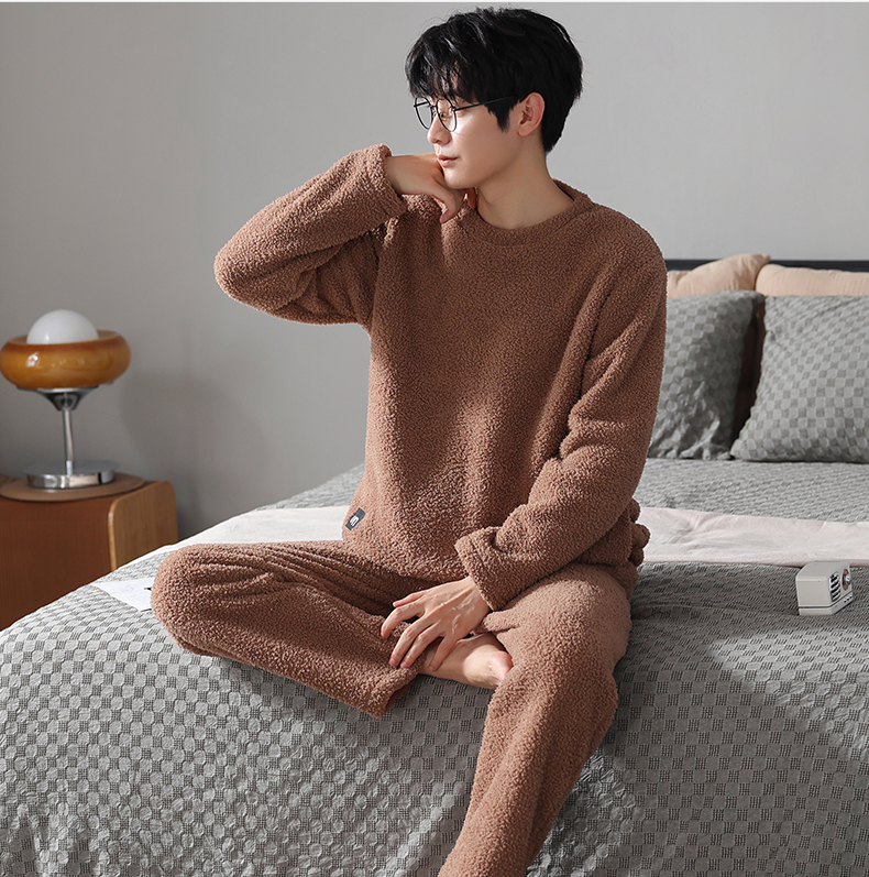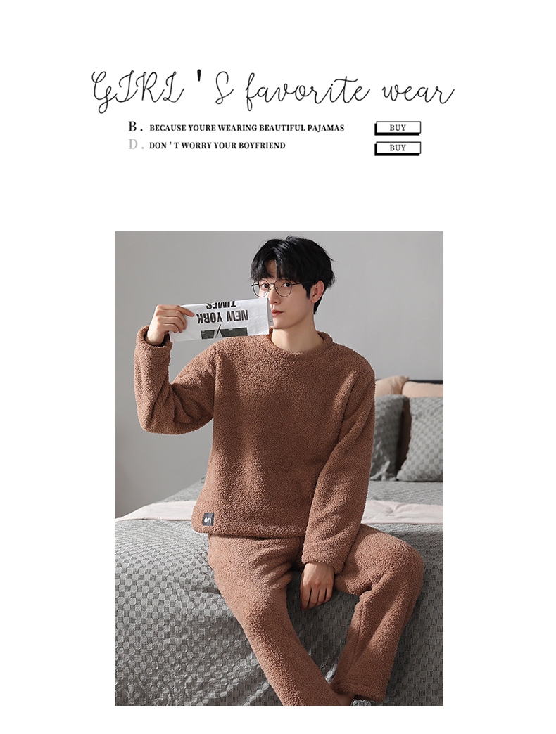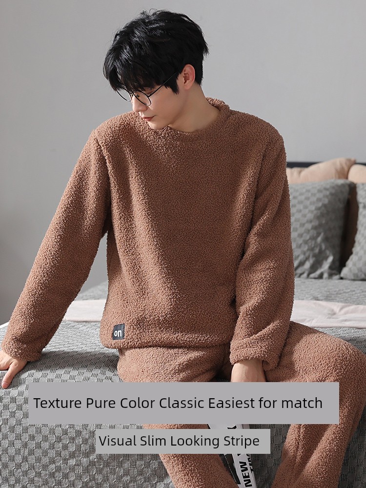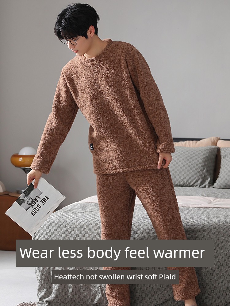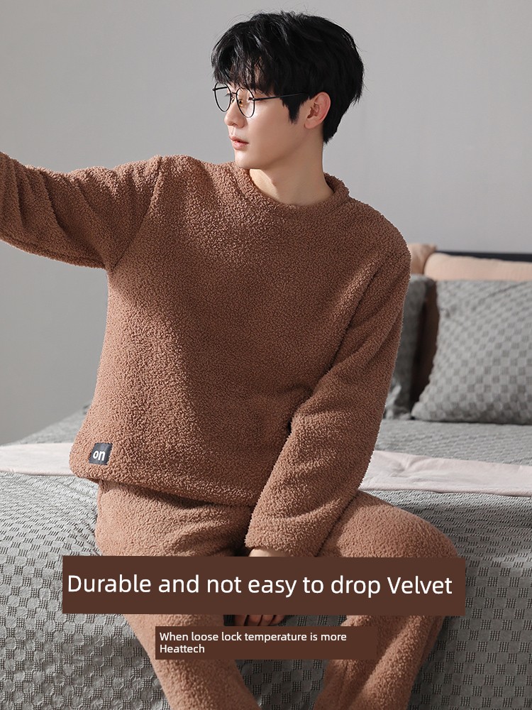 Men's Autumn/Winter Plus Velvet Thickened Coral Fleece Long Sleeve Home Wear Set