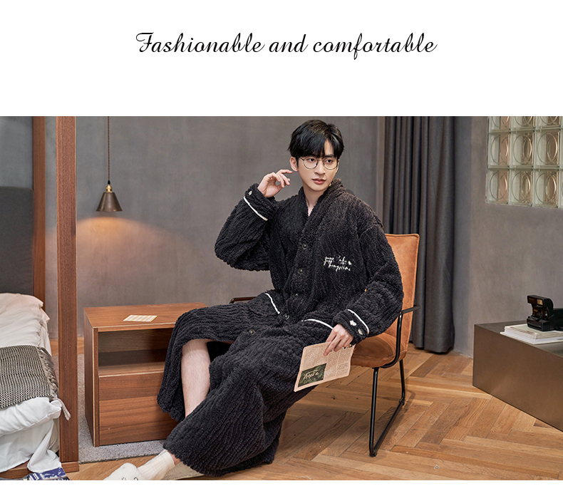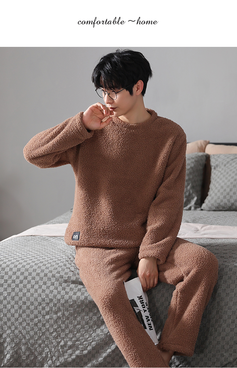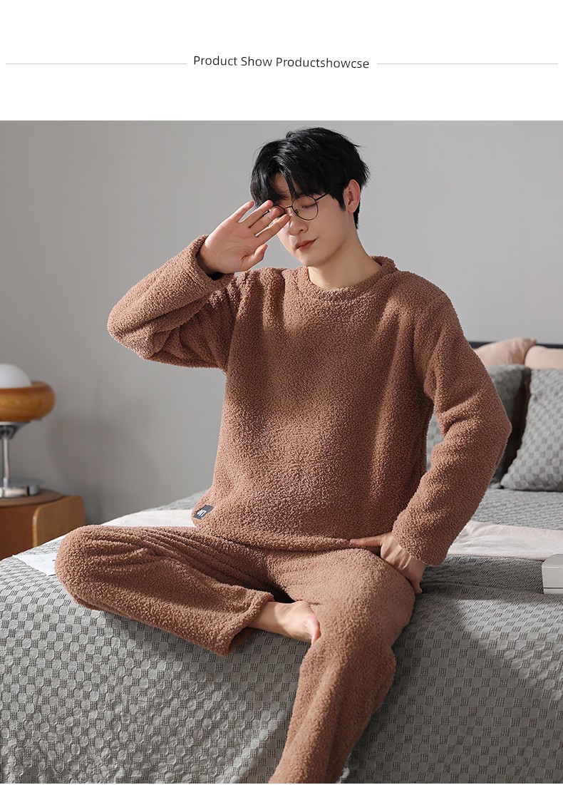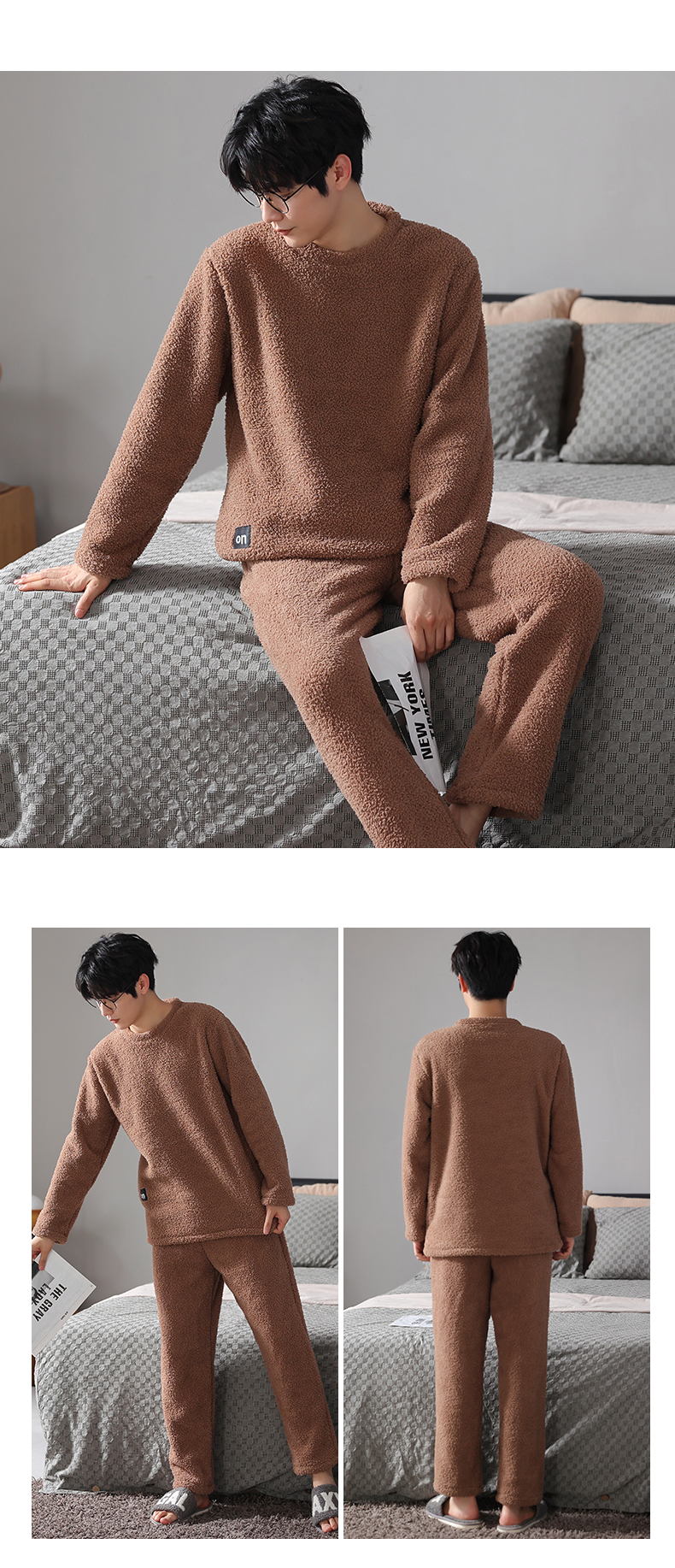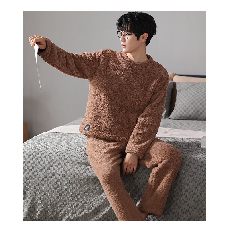 Men's Autumn/Winter Plus Velvet Thickened Coral Fleece Long Sleeve Home Wear Set