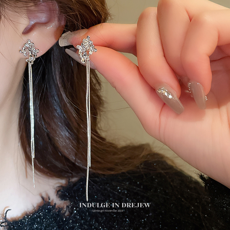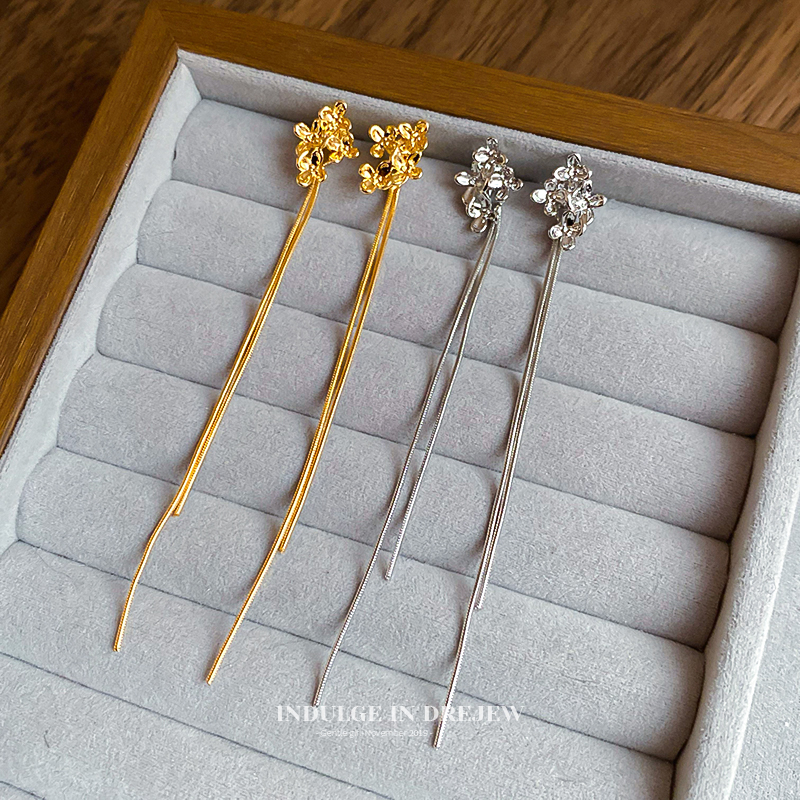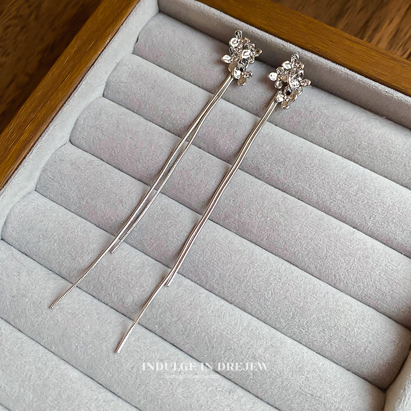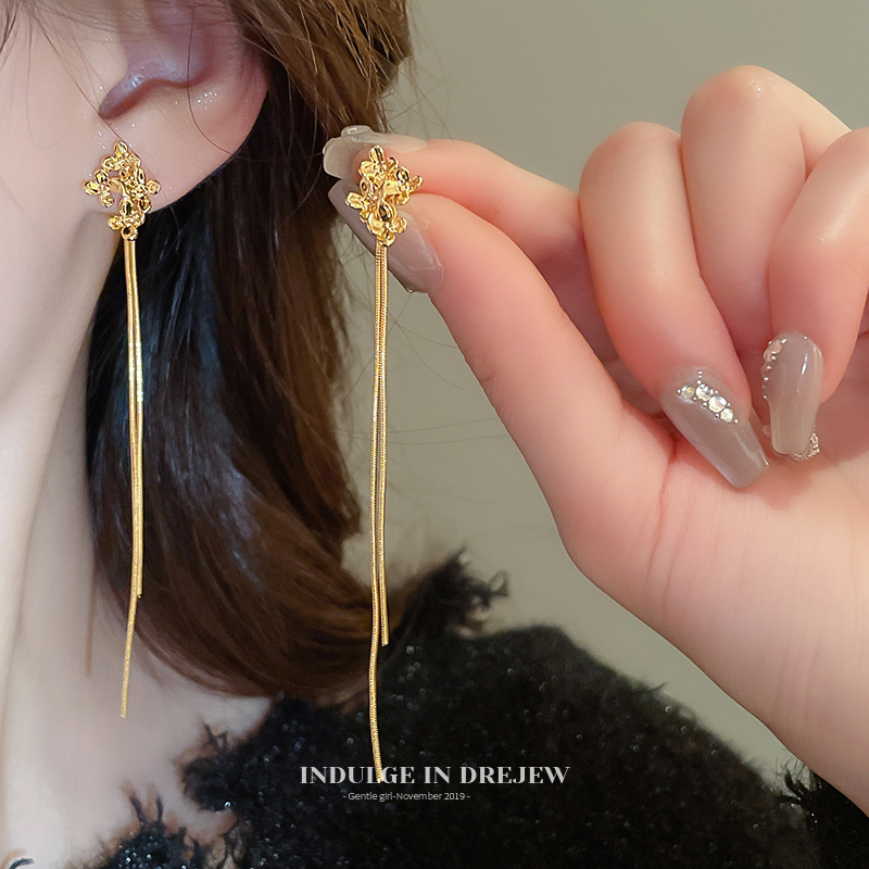 Metal Flower Long Fringe Earrings Accessible Luxury Fancy Stud Earrings for Women Special-Interest Design Cold Style Dual-Wear Earrings