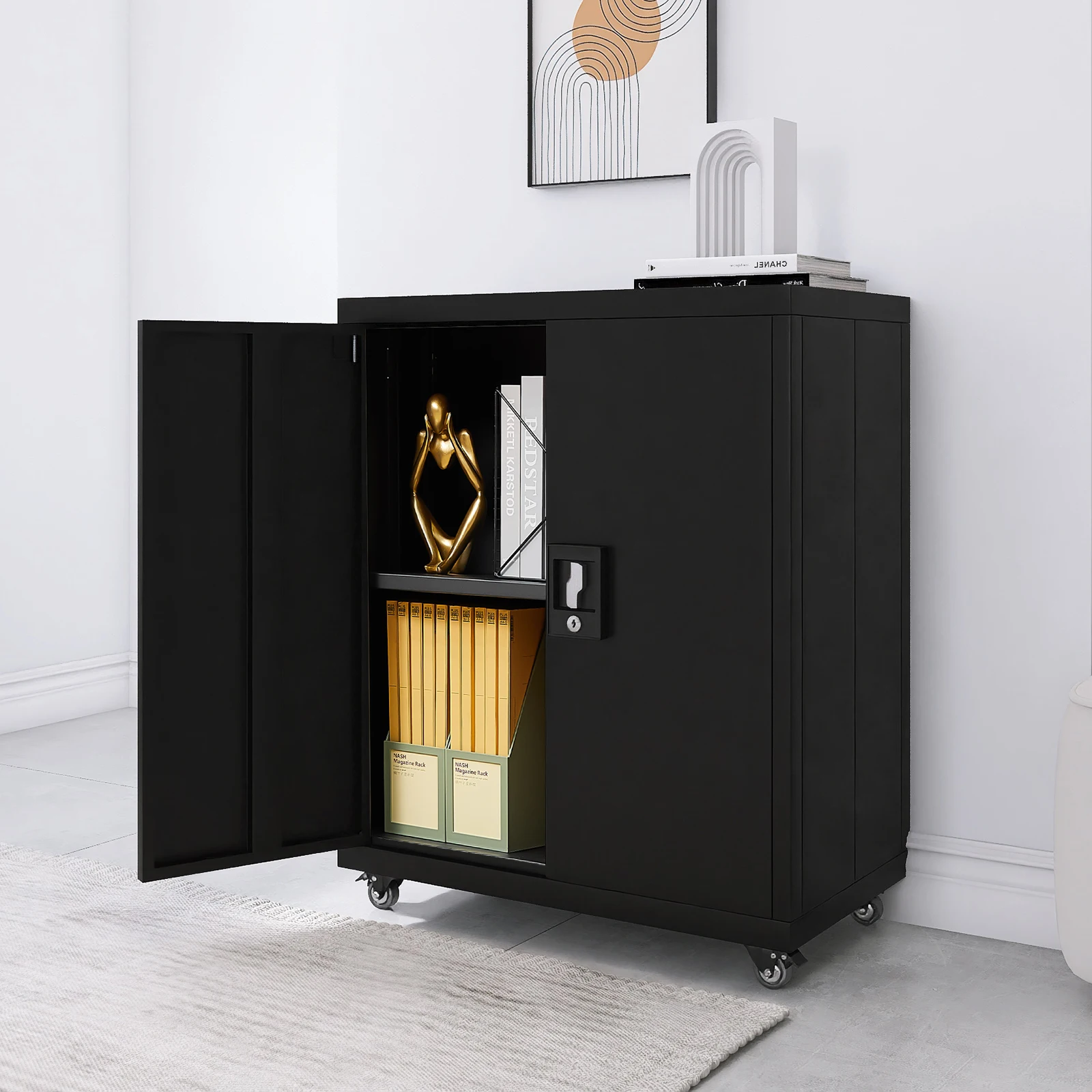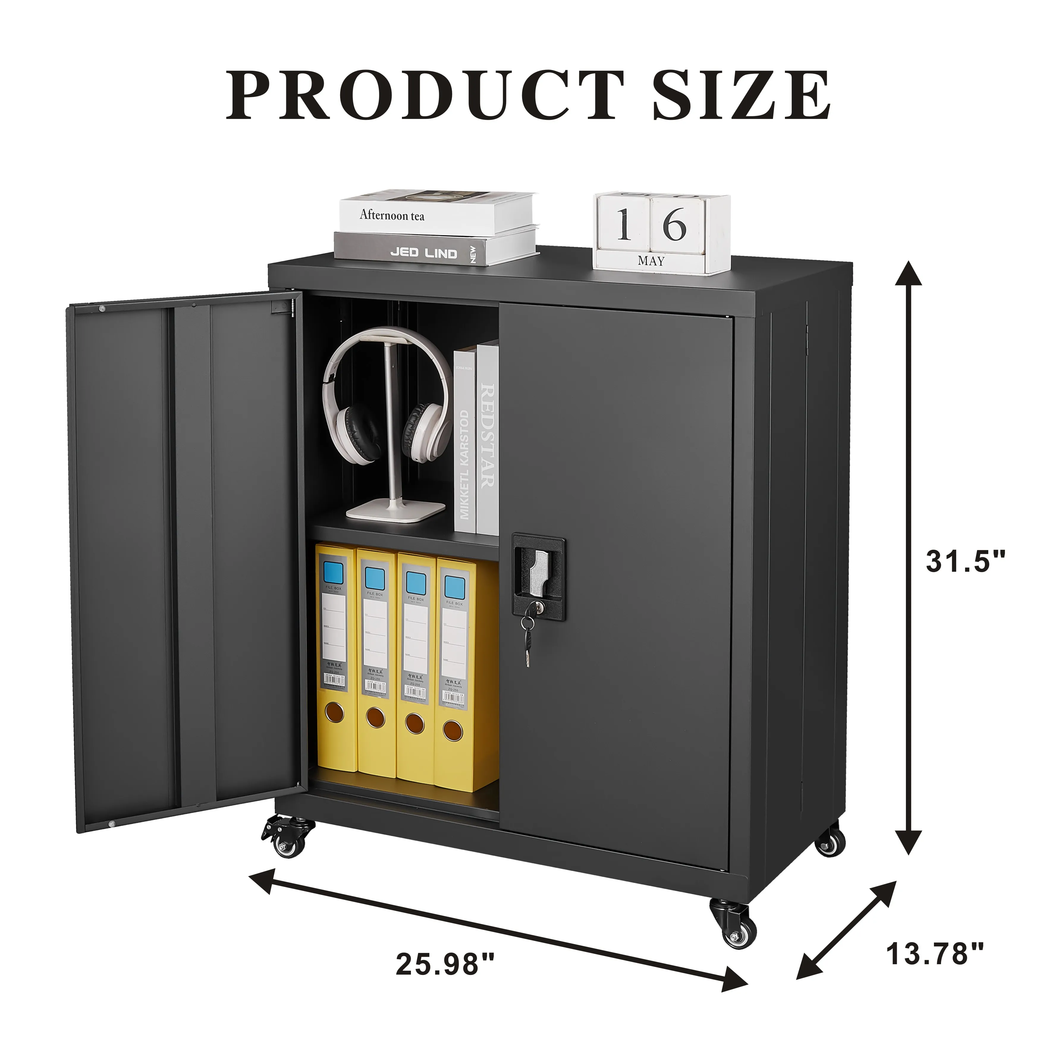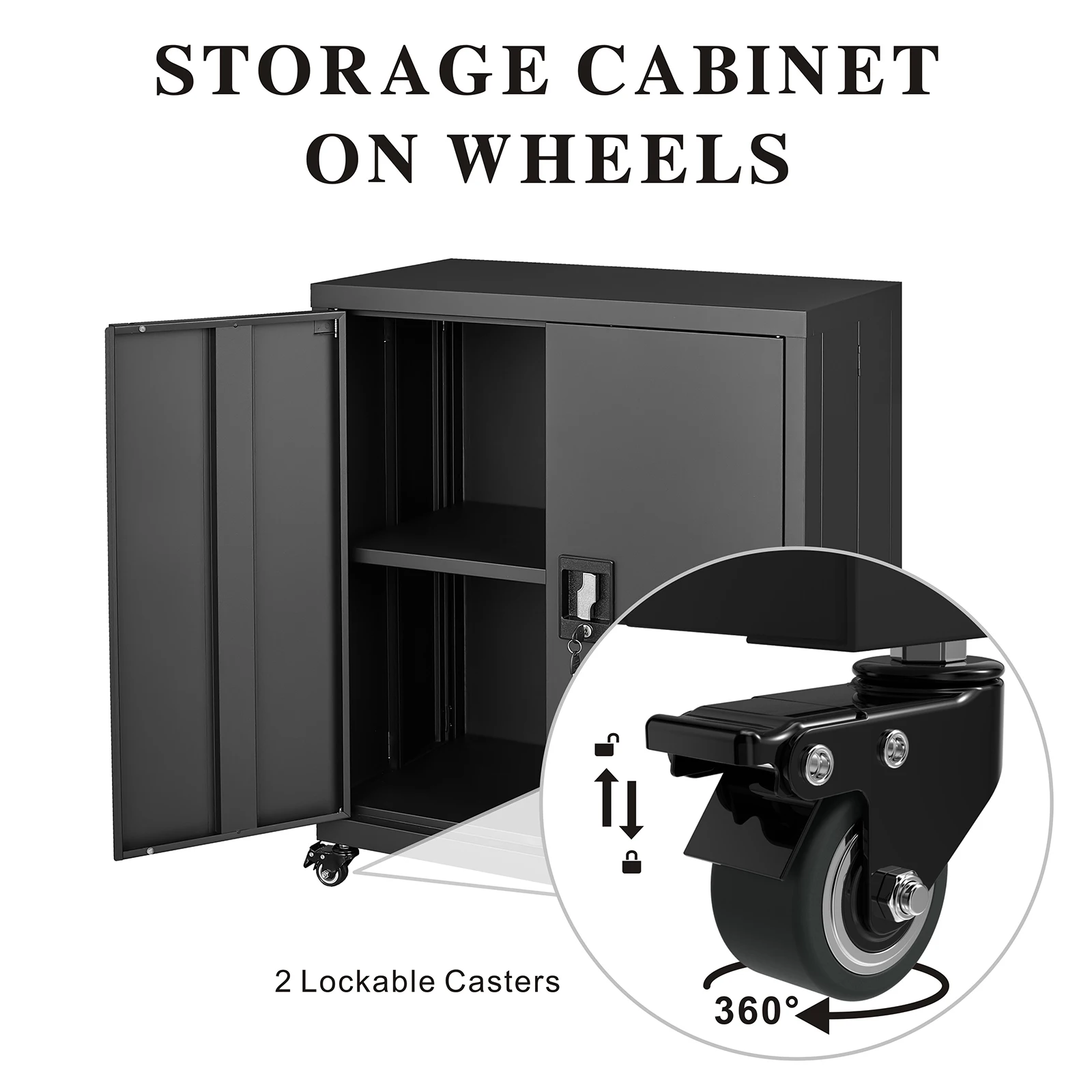 Metal Storage Cabinet with Locking Doors Steel Storage Cabinet with Wheels Suit for Home Office 1 Adjustable Shelf for Files