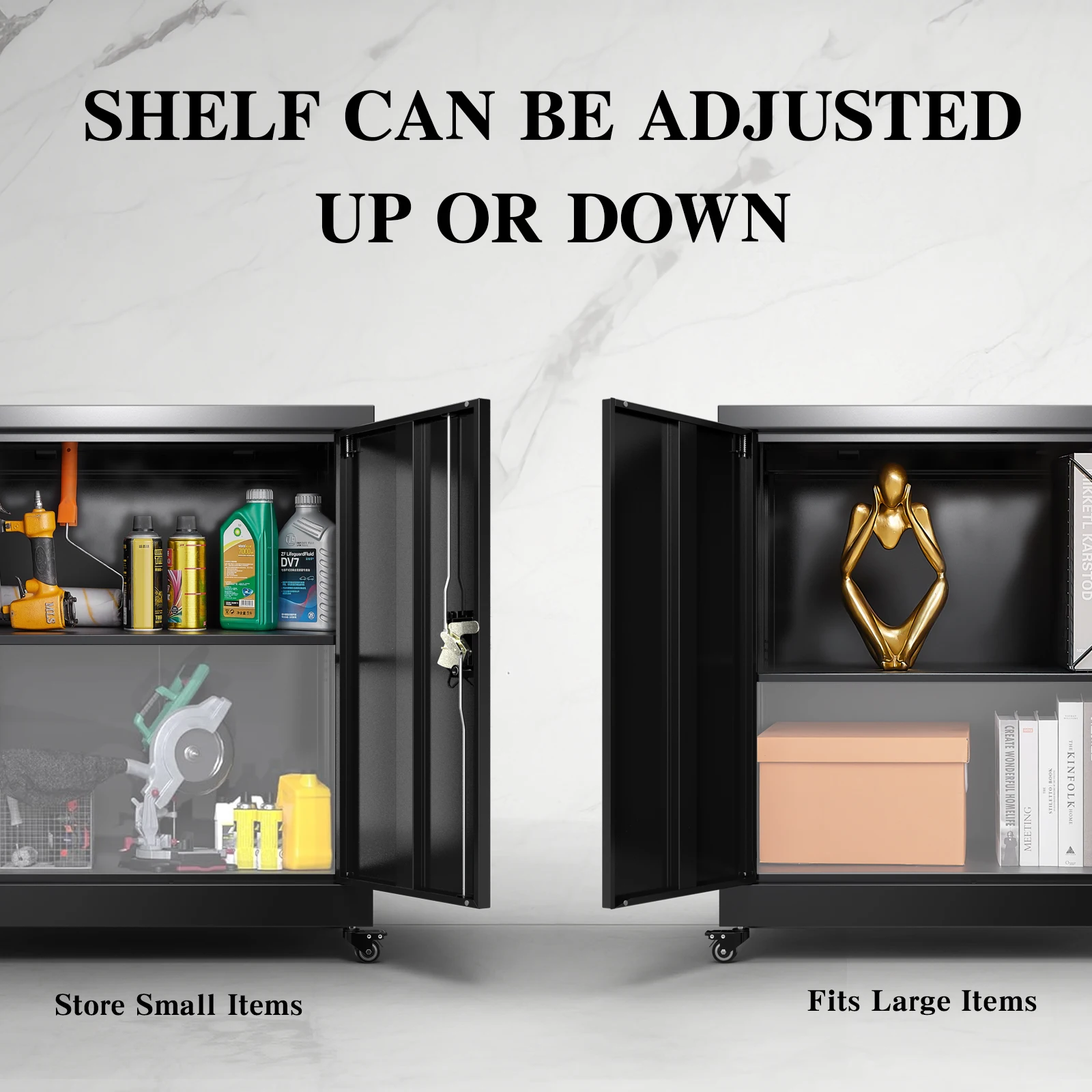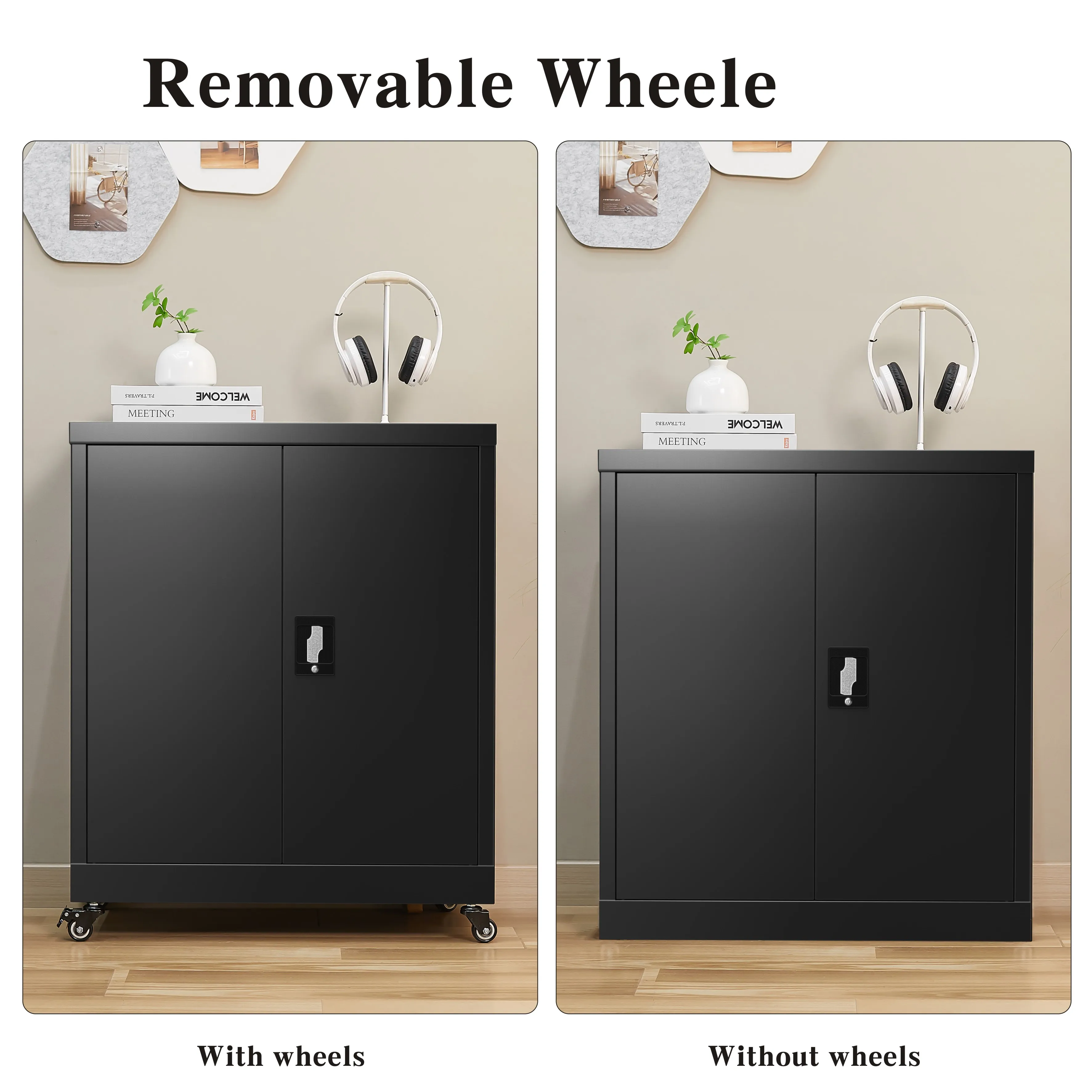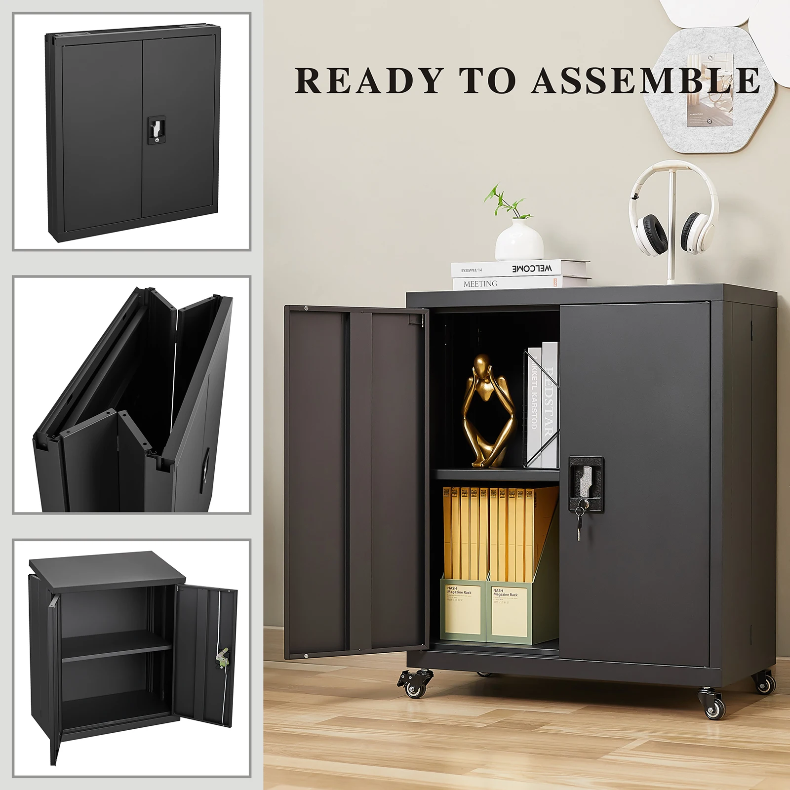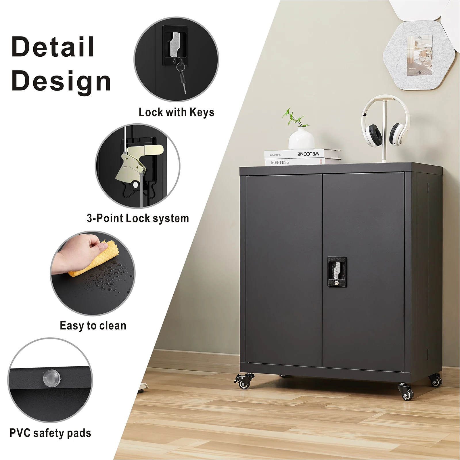 Metal Storage Cabinet with Locking Doors Steel Storage Cabinet with Wheels Suit for Home Office 1 Adjustable Shelf for Files