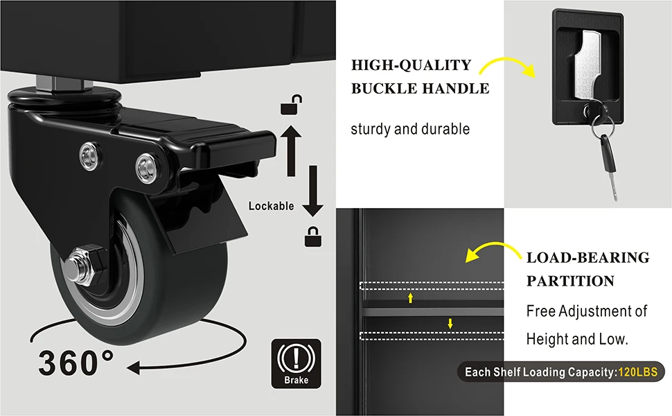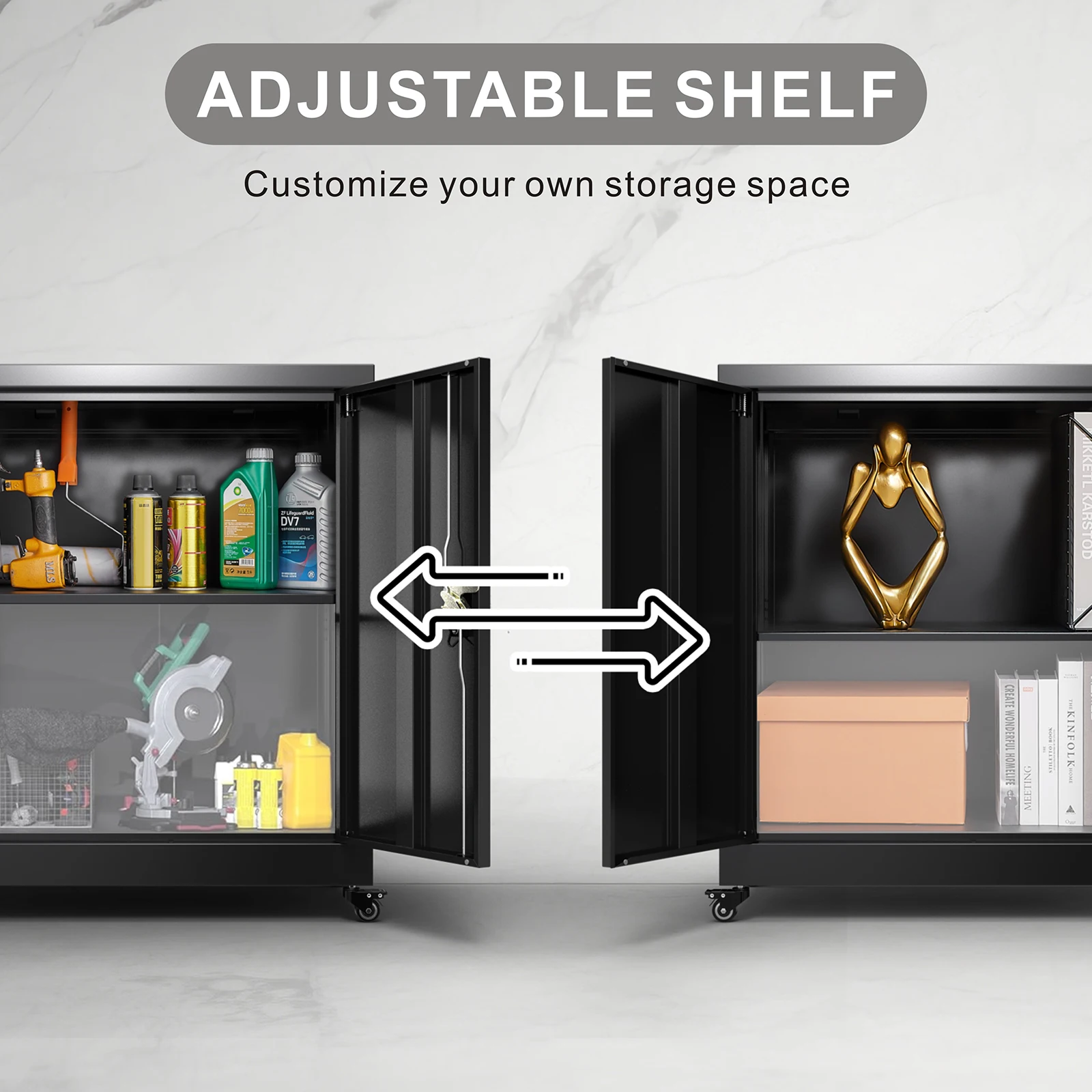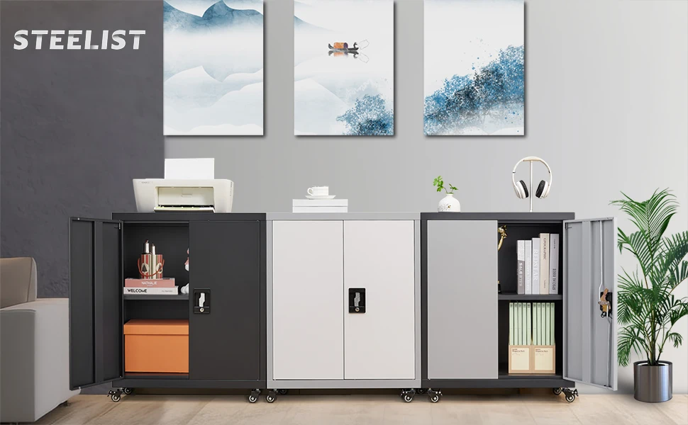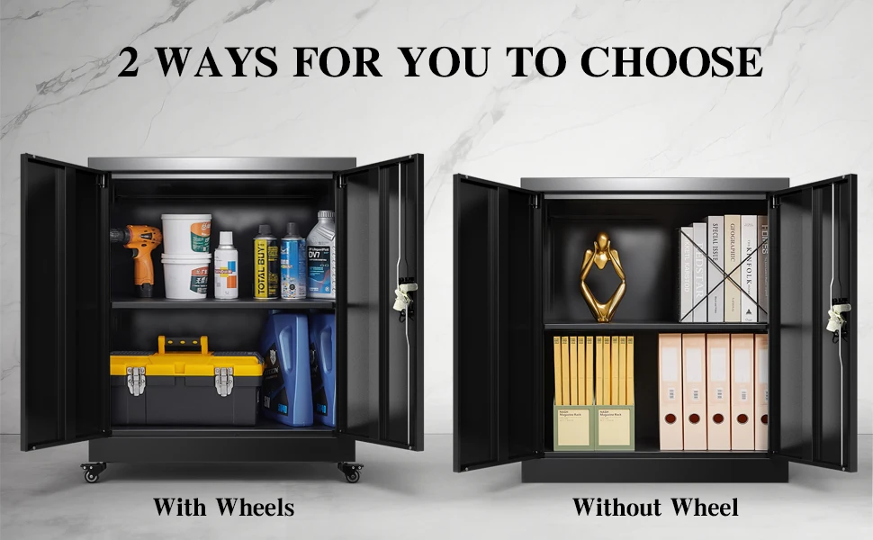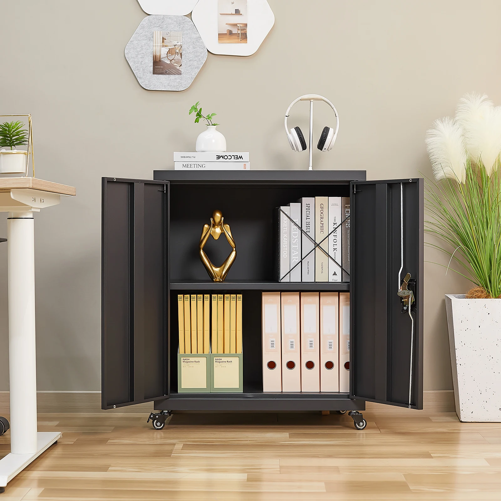Metal Storage Cabinet with Locking Doors Steel Storage Cabinet with Wheels Suit for Home Office 1 Adjustable Shelf for Files