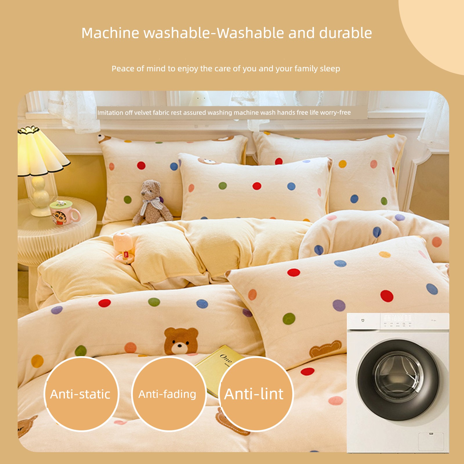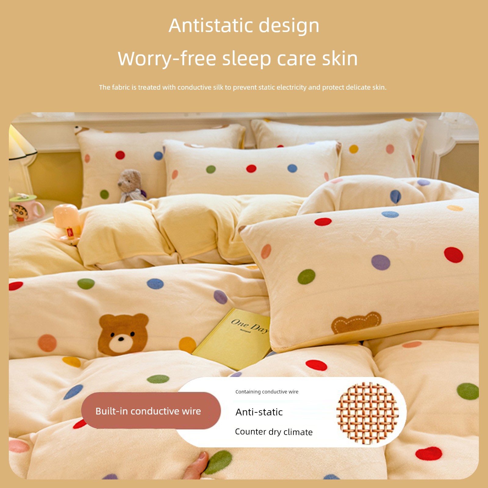 Milk Fiber Four-Piece Bedding Set 2025 New Arrival Winter Thick Coral Fleece Kids Single Fitted Sheet Duvet Cover Cover