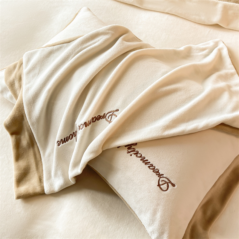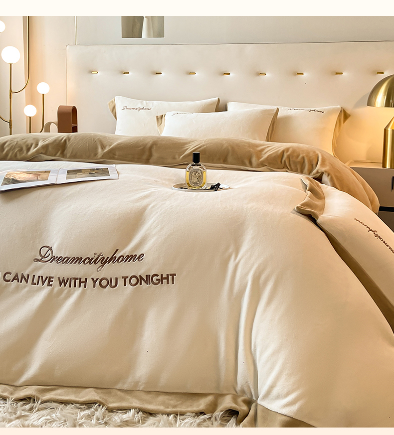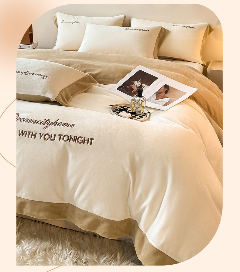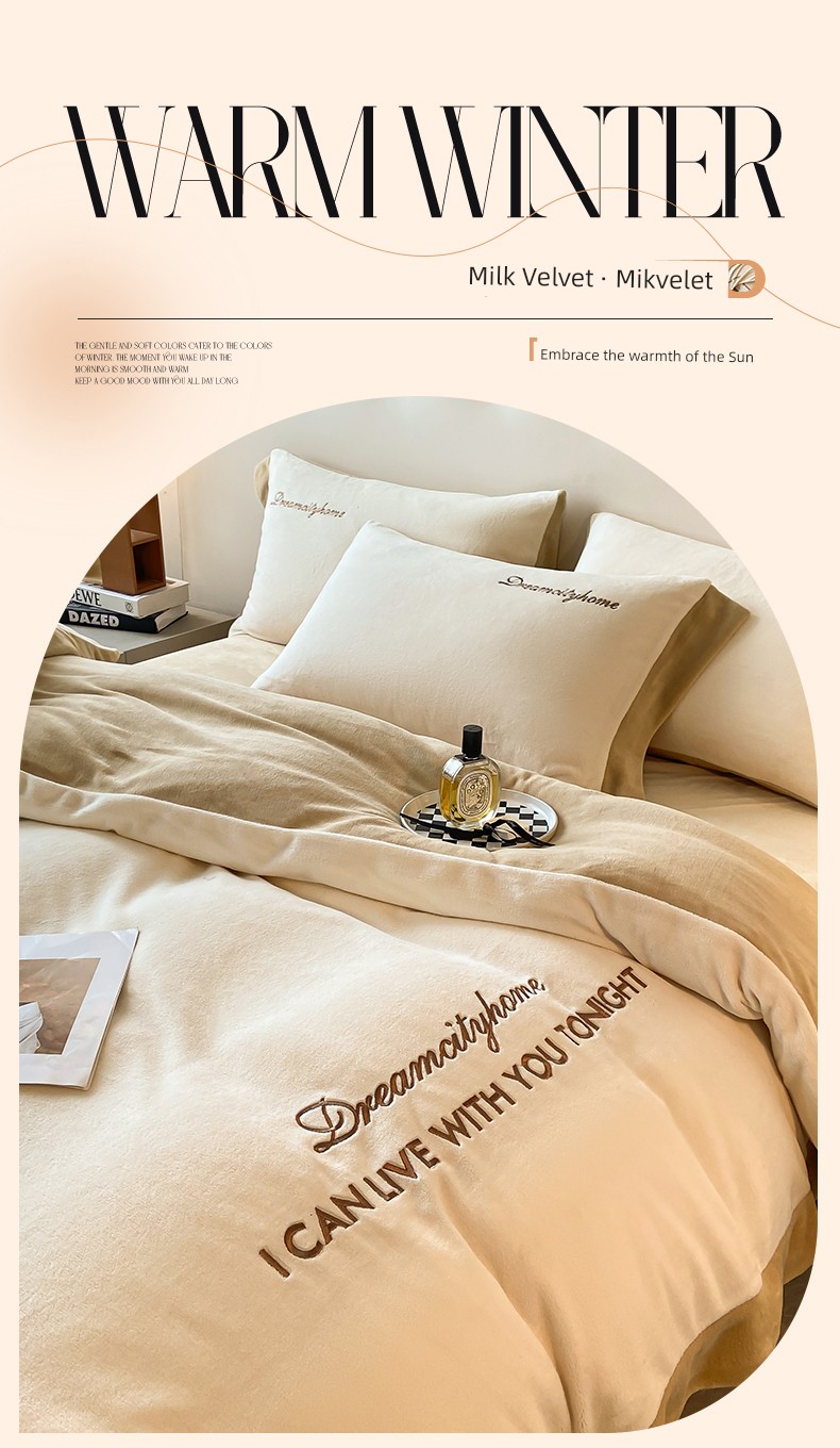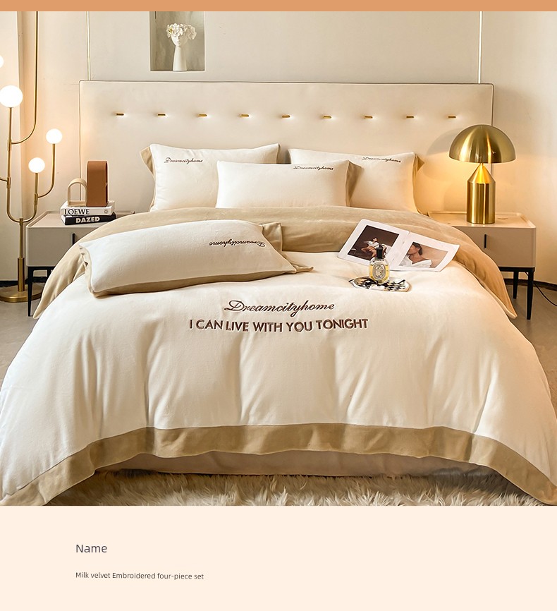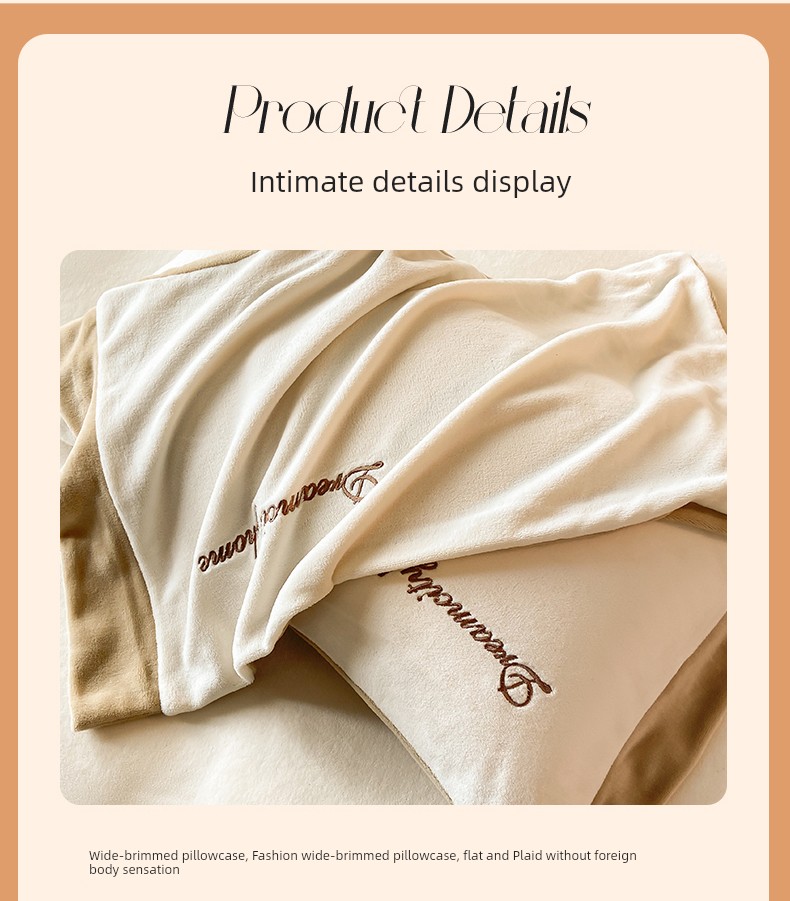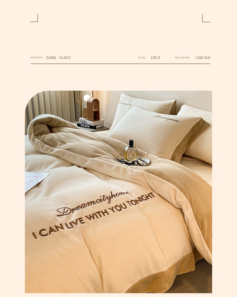 Milk Fiber Four-Piece Bedding Set Accessible Luxury Fancy 2025 New Arrival Coral Fleece Embroider Single Fitted Sheet Quilt Cover