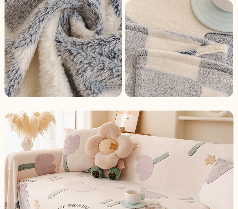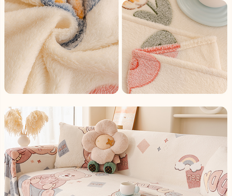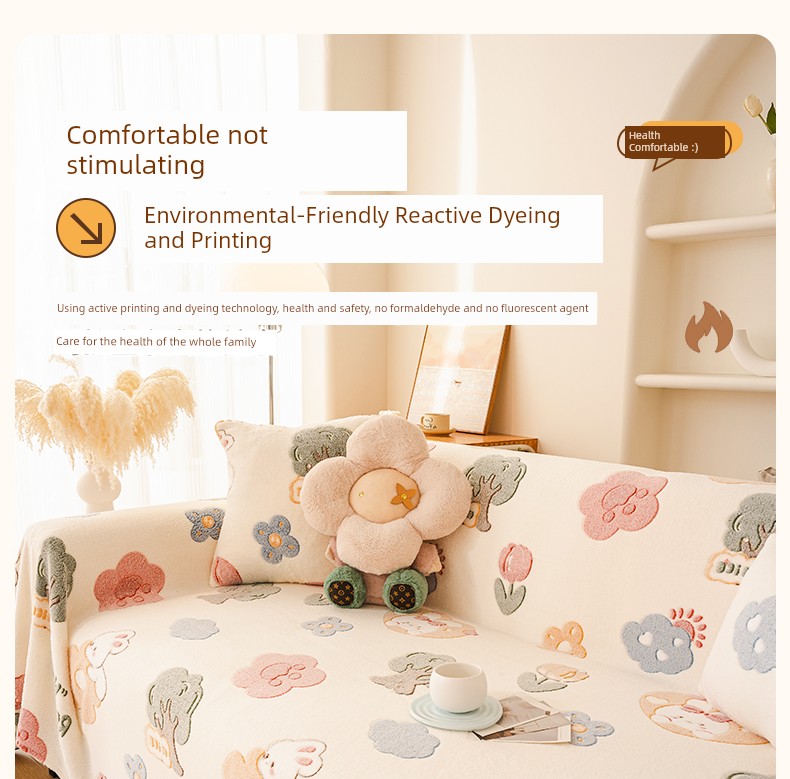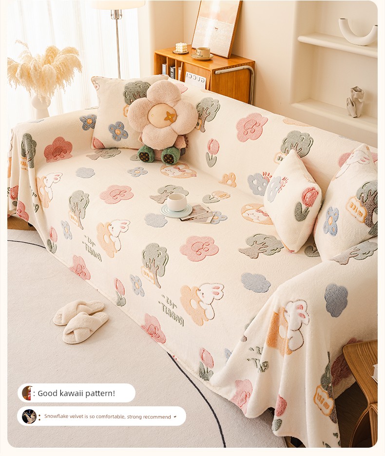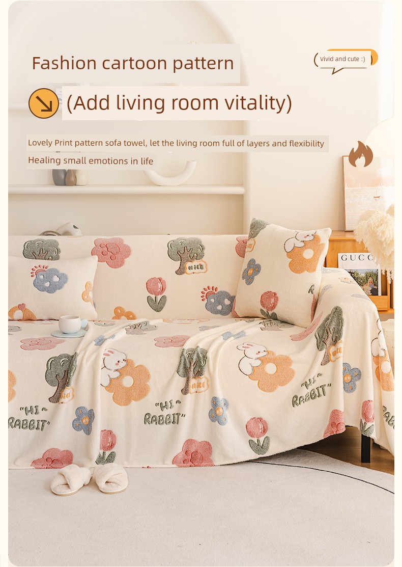 Milk Fiber Sofa Cover Cloth Winter Heattech Sofa Towel 2025 New Arrival Thickened Full Covered Dustproof Cartoon Sofa Cover