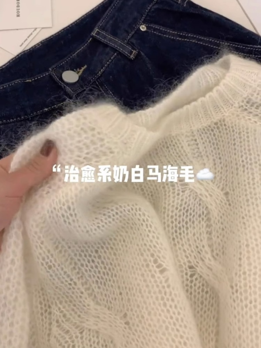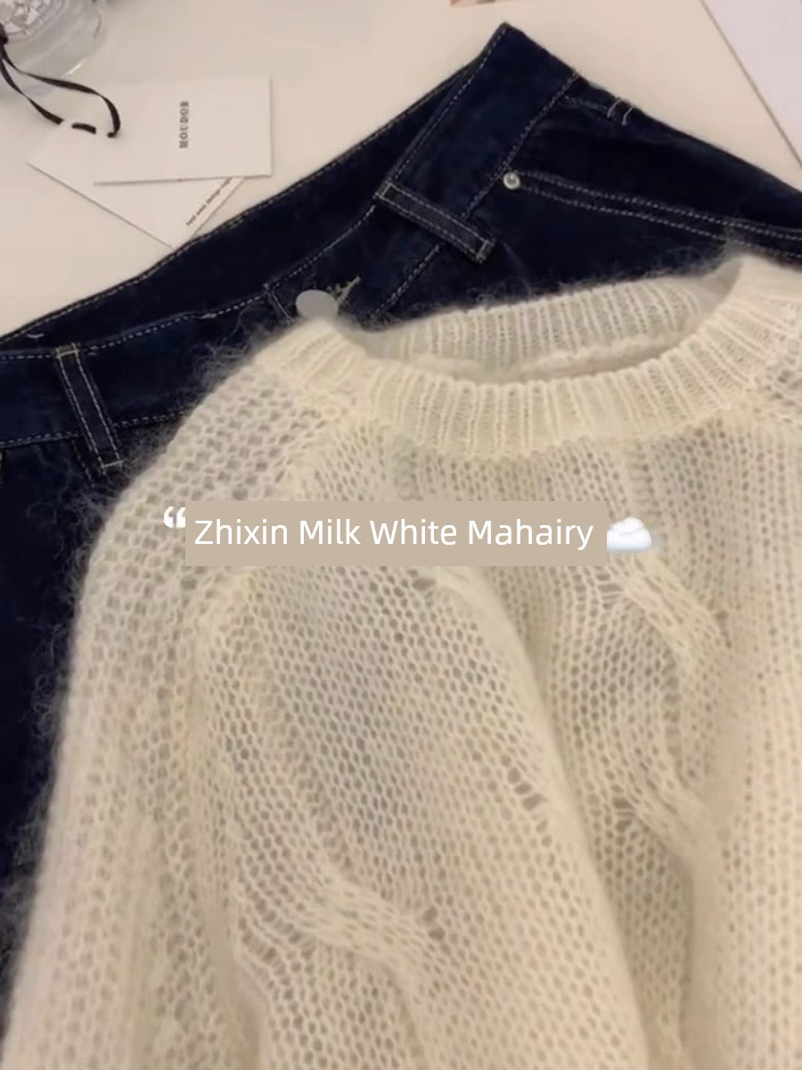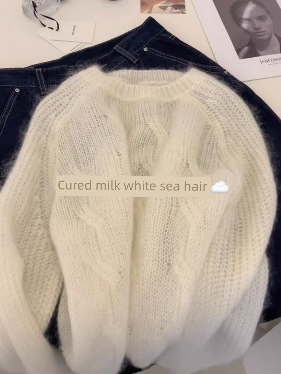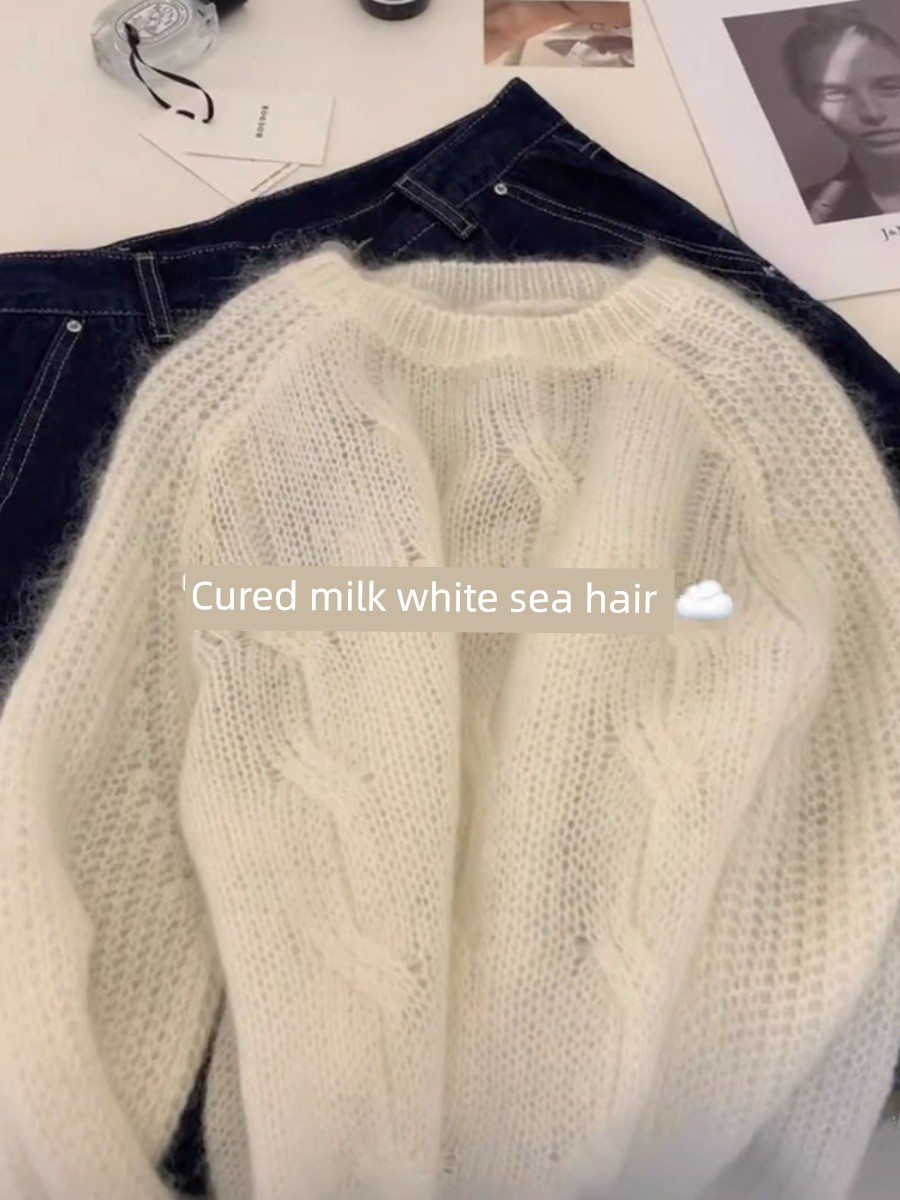 Milk Fufu White Sweater Women's 2025 New Arrival Spring and Autumn Mohair Idle Style Soft Glutinous Wool European Style Tops