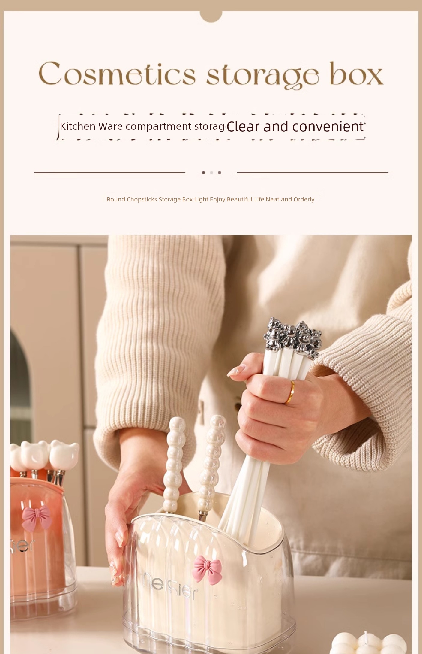 Minimalist Cream Style Chopsticks Cage Kitchen Dedicated Multifunctional Tableware Chopsticks Storage Box Double-Layer Draining Mildew-Proof Chopsticks Holder