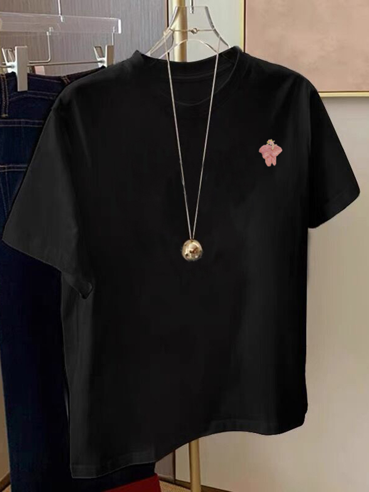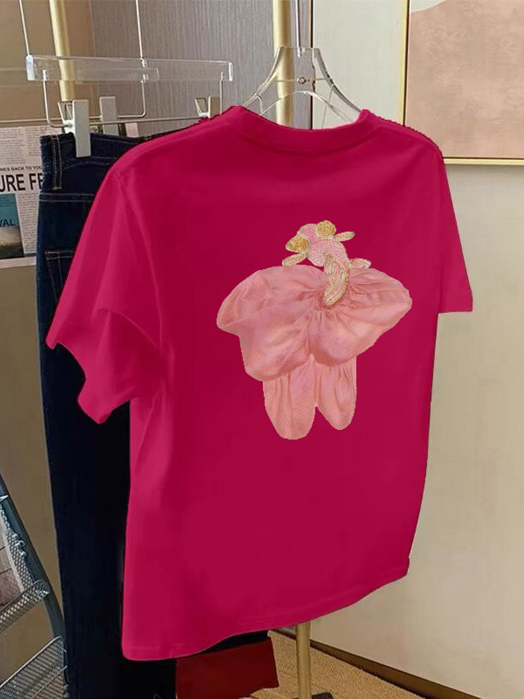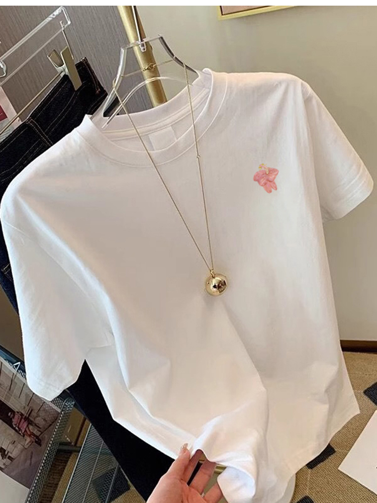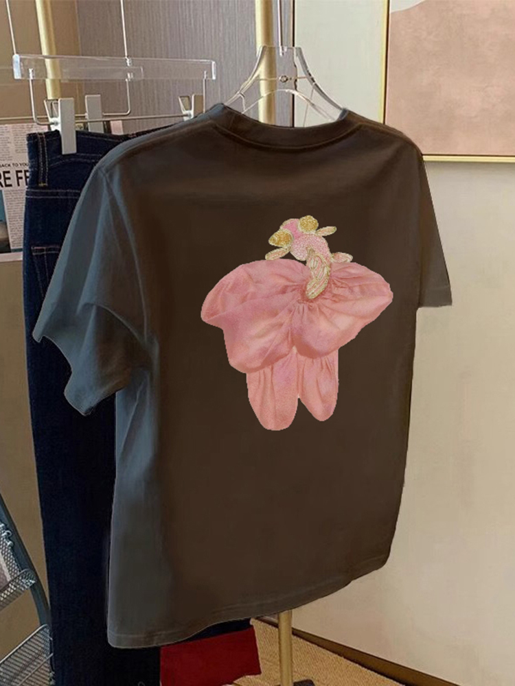 Minimalist Style Small Goldfish Print Pure Cotton Short Sleeve T-Shirt Women 2025 New Arrival Temperament Wild round Neck Loose Top Women