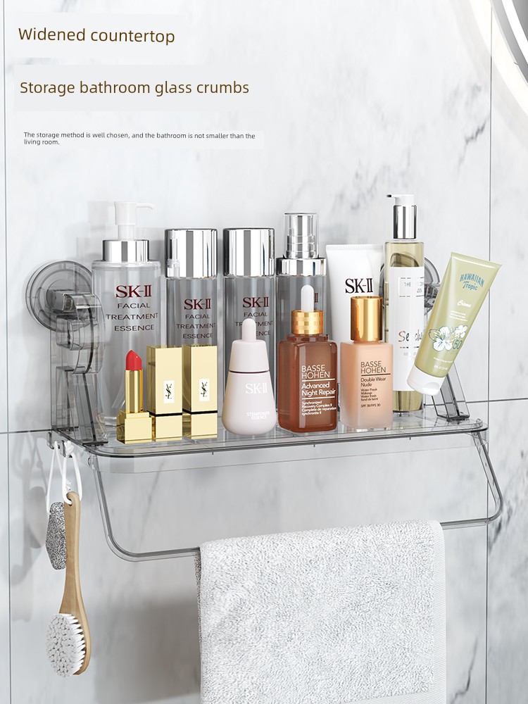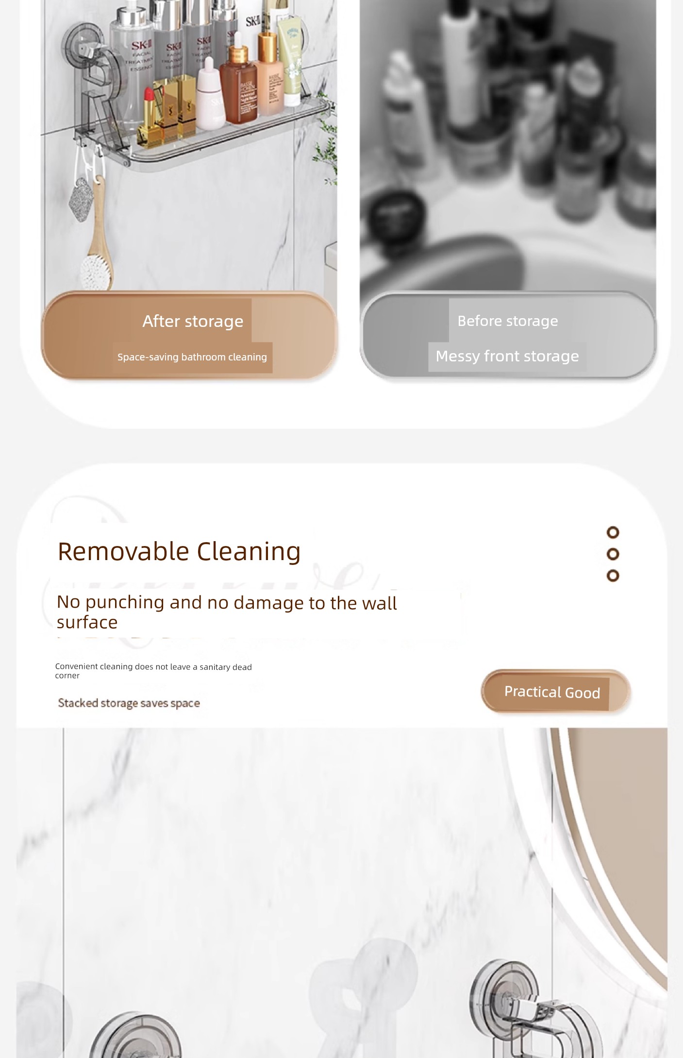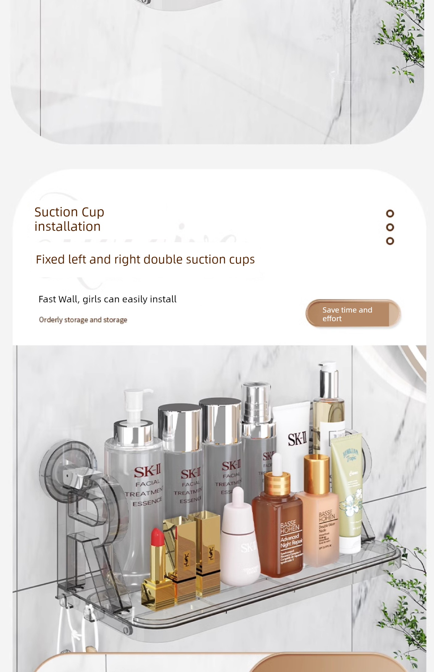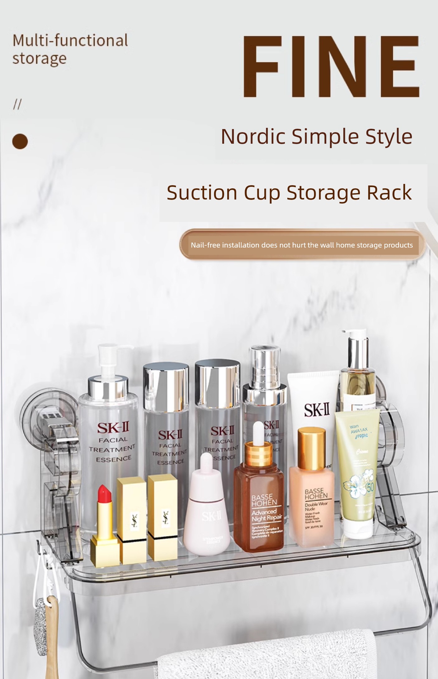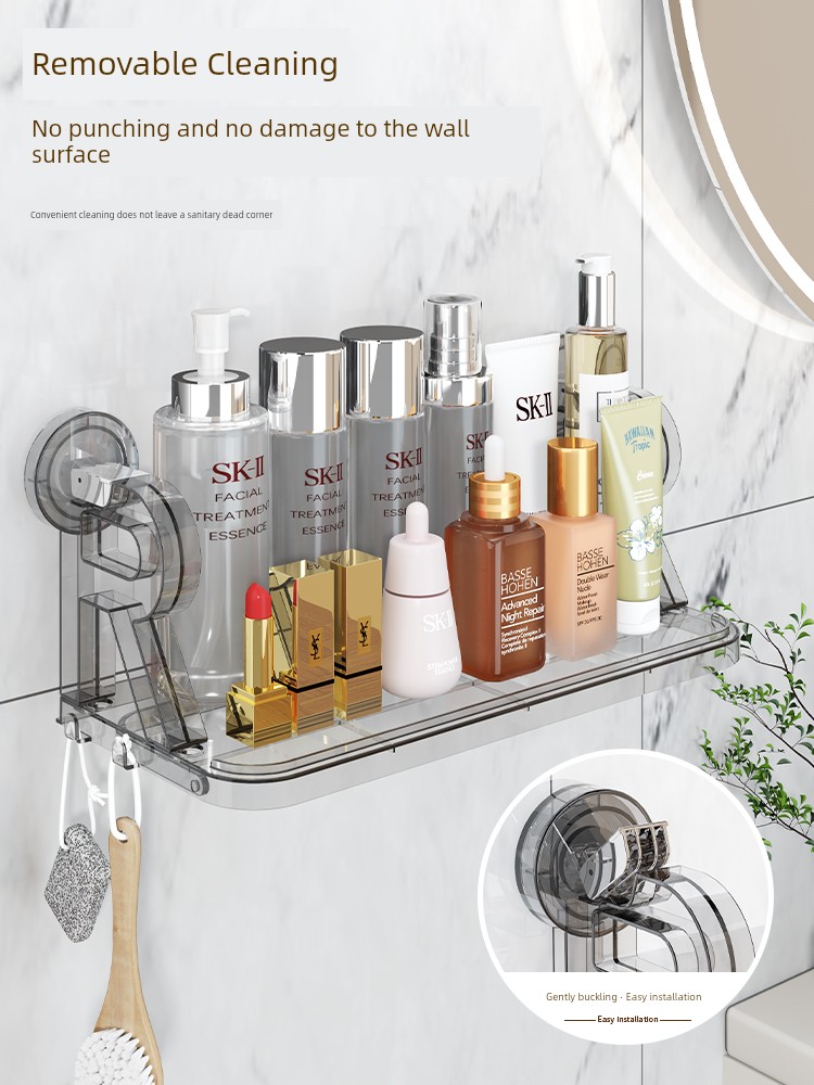 Minimalist Transparent Suction Cup Storage Rack Bathroom Punch-Free Wall Hanging Wall Storage Shelf Toilet Sink Handy Gadget