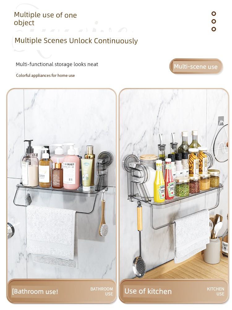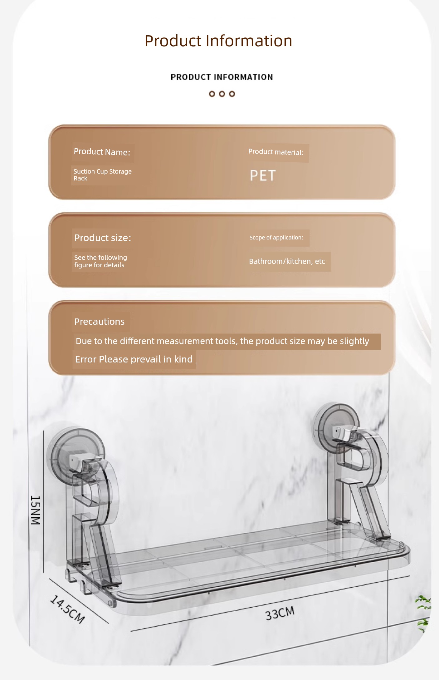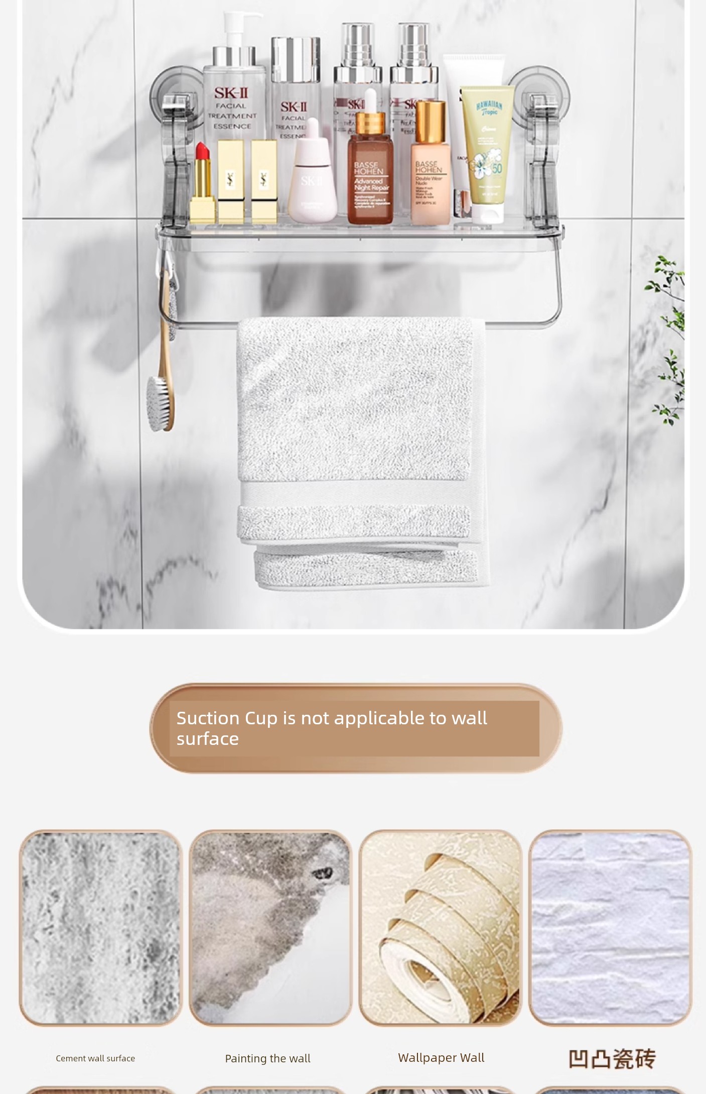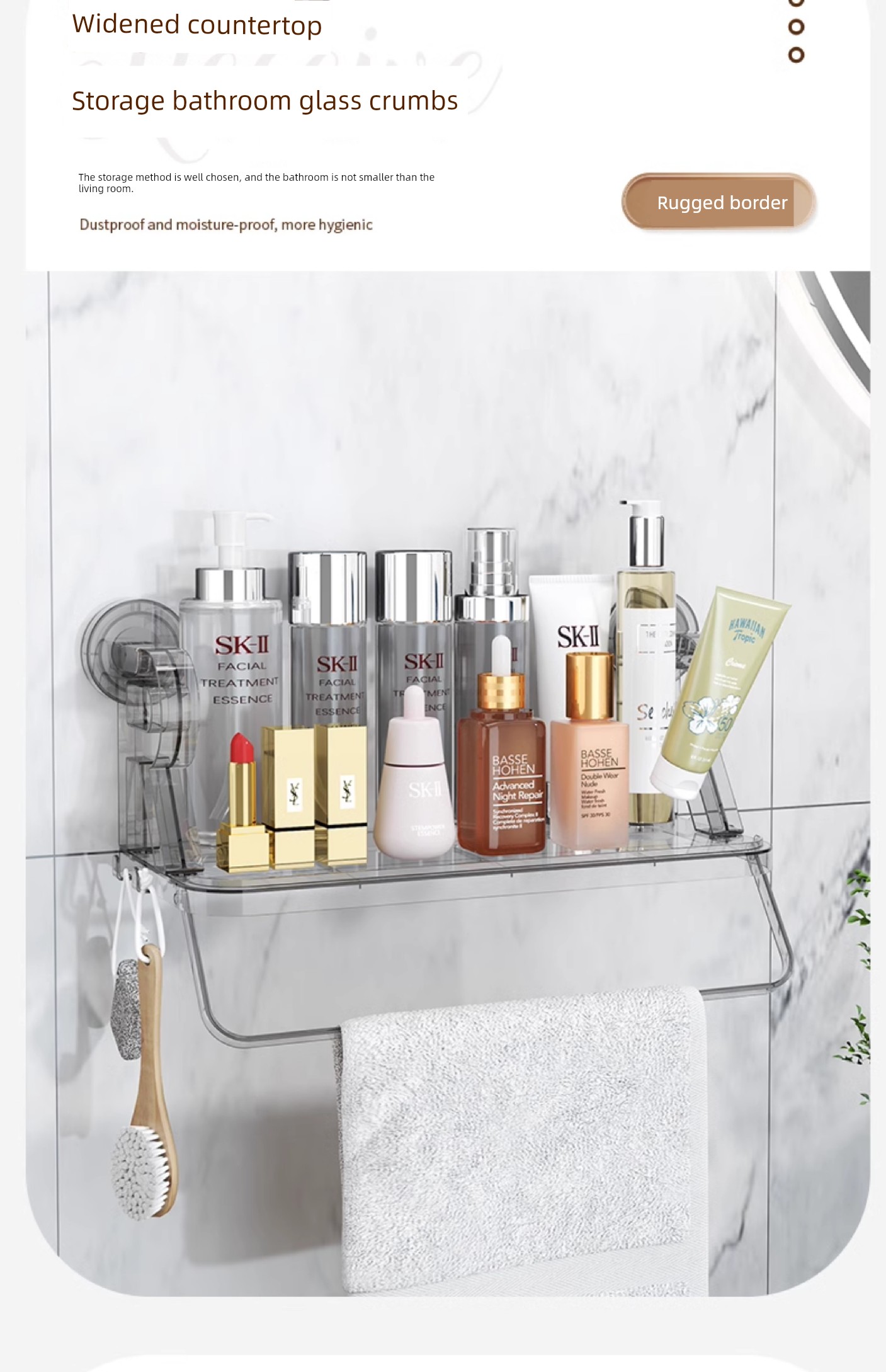Minimalist Transparent Suction Cup Storage Rack Bathroom Punch-Free Wall Hanging Wall Storage Shelf Toilet Sink Handy Gadget