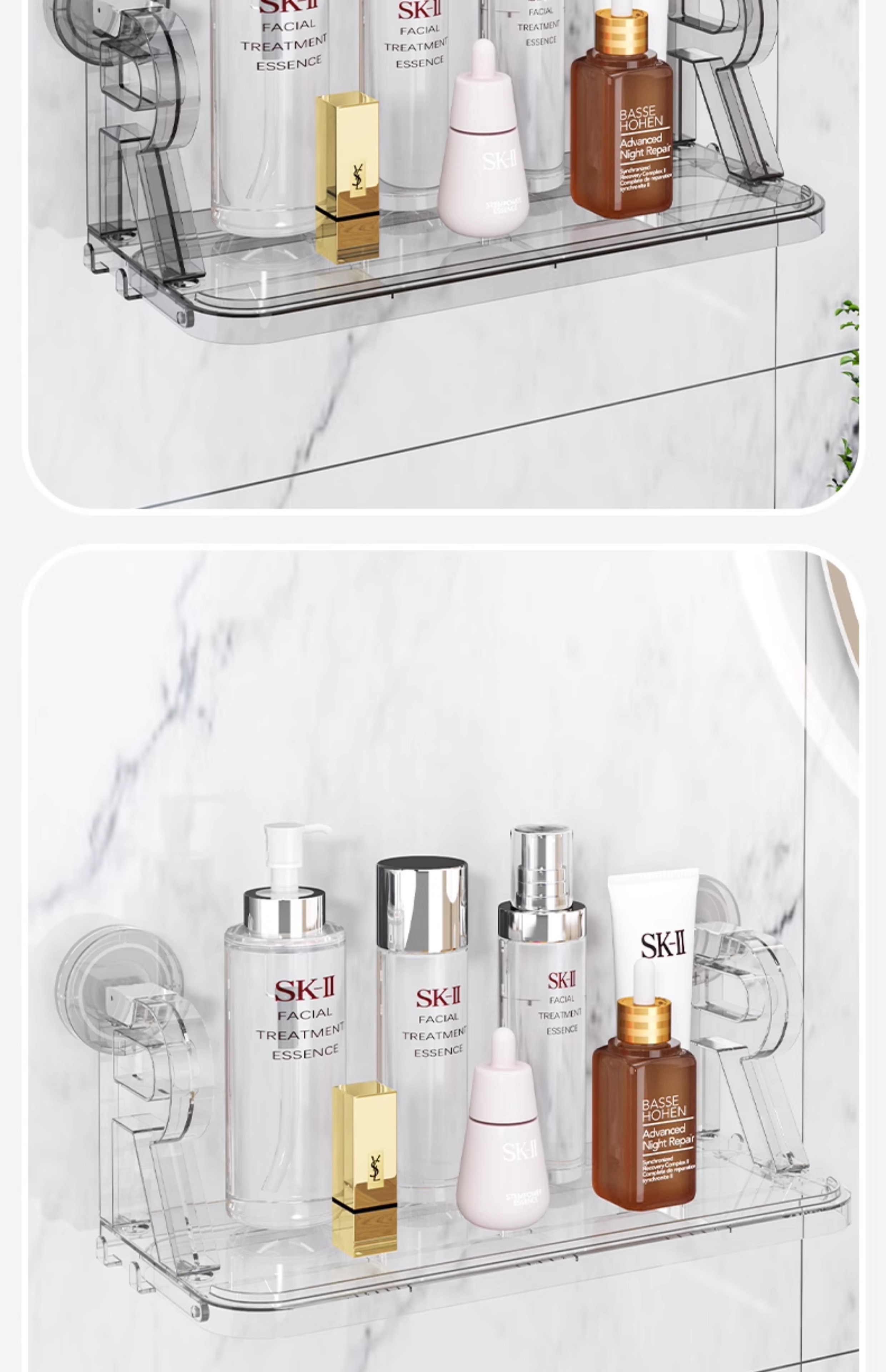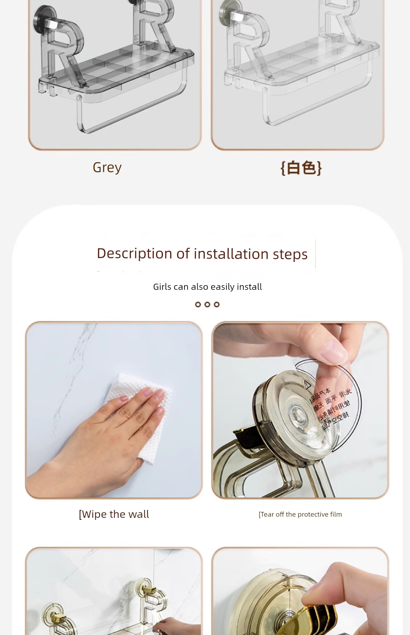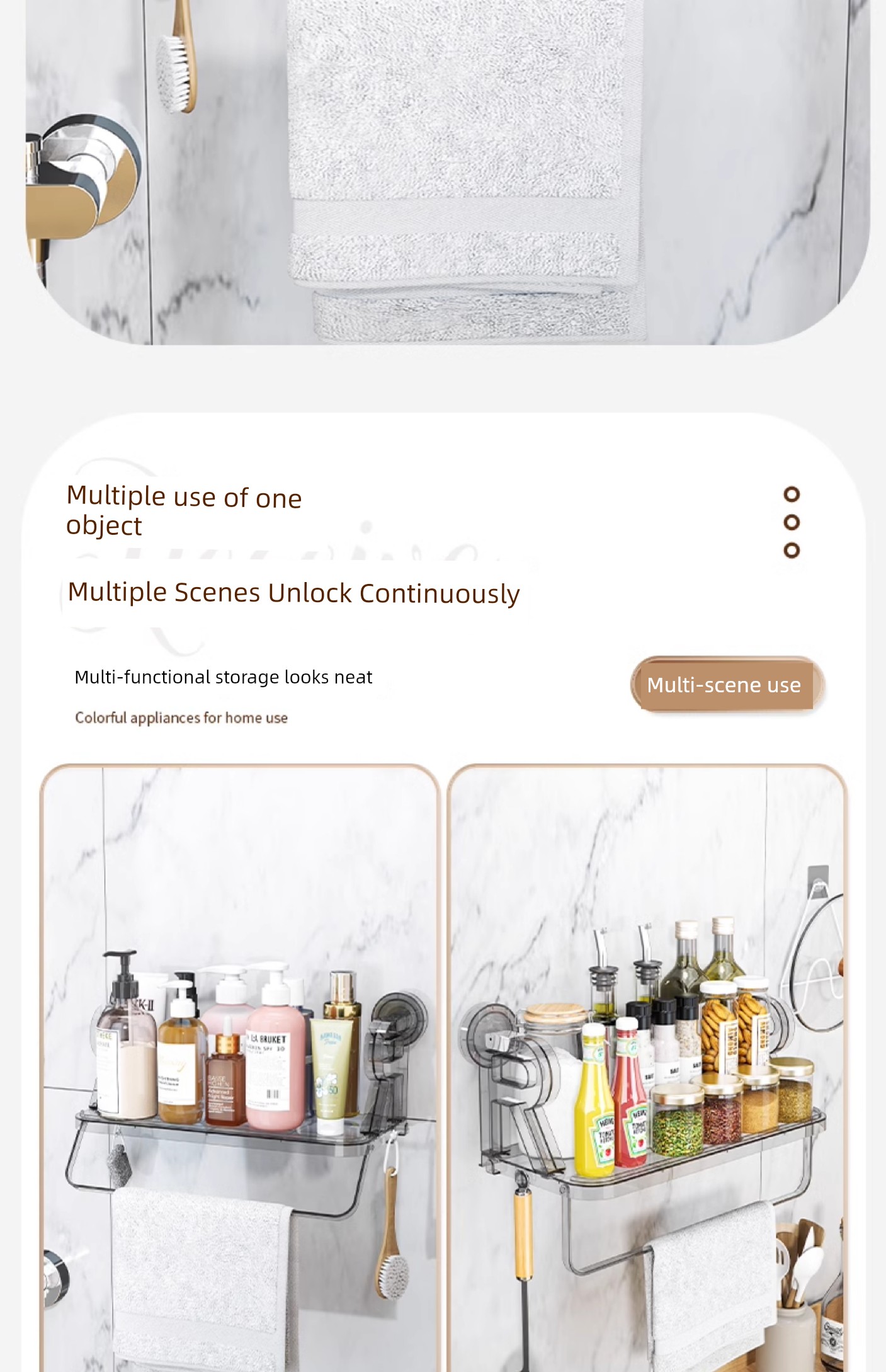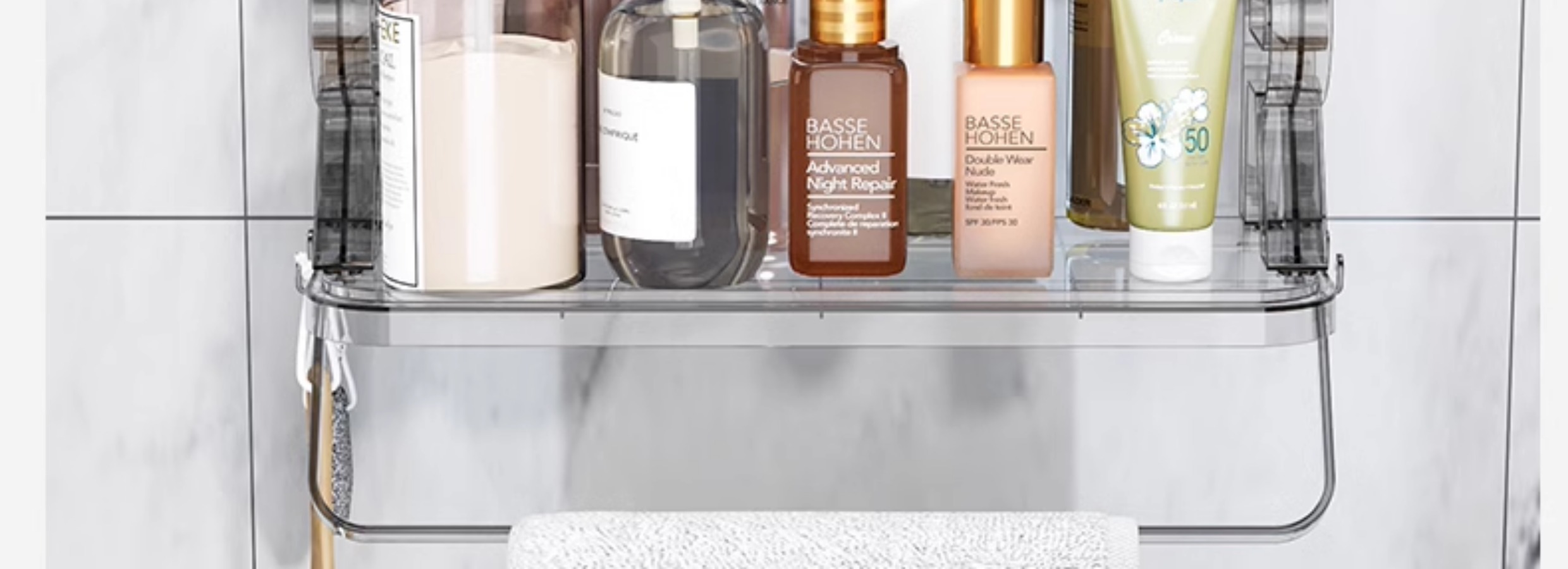 Minimalist Transparent Suction Cup Storage Rack Bathroom Punch-Free Wall Hanging Wall Storage Shelf Toilet Sink Handy Gadget