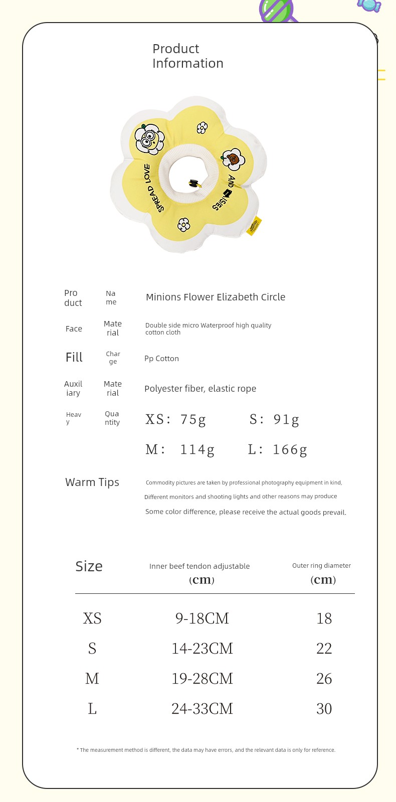 Minions Pet Elizabeth Ring Cat Dog Headgear Sterilization after Elizabeth Collar Anti-Licking Soft Ring