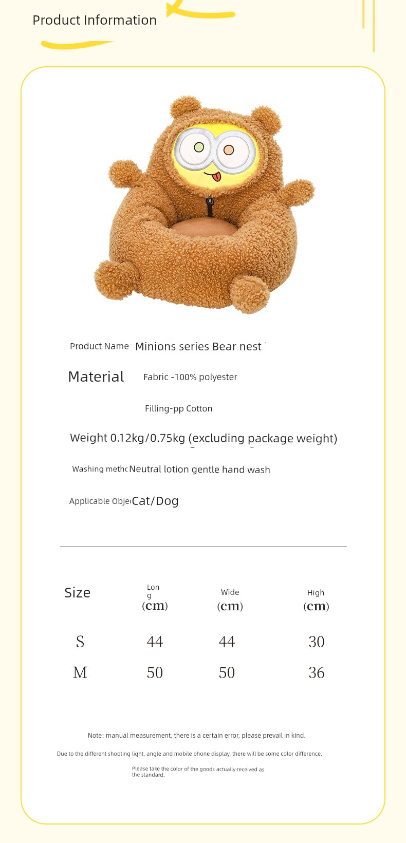 Minions Series Bear Nest Pomeranian Teddy Small Size Dogs Puppy Dog Autumn and Winter Sleep Nest Pet Heattech Nest