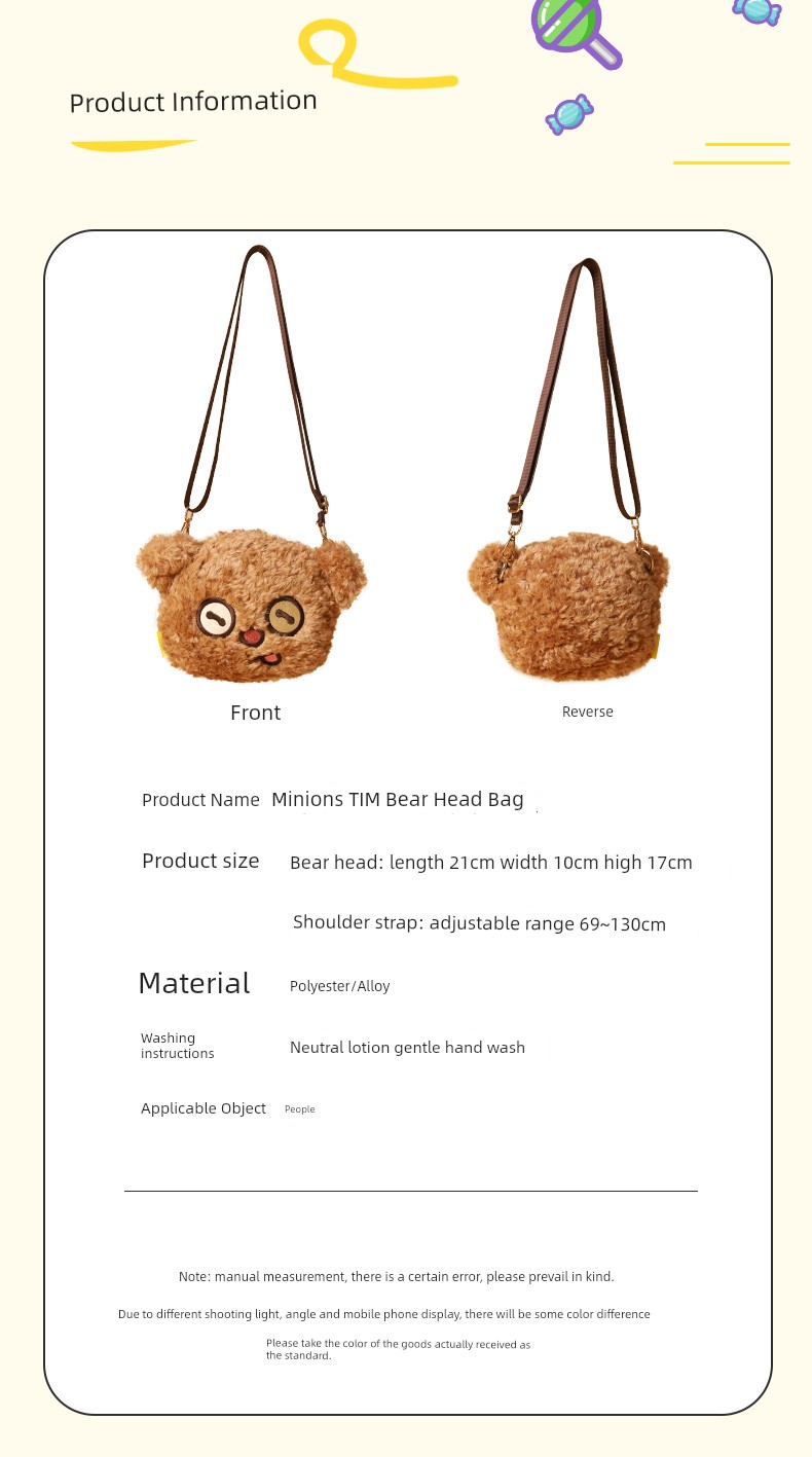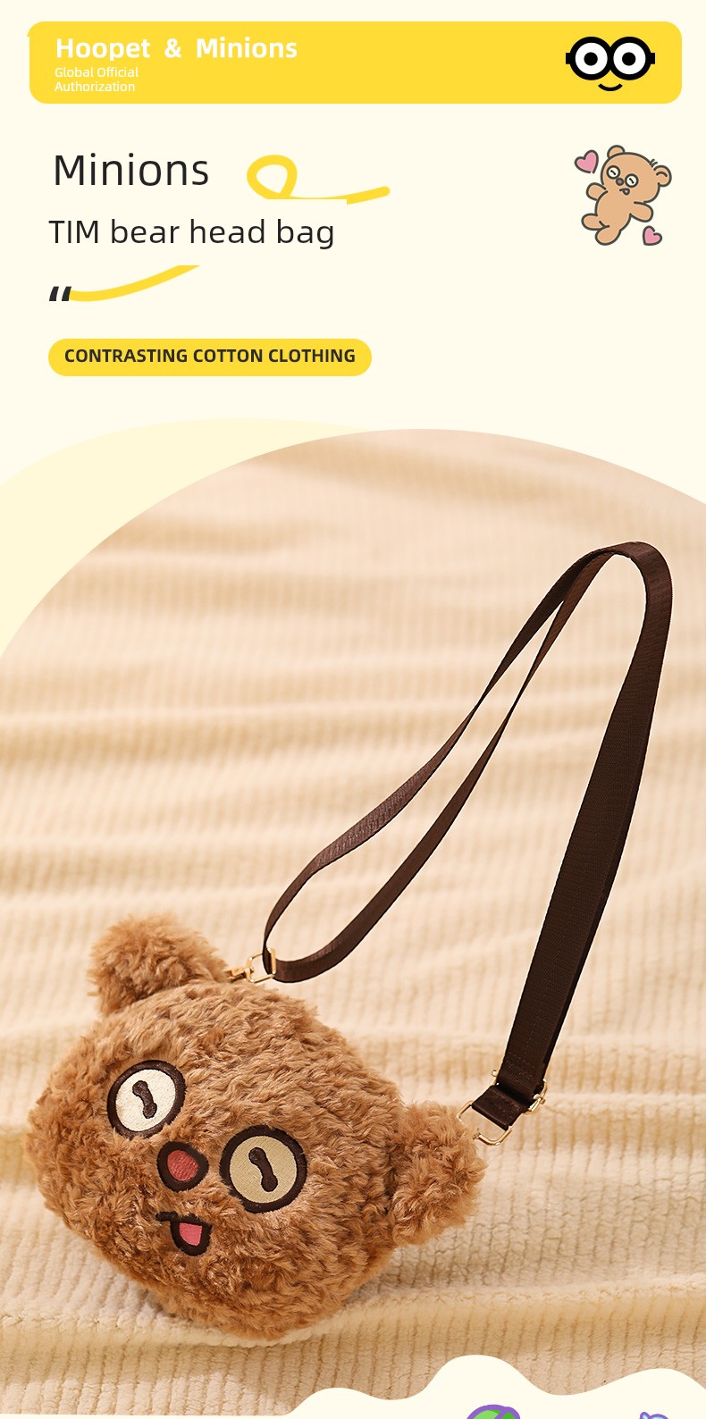 Minions Tim Bear Head Bag Muppet Golden Gradually Layer Kitten Puppy Outfitting Snack Food Lovely Bag Supplies