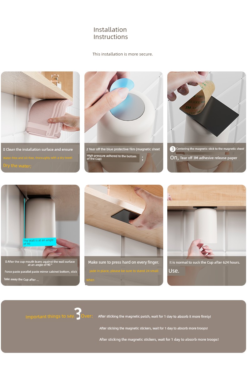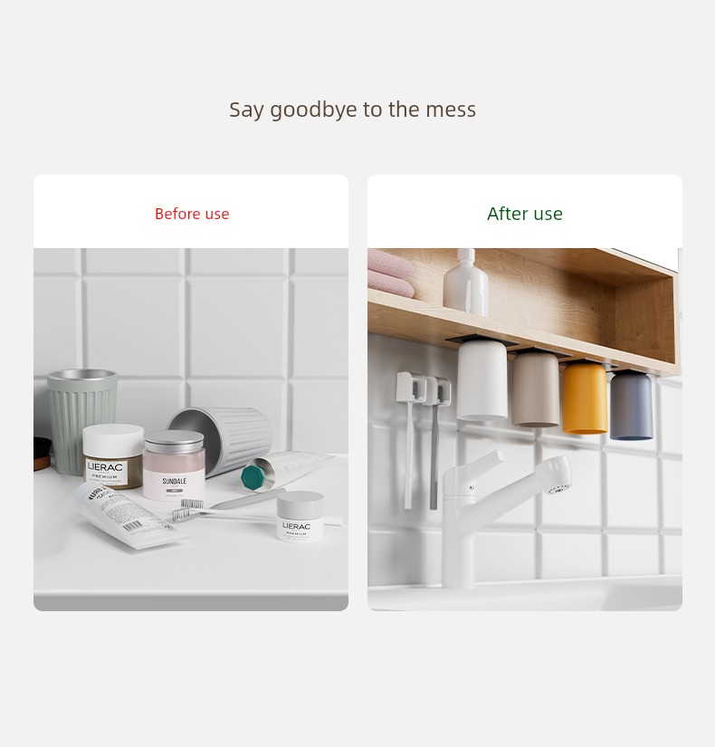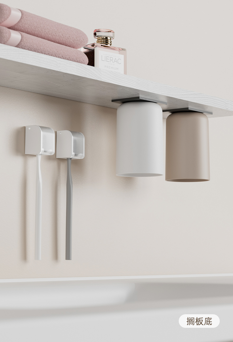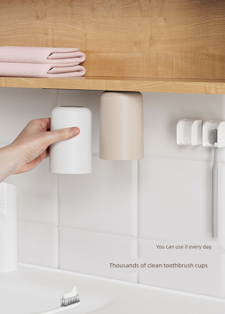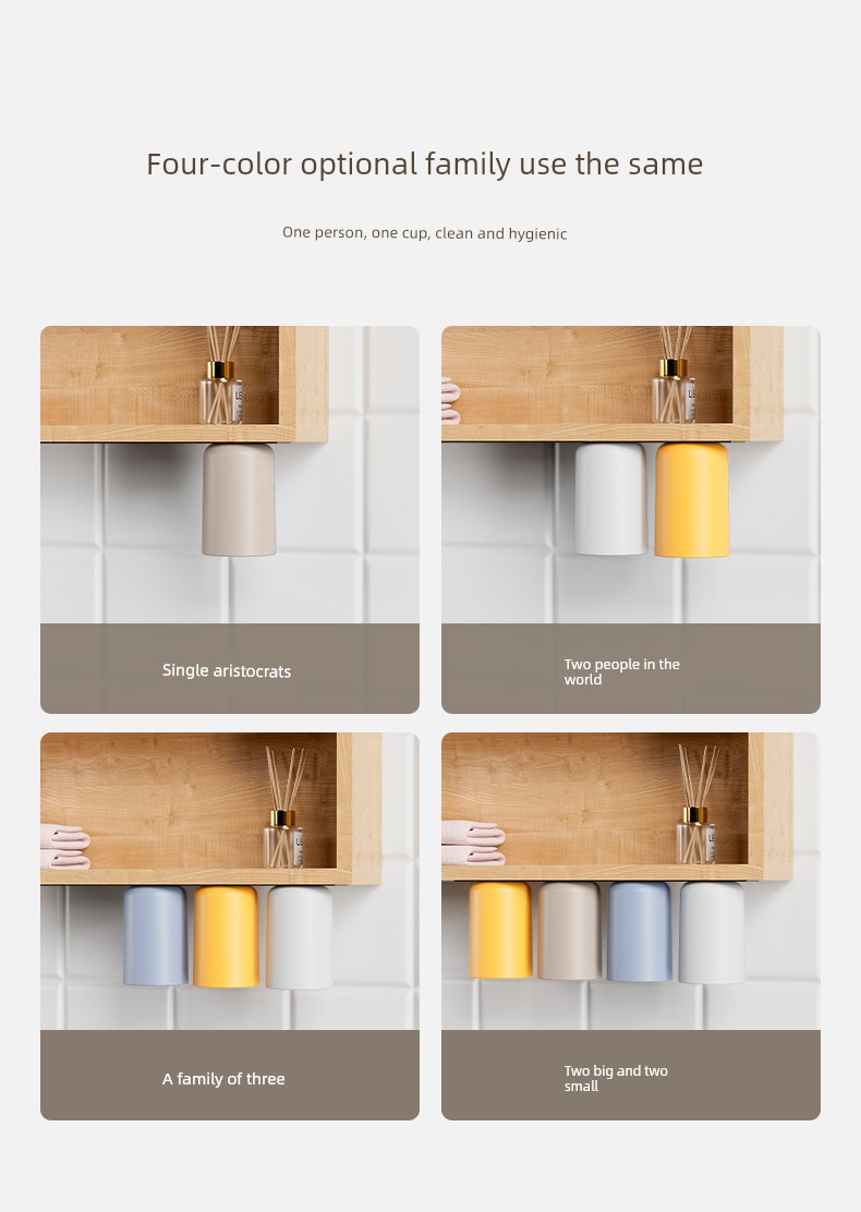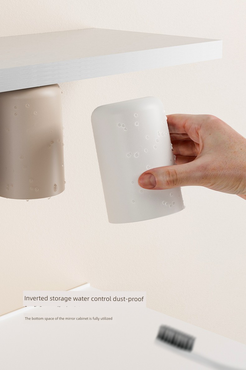 Mirror Cabinet Bottom Magnetic Toothbrush Holder Parent-Child Mouthwash Cup a Three-Mouth Toothbrush Cup Storage Rack Wall Hanging Reverse Buckle Magnetic