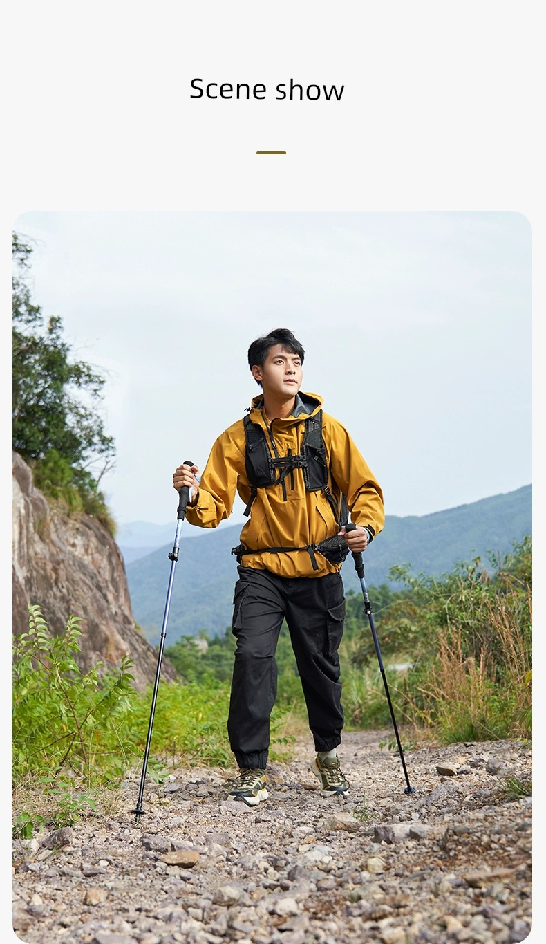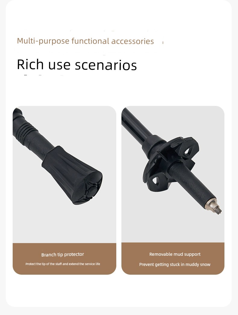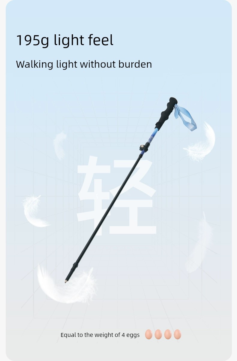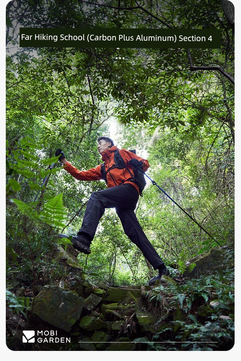 Mobi Garden Alpenstock Ultra-Light Carbon Fiber Telescopic Cane Outdoor Hiking Mountain Climbing Four-Section Lightweight Aluminum Alloy Outer Lock