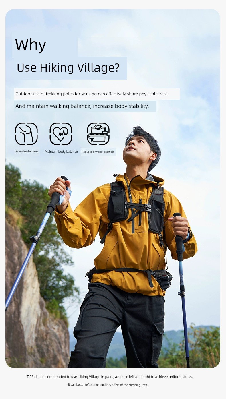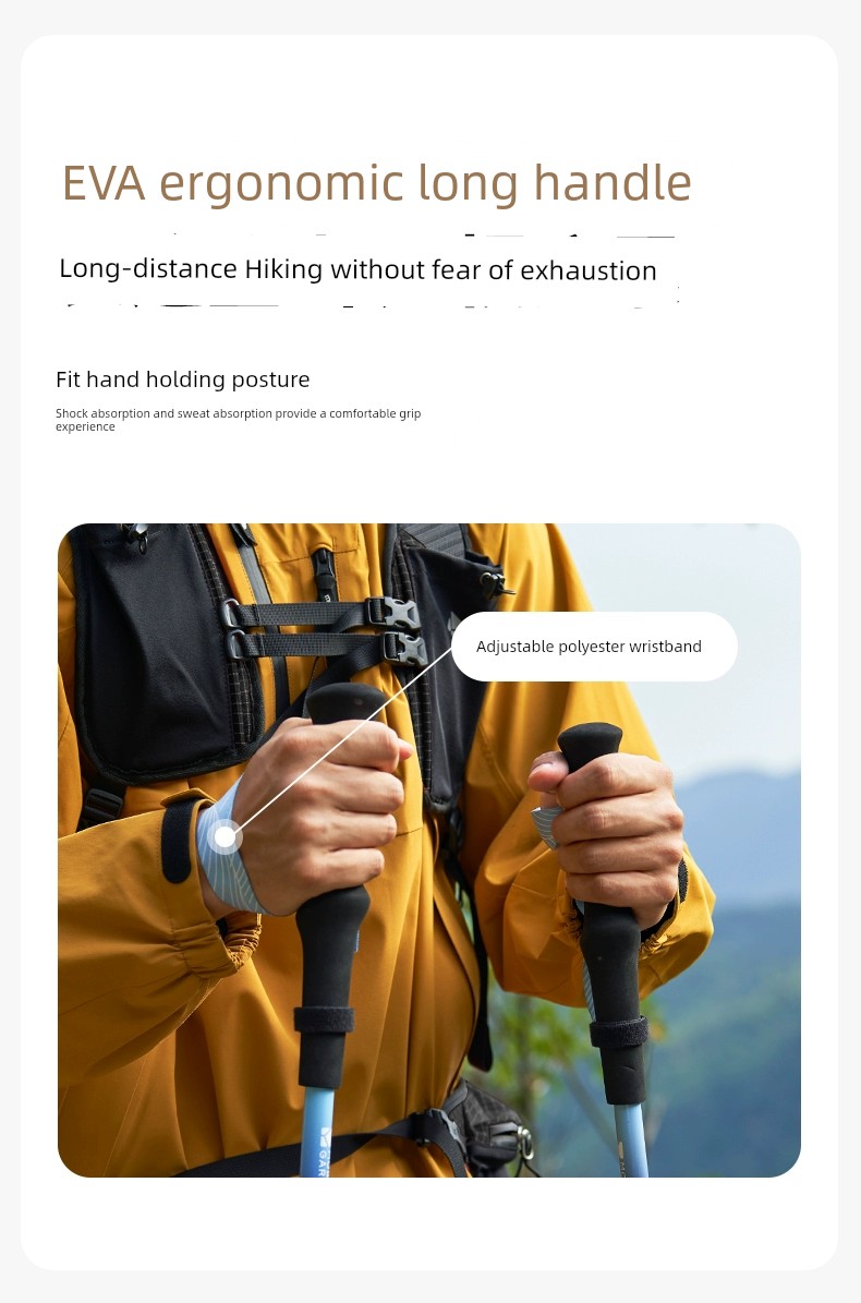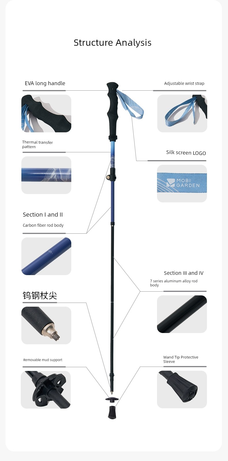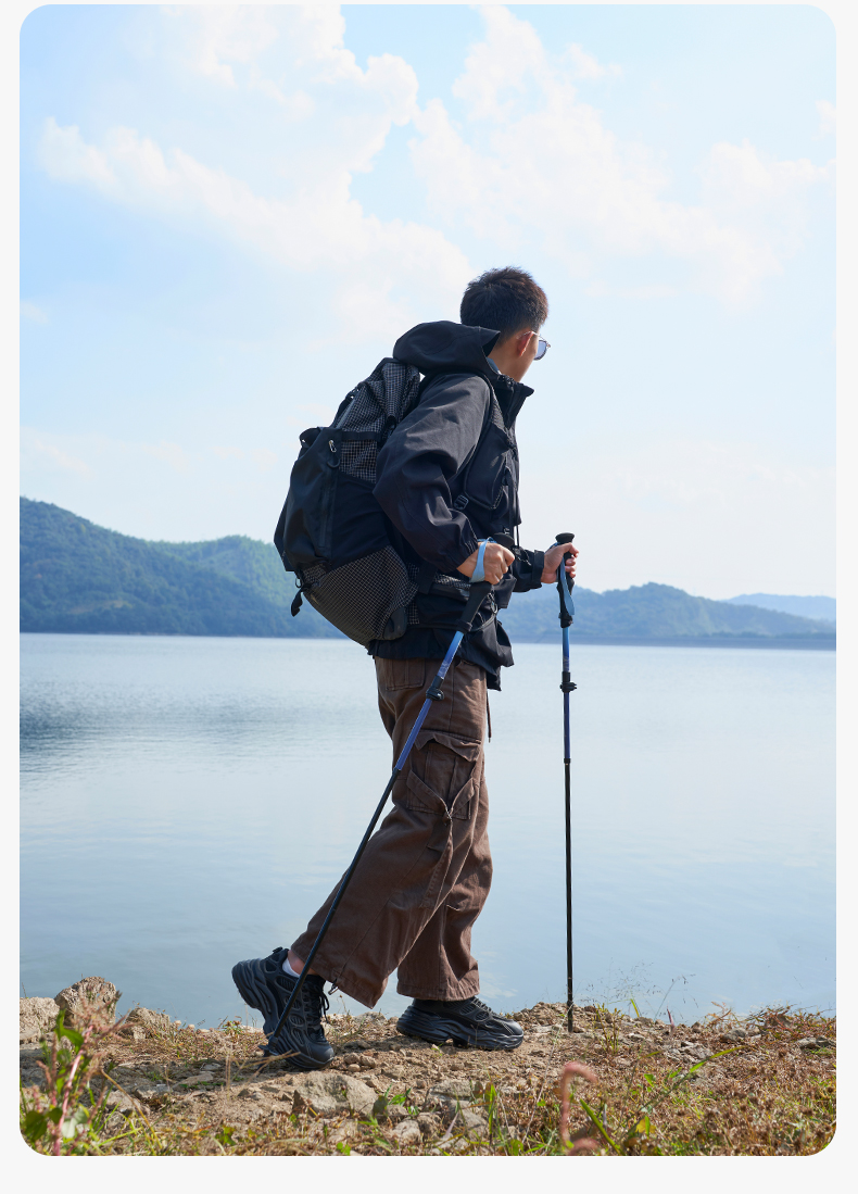 Mobi Garden Alpenstock Ultra-Light Carbon Fiber Telescopic Cane Outdoor Hiking Mountain Climbing Four-Section Lightweight Aluminum Alloy Outer Lock