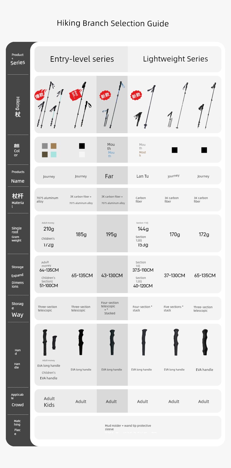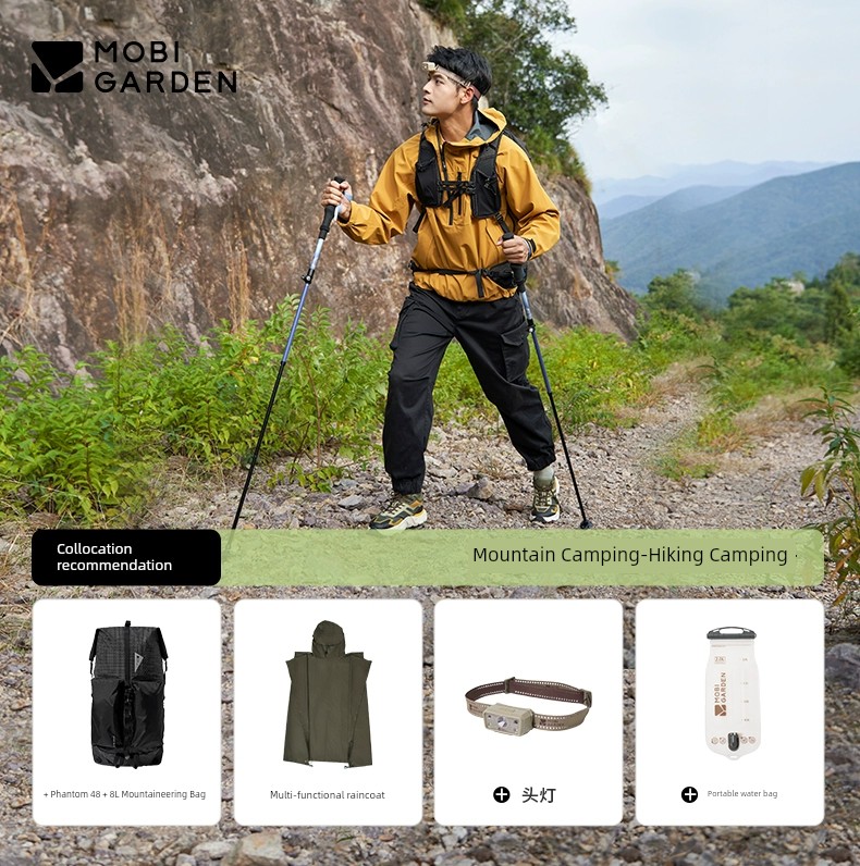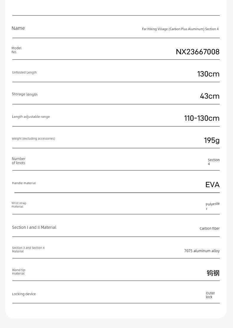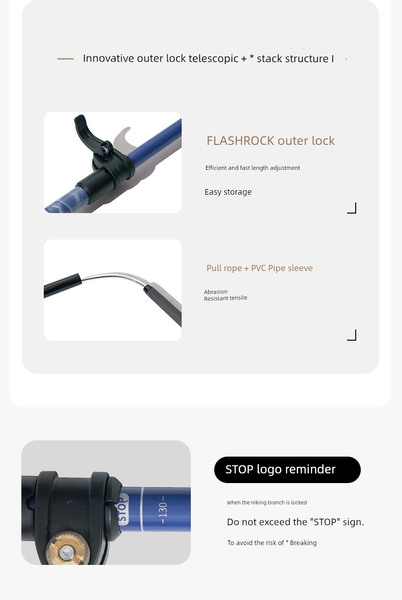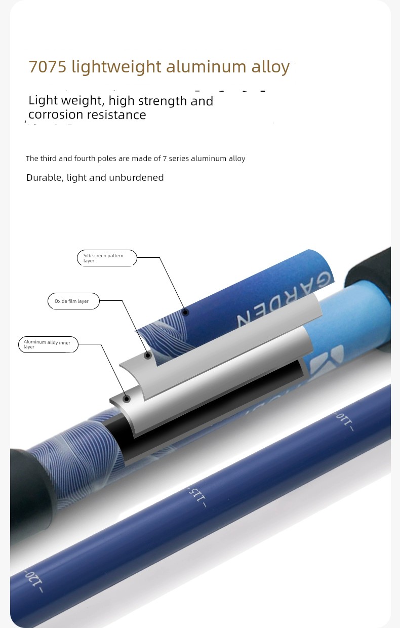Mobi Garden Alpenstock Ultra-Light Carbon Fiber Telescopic Cane Outdoor Hiking Mountain Climbing Four-Section Lightweight Aluminum Alloy Outer Lock
